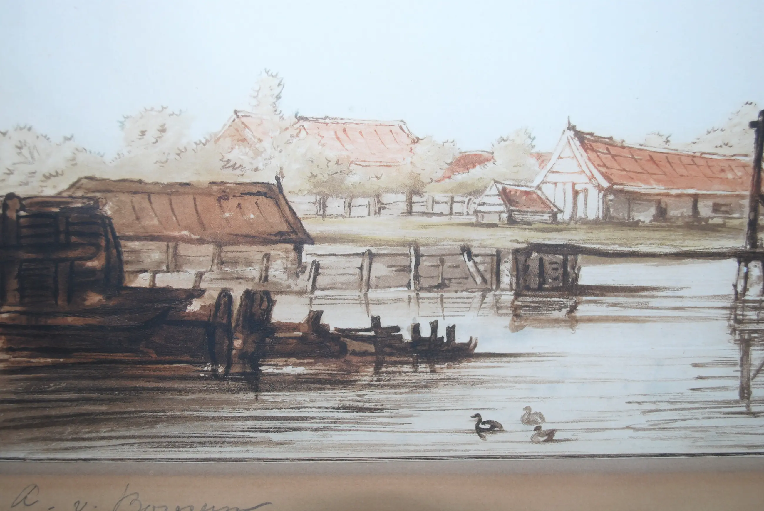 ingelijst. De lijst is in gebruikte maar behoorlijke staat, 39x47 cm.