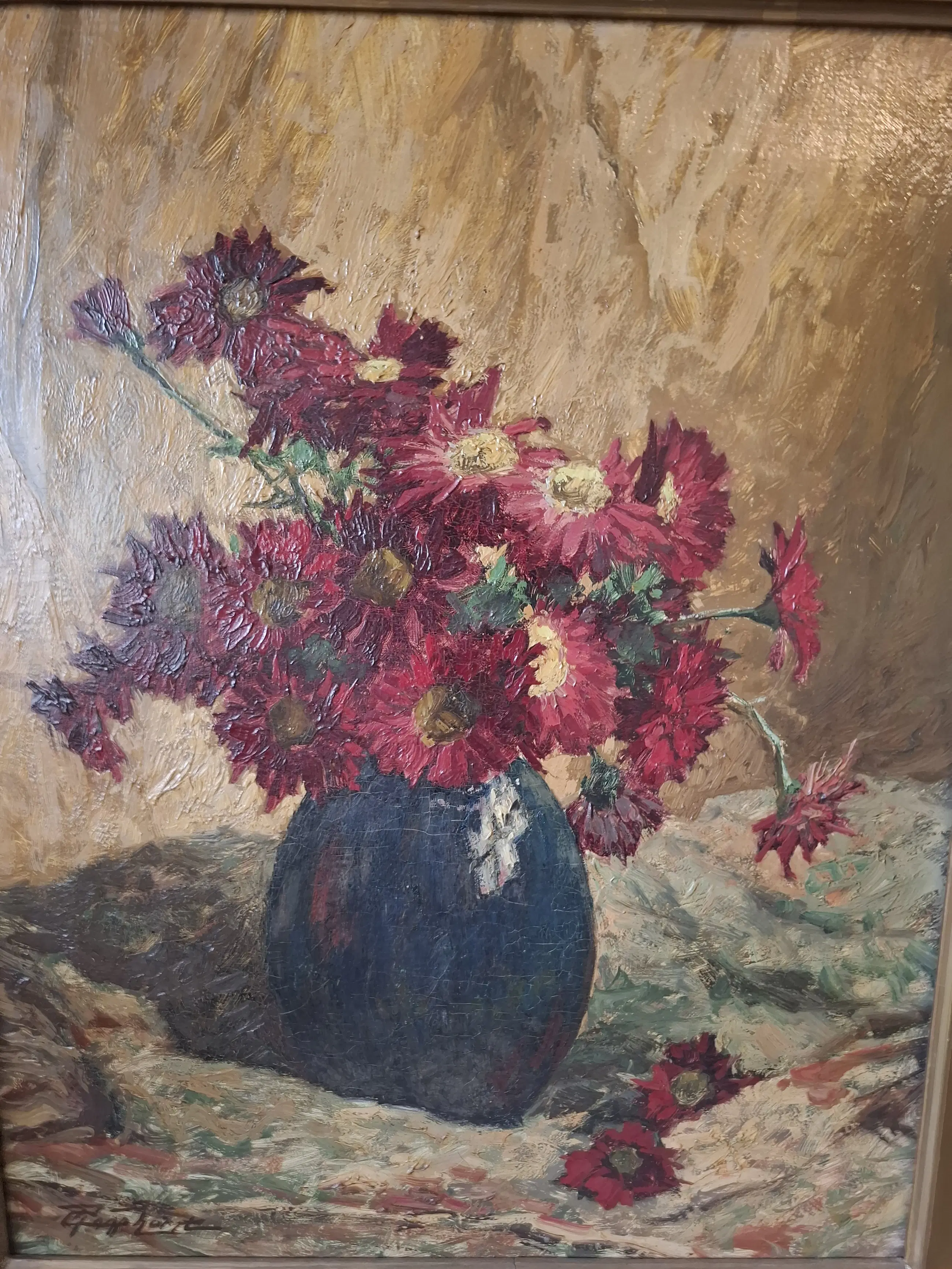 Doek bevindt zich in onberispelijke staat. Lijst heeft lichtte beschadigingen. Zie aanvullende foto's