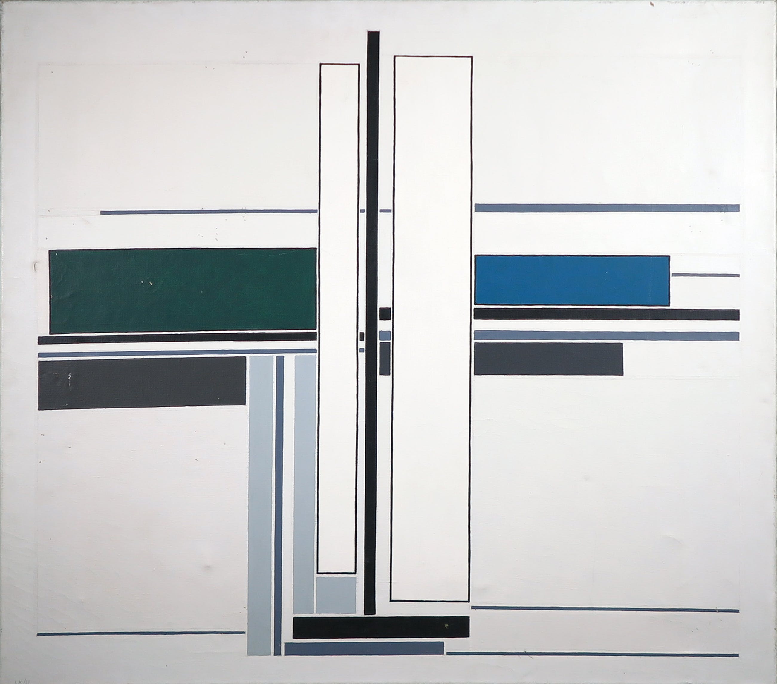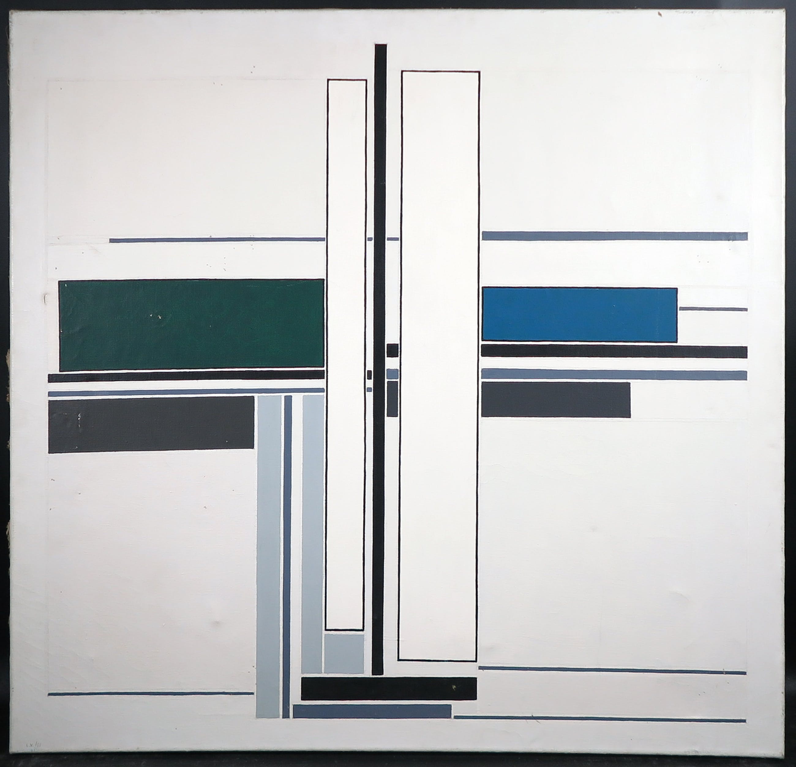 | Een aantal kleine gaatjes in het canvas, daarnaast zitten er een aantal drukplekken en krassen op de verf en het doek. | |