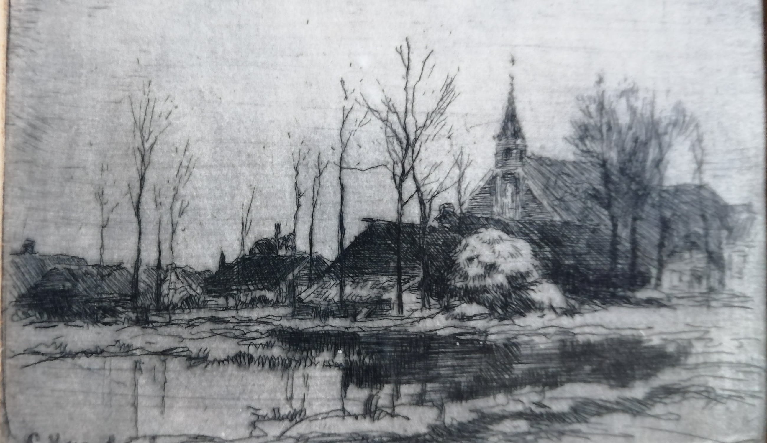 Zeer zeldzame ets van de bekende Gooise kunstenaar Cornelis Vreedenburgh.