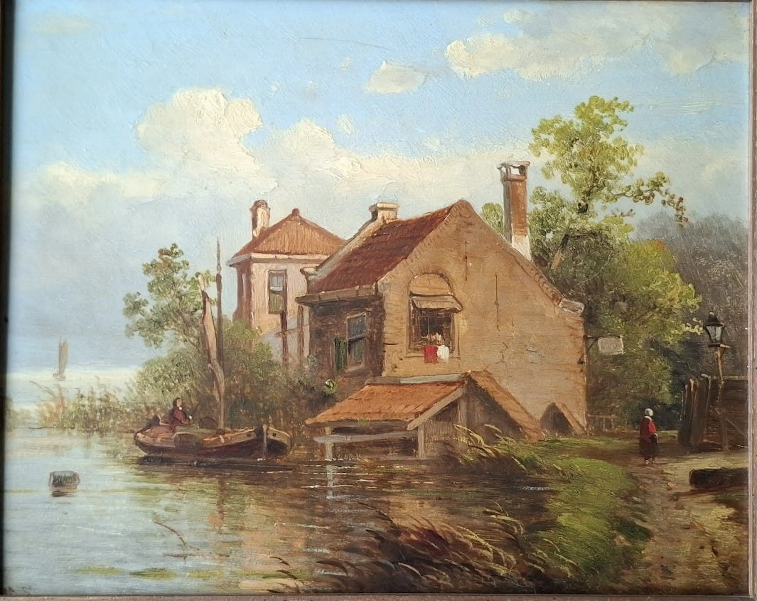 Hollands rivierlandschap op realistische wijze verbeeld door Cornelis Westerbeek (sr). Zijn werk wordt gerekend tot de Haagse School. Het schilderij is linksonder gemonogrammeerd.