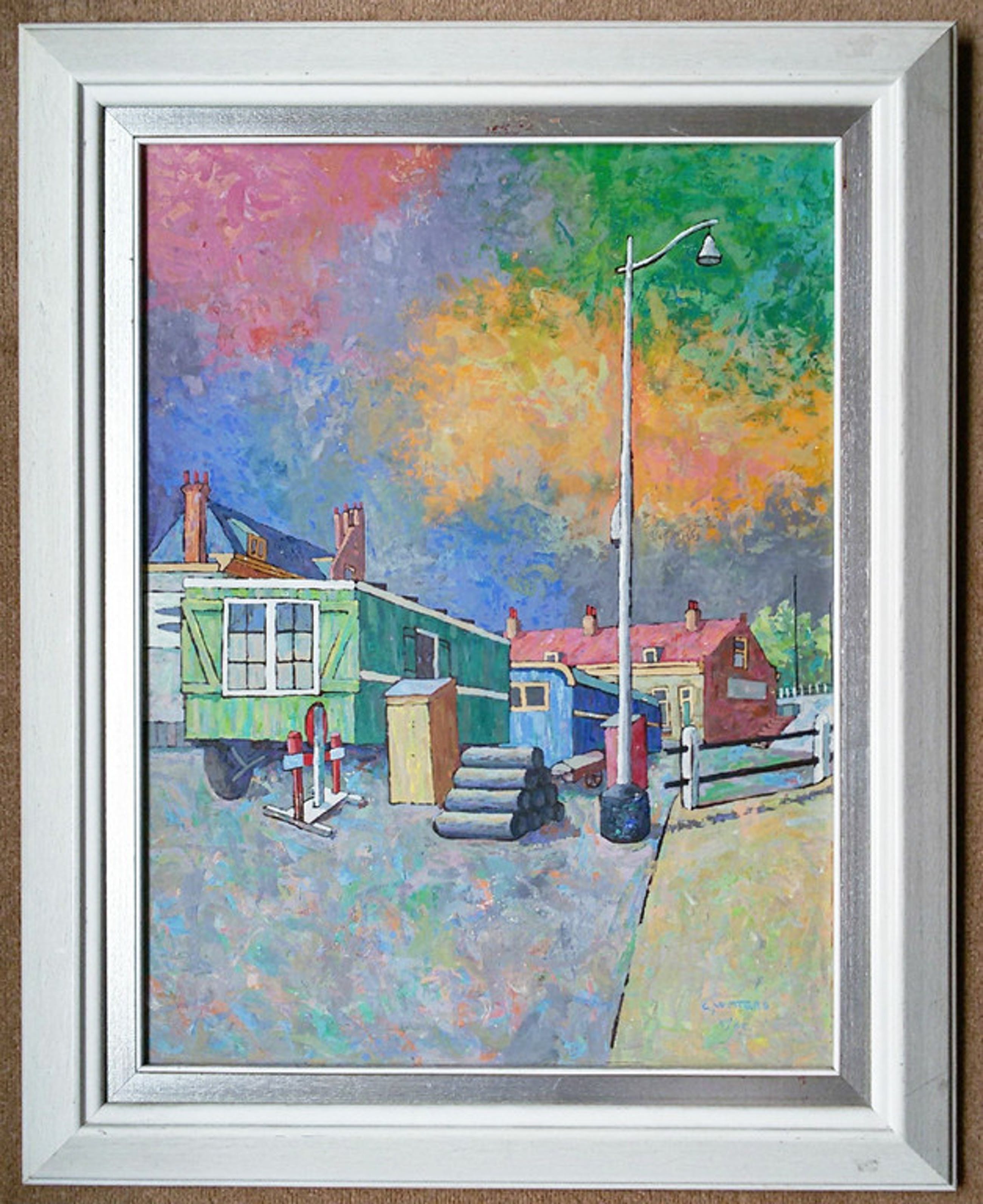 Prachtig, impressionistisch werk van Cornelis Witters. Bij het weergeven van deze werkzaamheden in een, vermoedelijk Rotterdamse, woonwijk lijkt Witters sterk geinspireerd door Van Gogh. Olieverf op schildersboard, gesigneerd en gedateerd (5/62 = mei 1962) rechtsonder. In mooie bijpassende lijst, alles in uitstekende conditie.