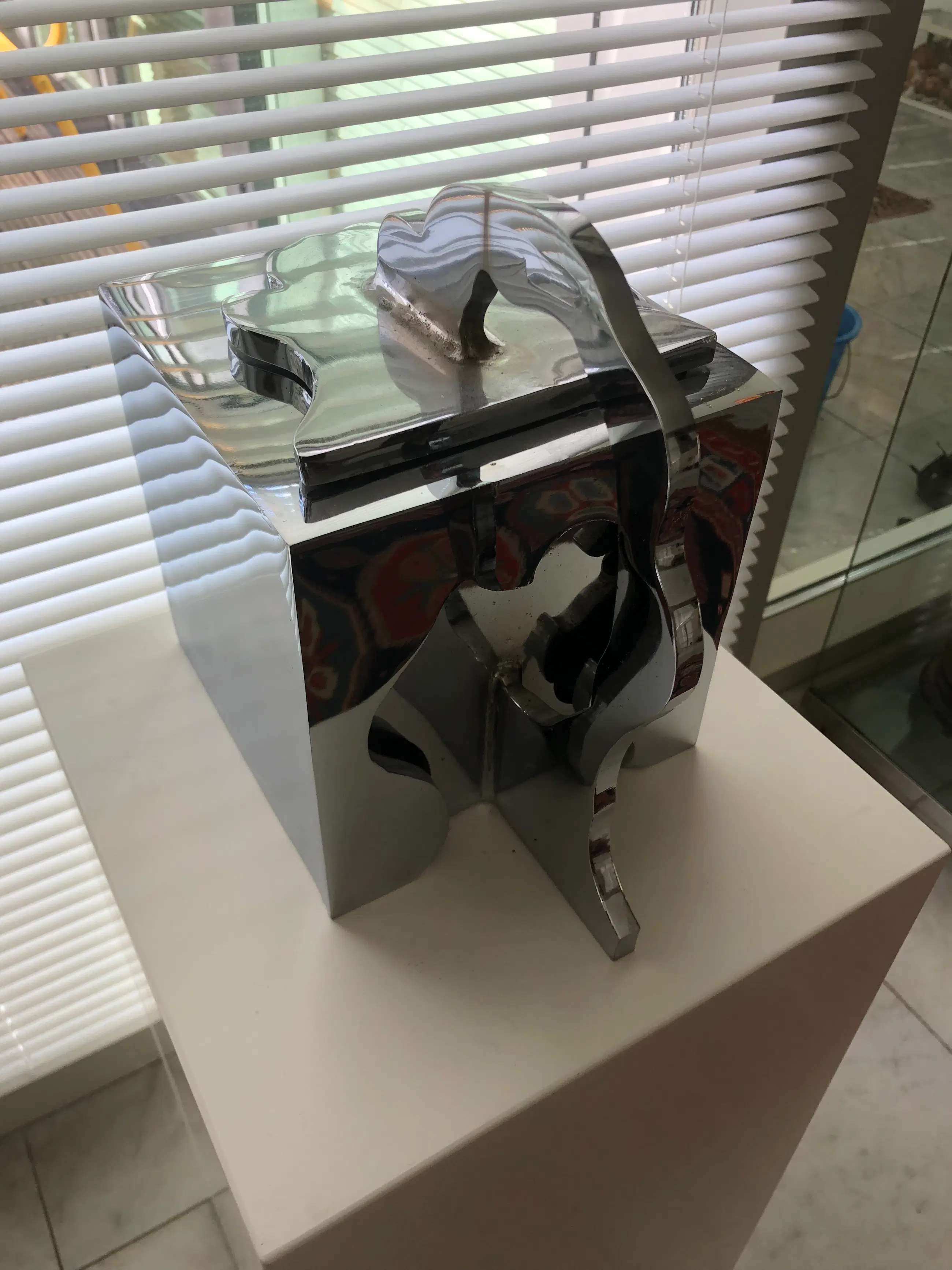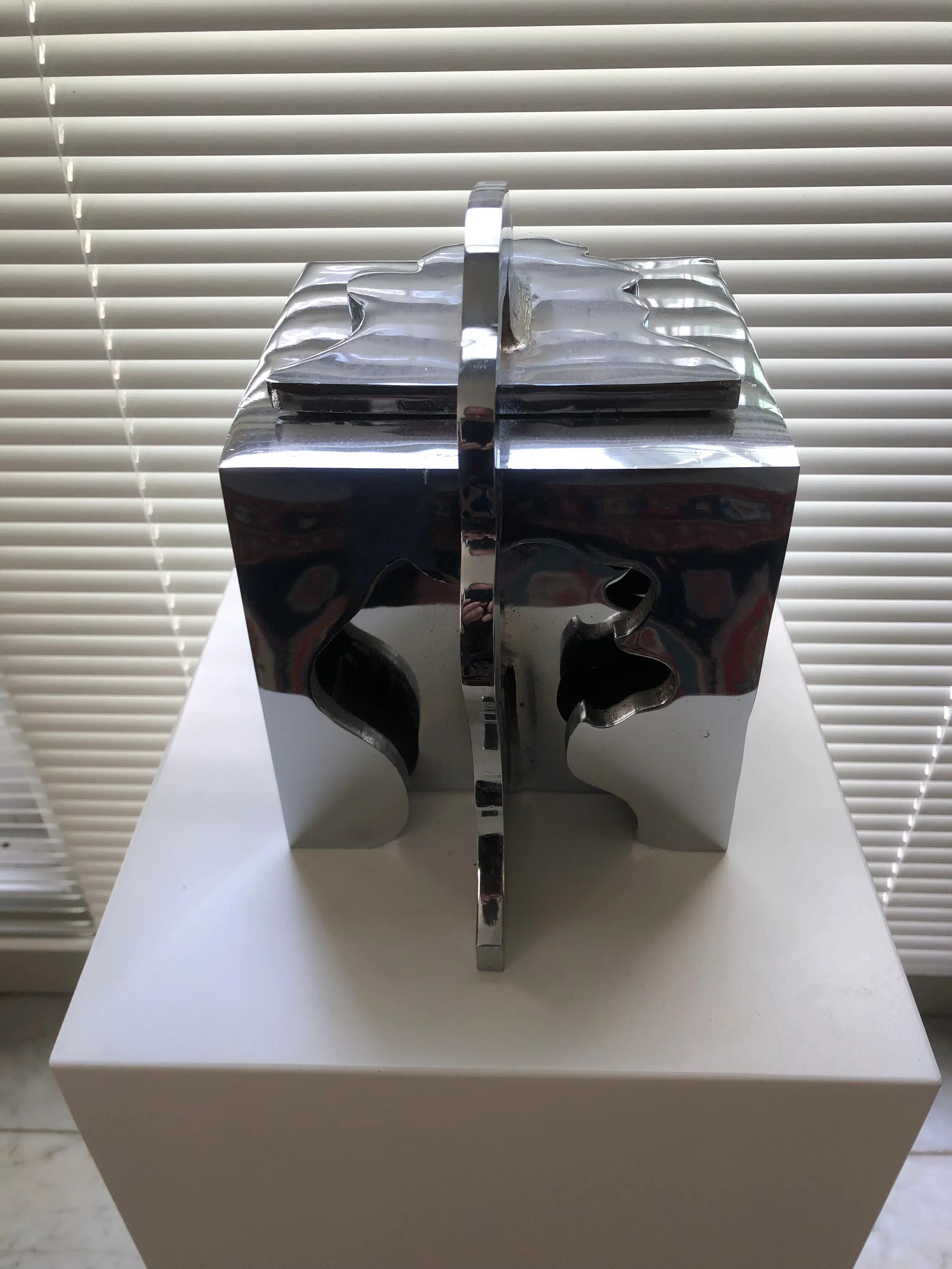 Cornelius Rogge - Tweedelig verchroomd metalen object of Open kubus met één handgreep