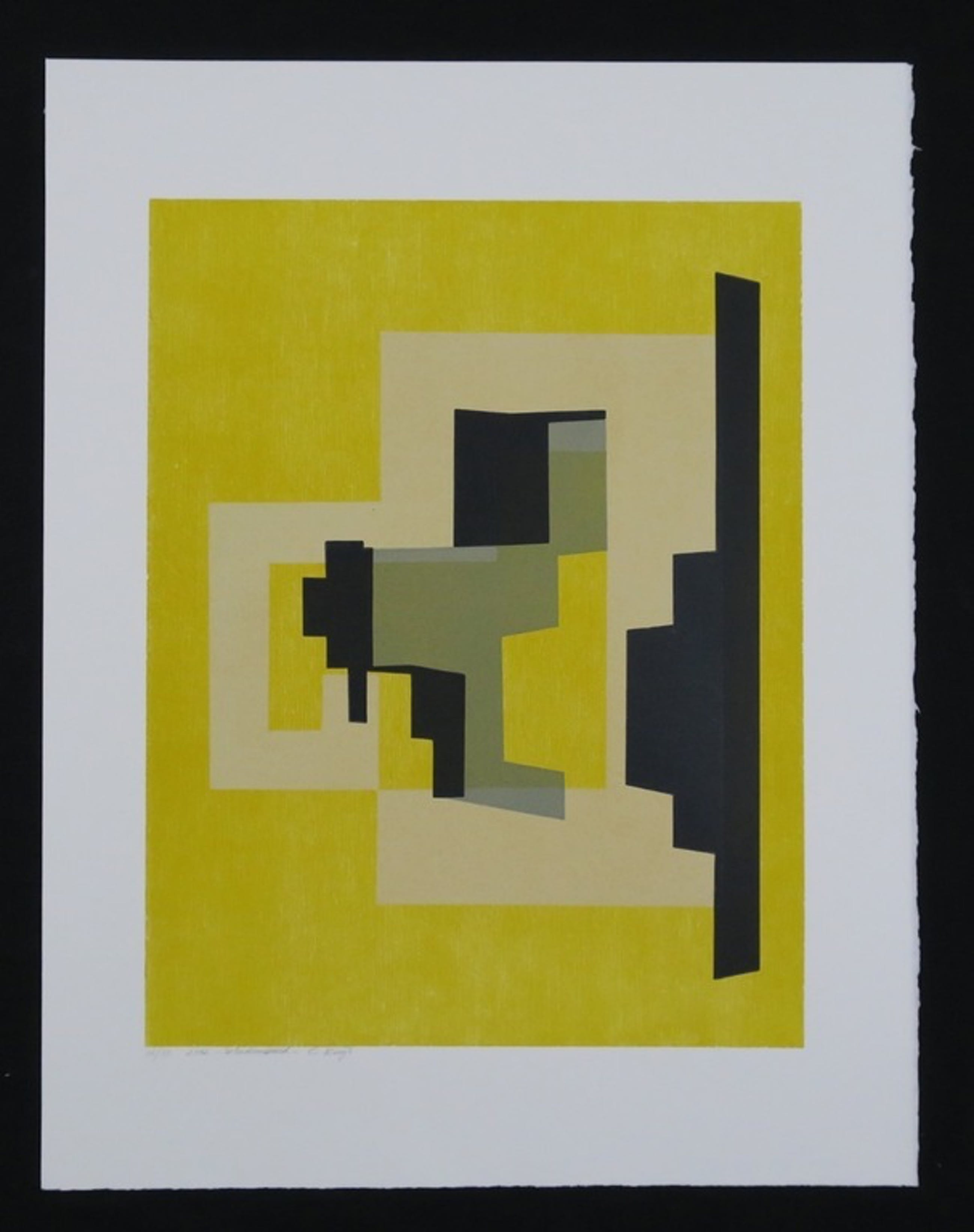 Lot met twee linosnedes van Corrie Kuijs: Lichtbeeld en Schaduwbeeld