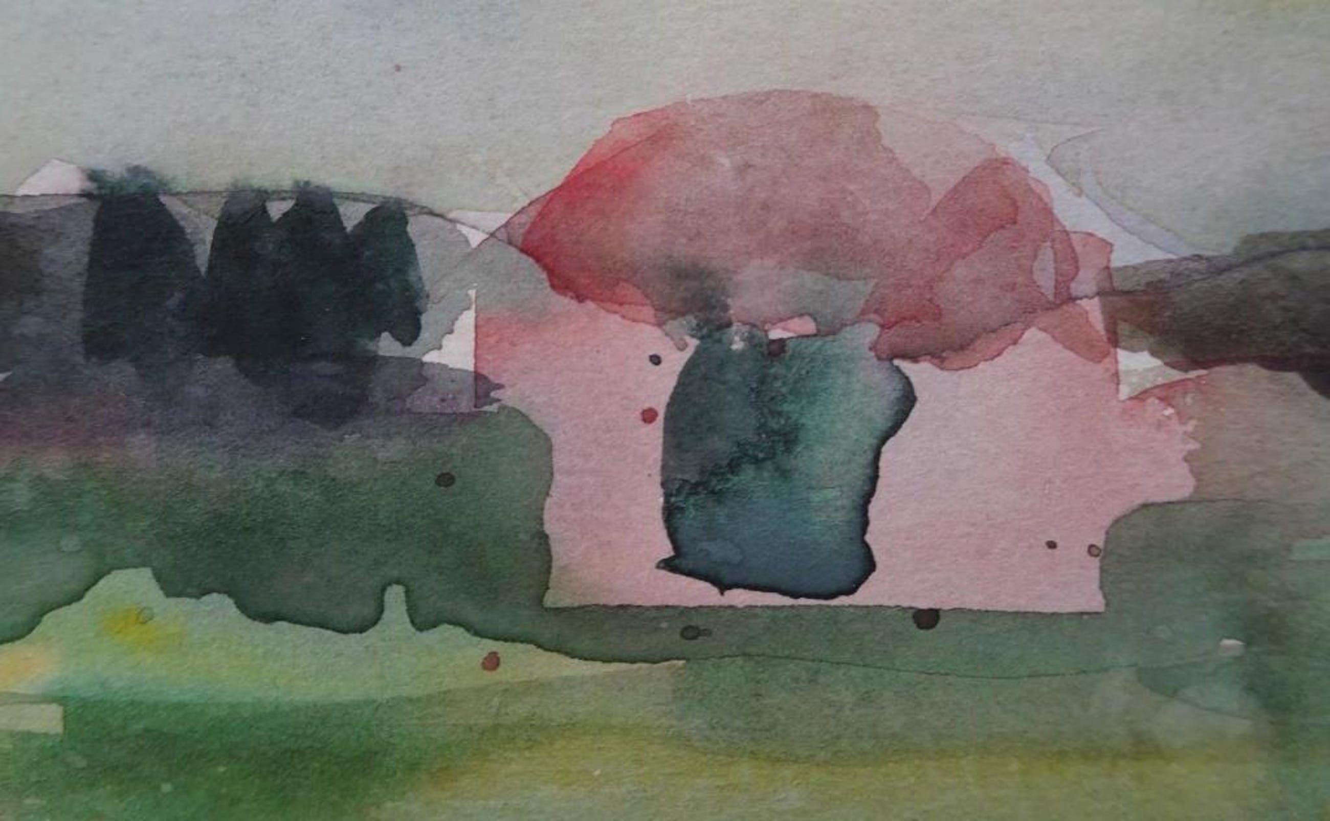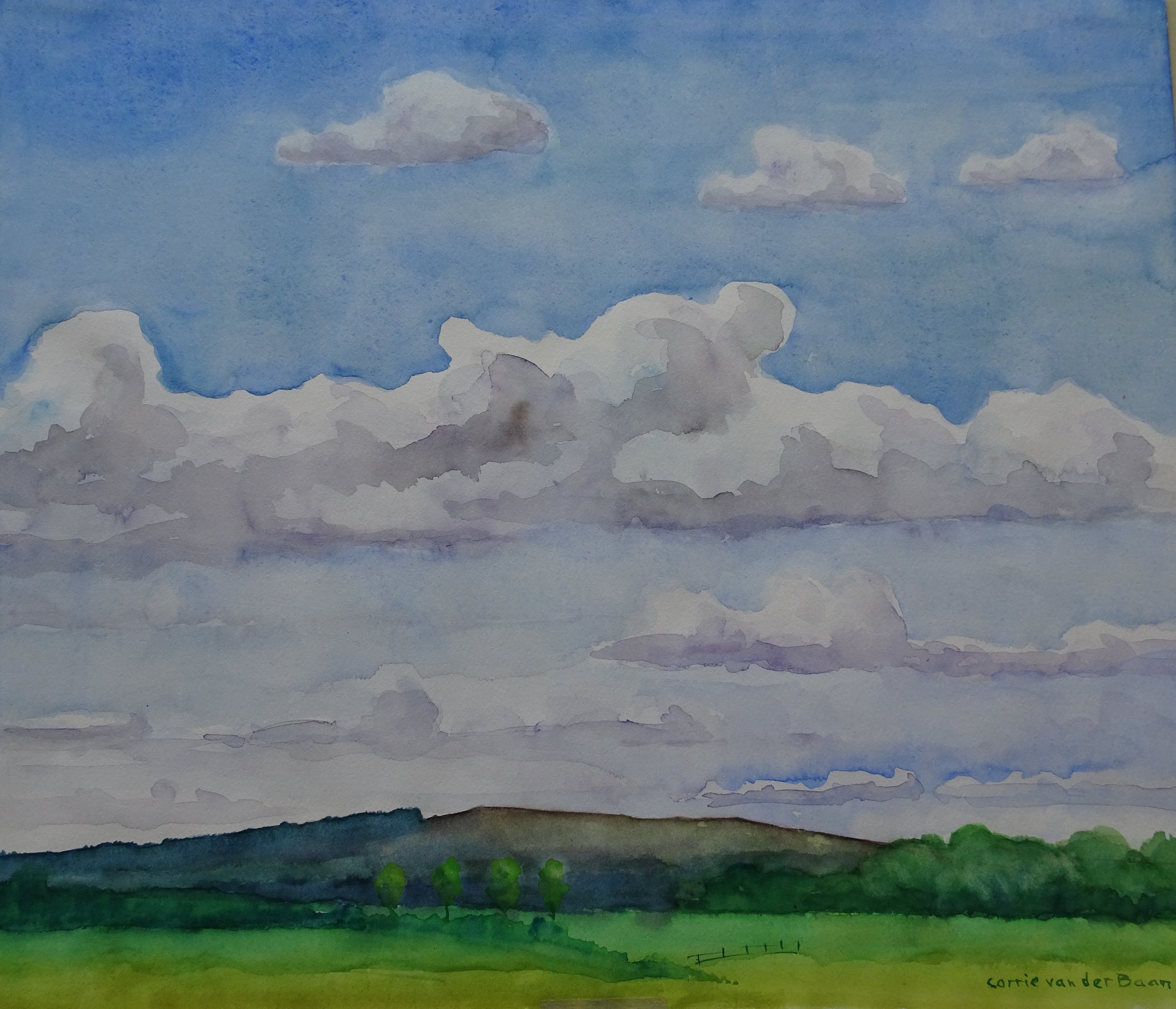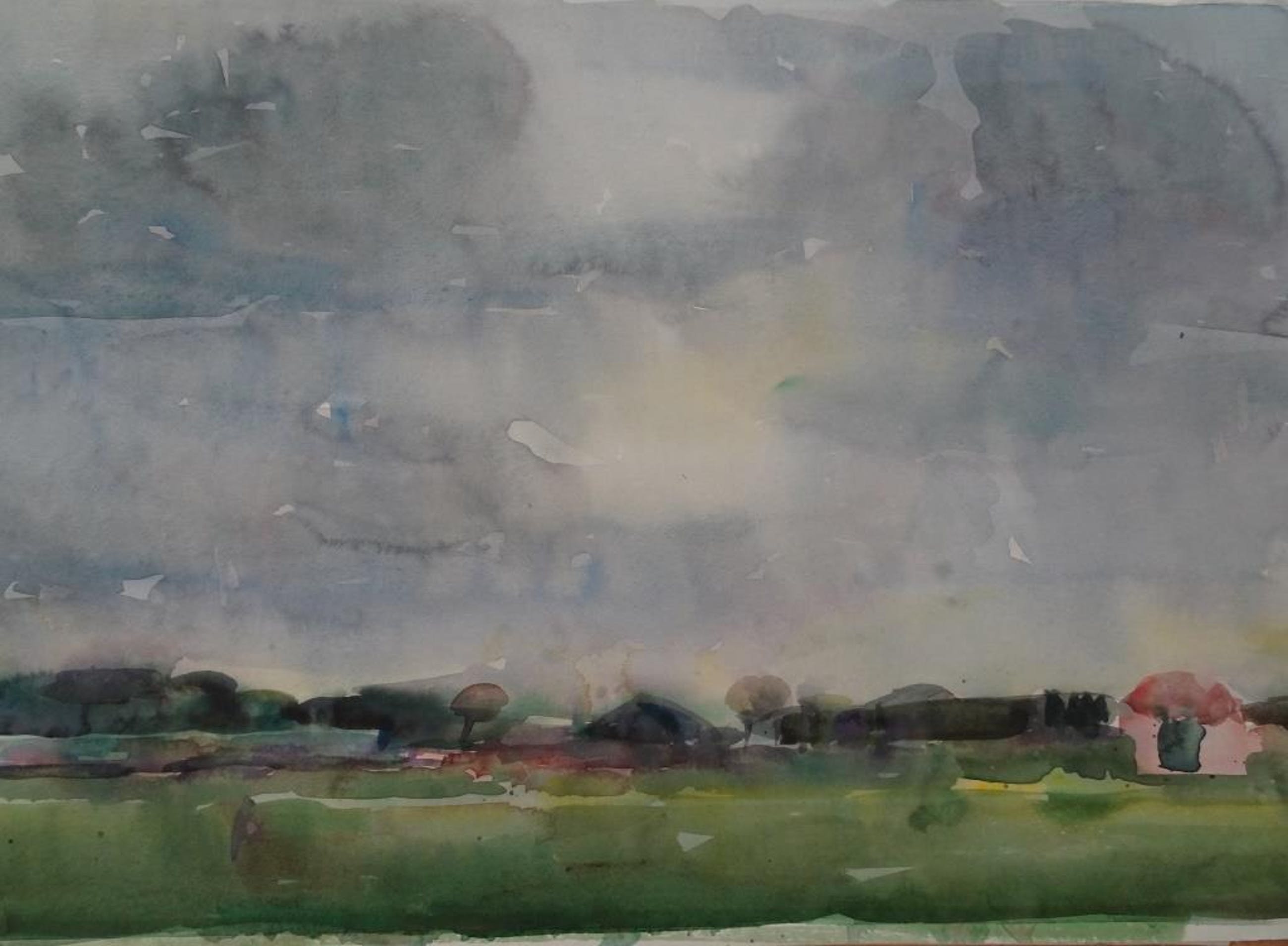 Met daaraan toegevoegd een aquarel met Limburgs landschap op papier
