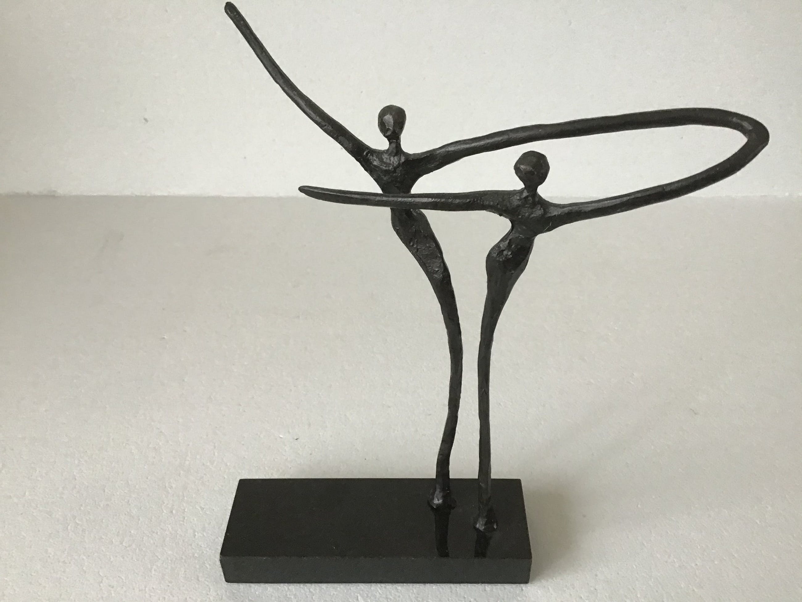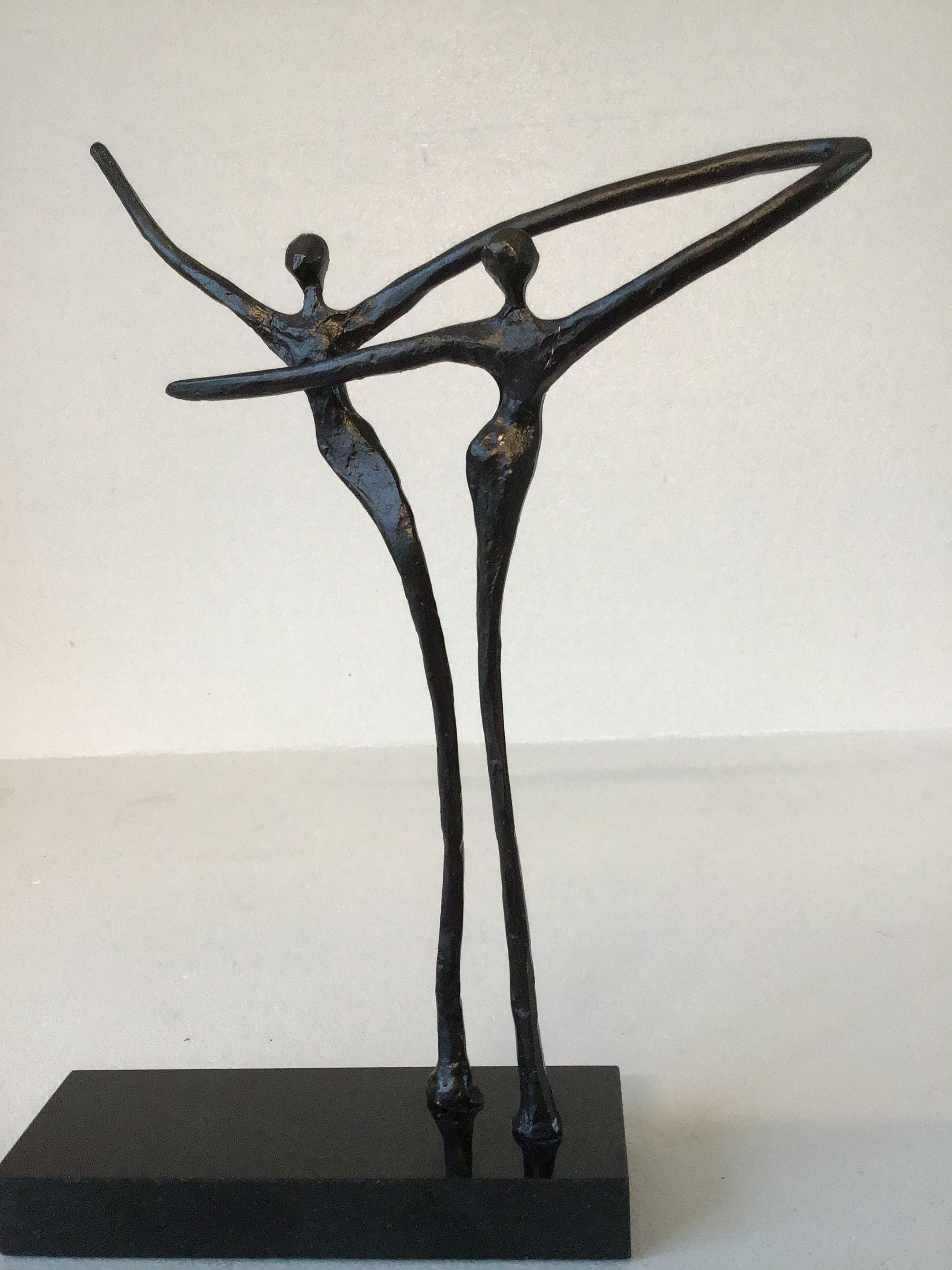 Mooi,sierlijk verbronsd beeld (legering) (alloy)van Corry Ammerlaan. De sokkel is van graniet en de afmeting breedte 14.5 en diepte 4.8cm. Totale breedte van het beeld is 18 cm en totale hoogte 25cm.