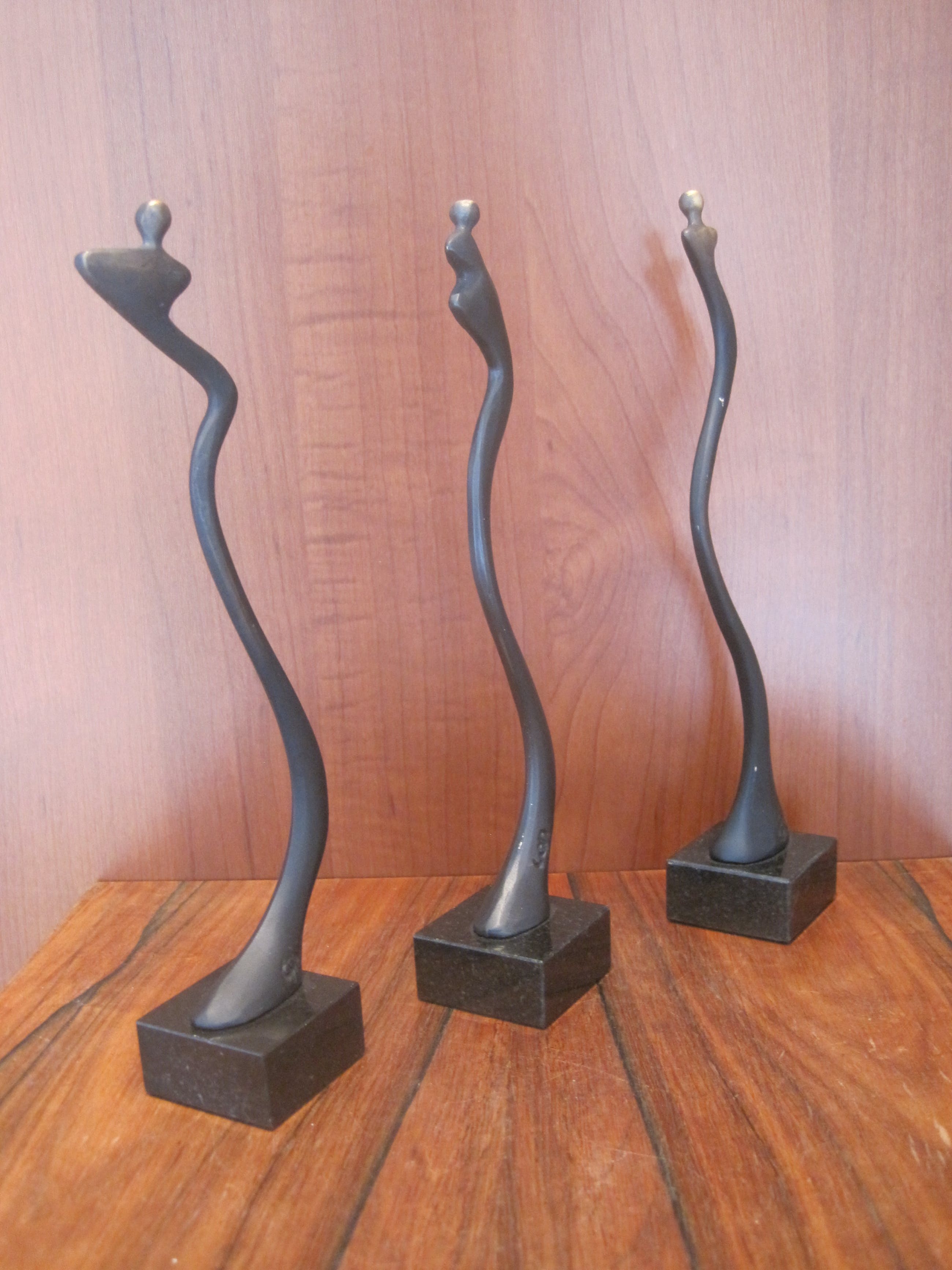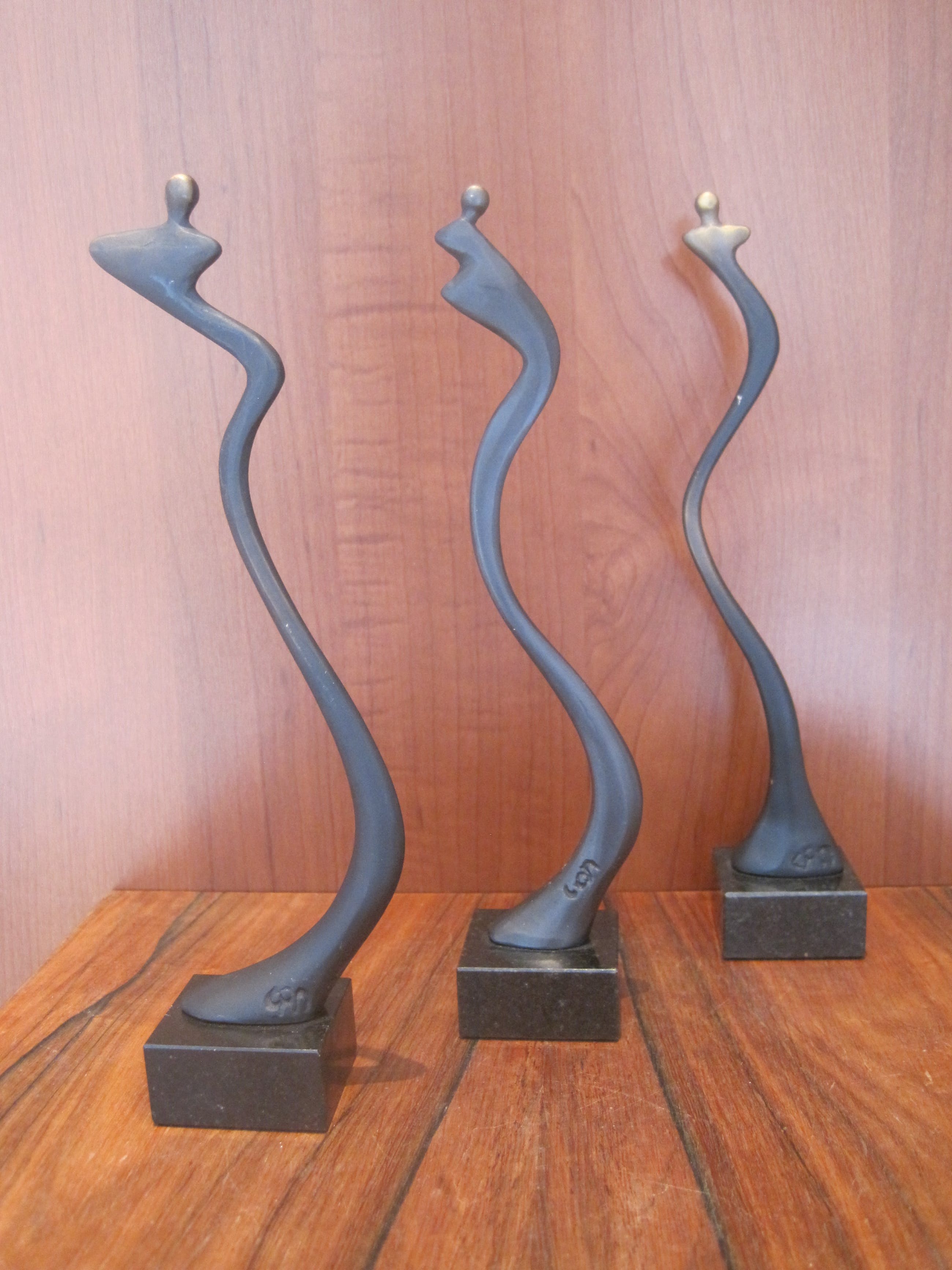 3 prachtige, bijzondere sculpturen met monogram (CAN) Corry Ammerlaan van Niekerk, op marmeren sokkels.. De objecten zijn collectors - items en in opdracht gemaakt voor : Sanquin Bloedbank. zij werden versterkt bij 60, 80 en 100 x bloed of plasma geven en zijn nooit te koop geweest. Worden thans niet meer verstrekt en zijn zeldzaam geworden.