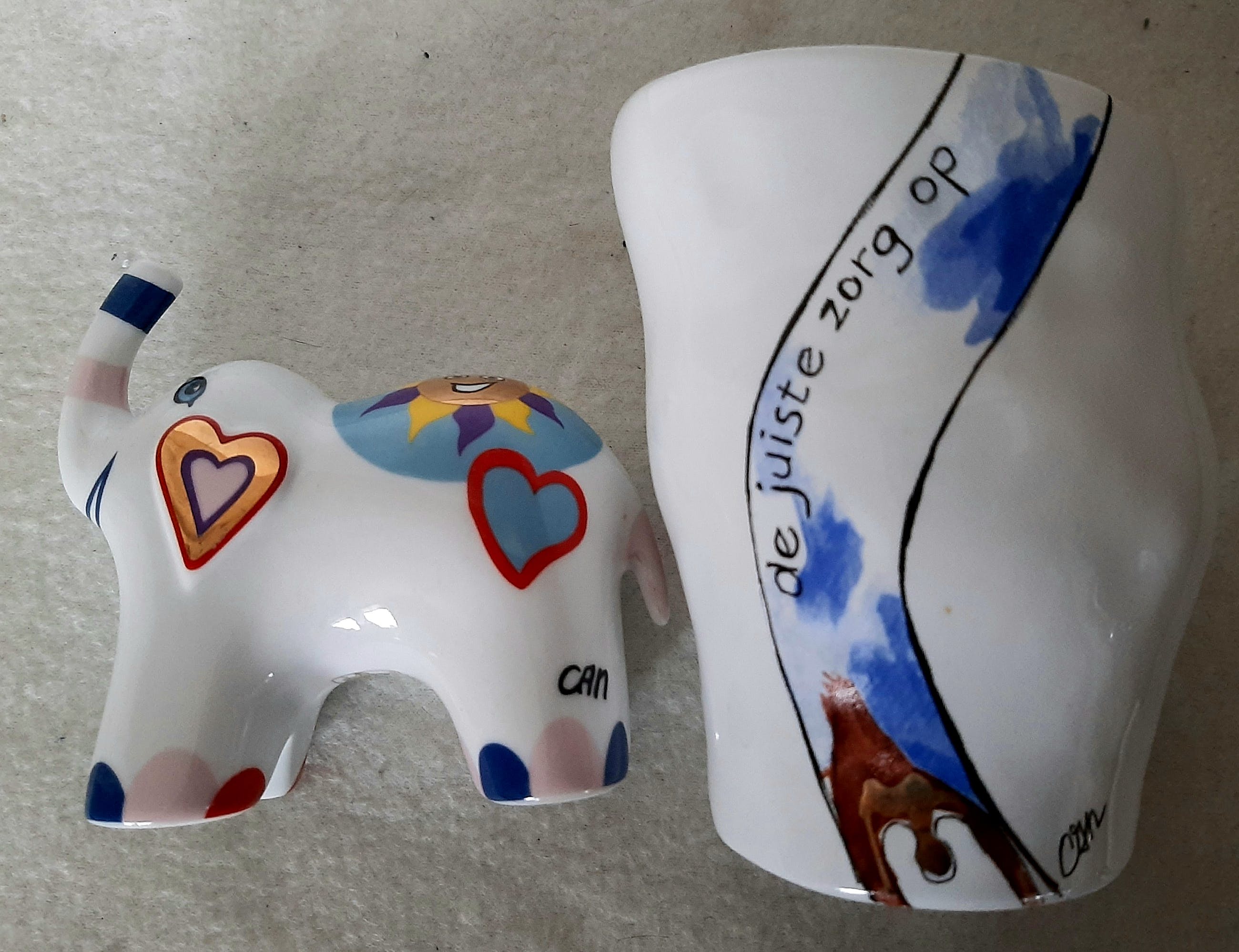Corry Ammerlaan 1.Keramische vrolijk Olifant in zeer goede staat. 9,5 cm x 11,0 cm x 5,0 cm (LxHxB)