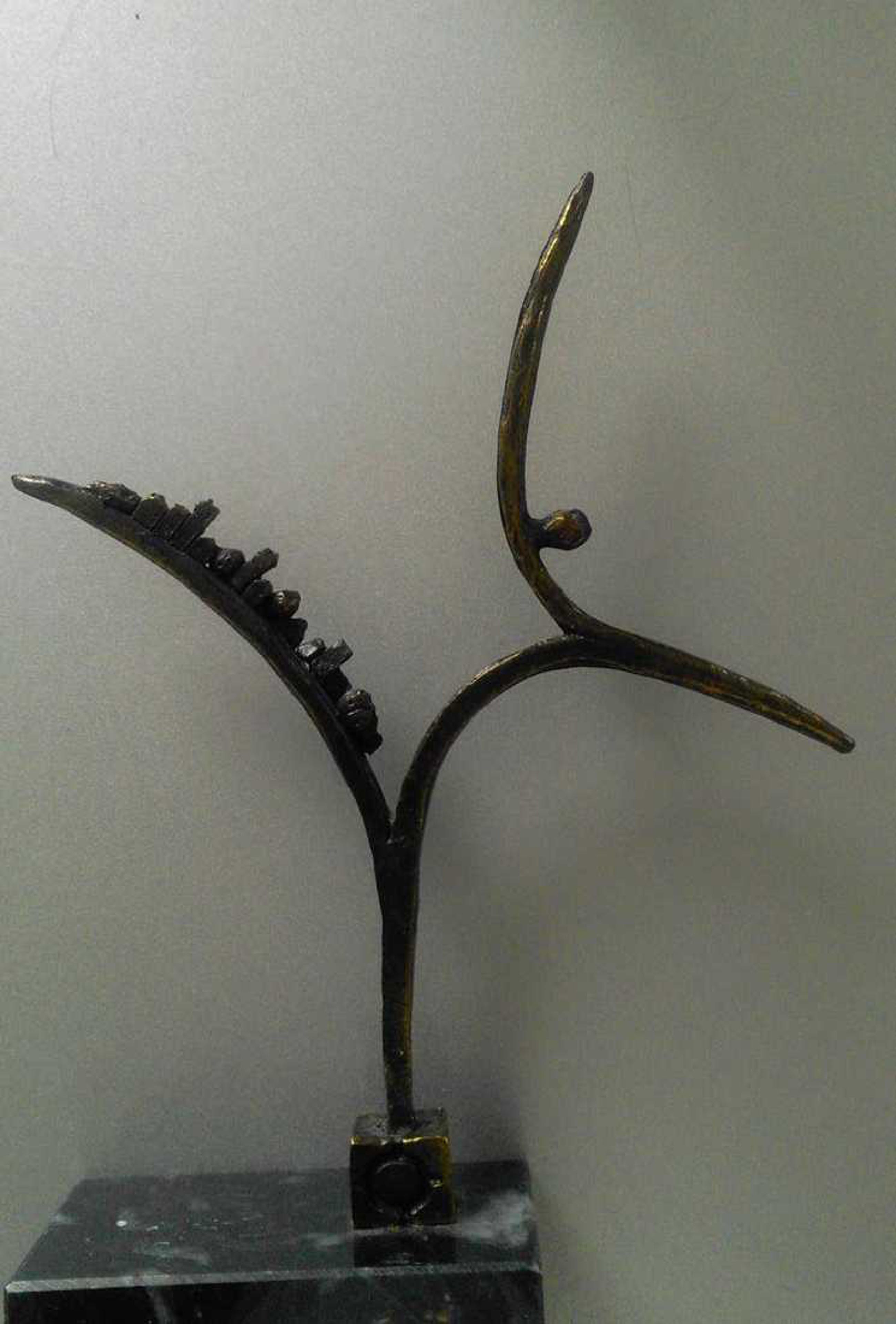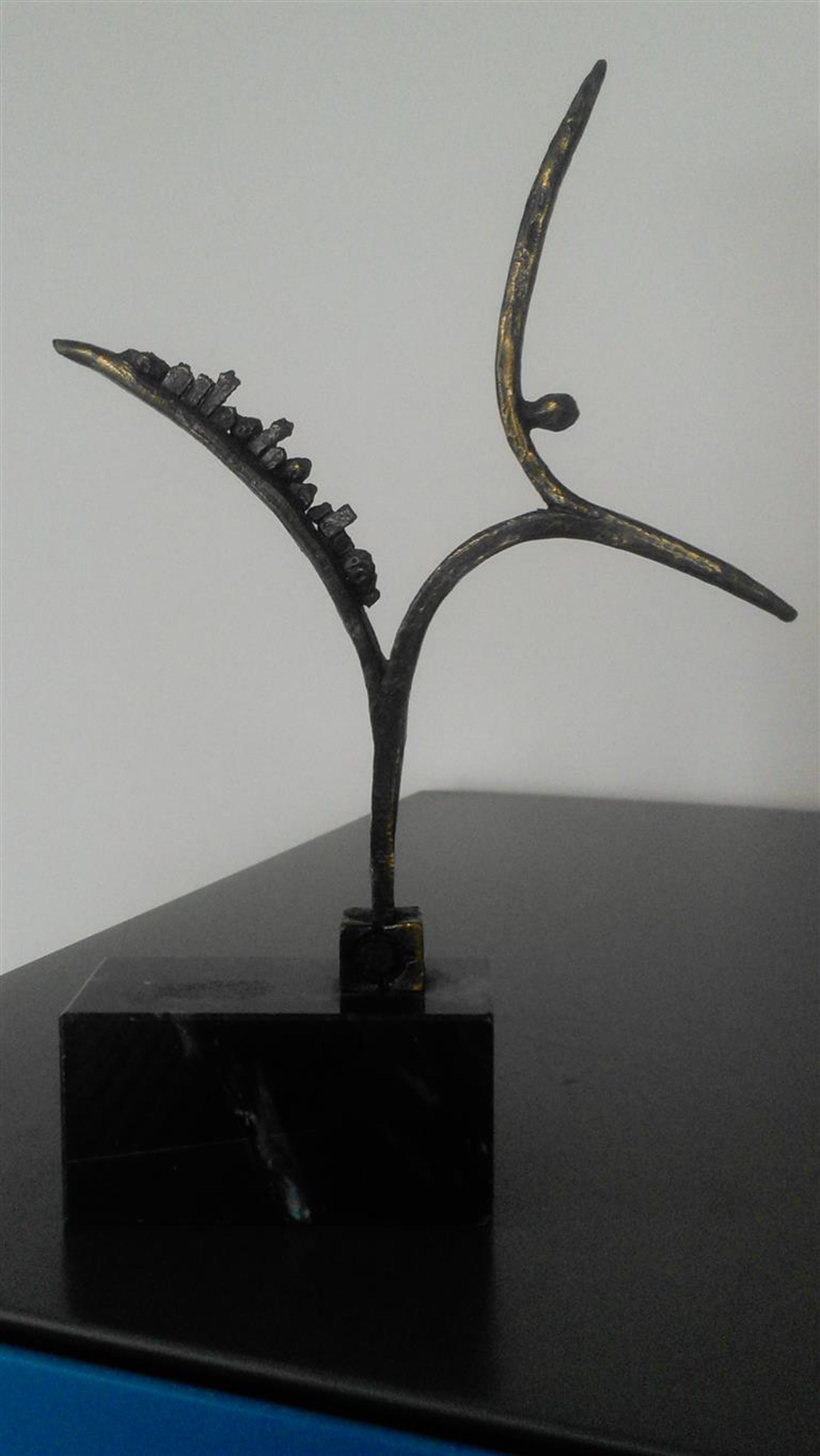 Van ontwerper Romee Kanis voor Artihove waarvan Corry Ammerlaan van Niekerk de artistiek directeur is het beeldje Vooruitgang op natuurstenen sokkel