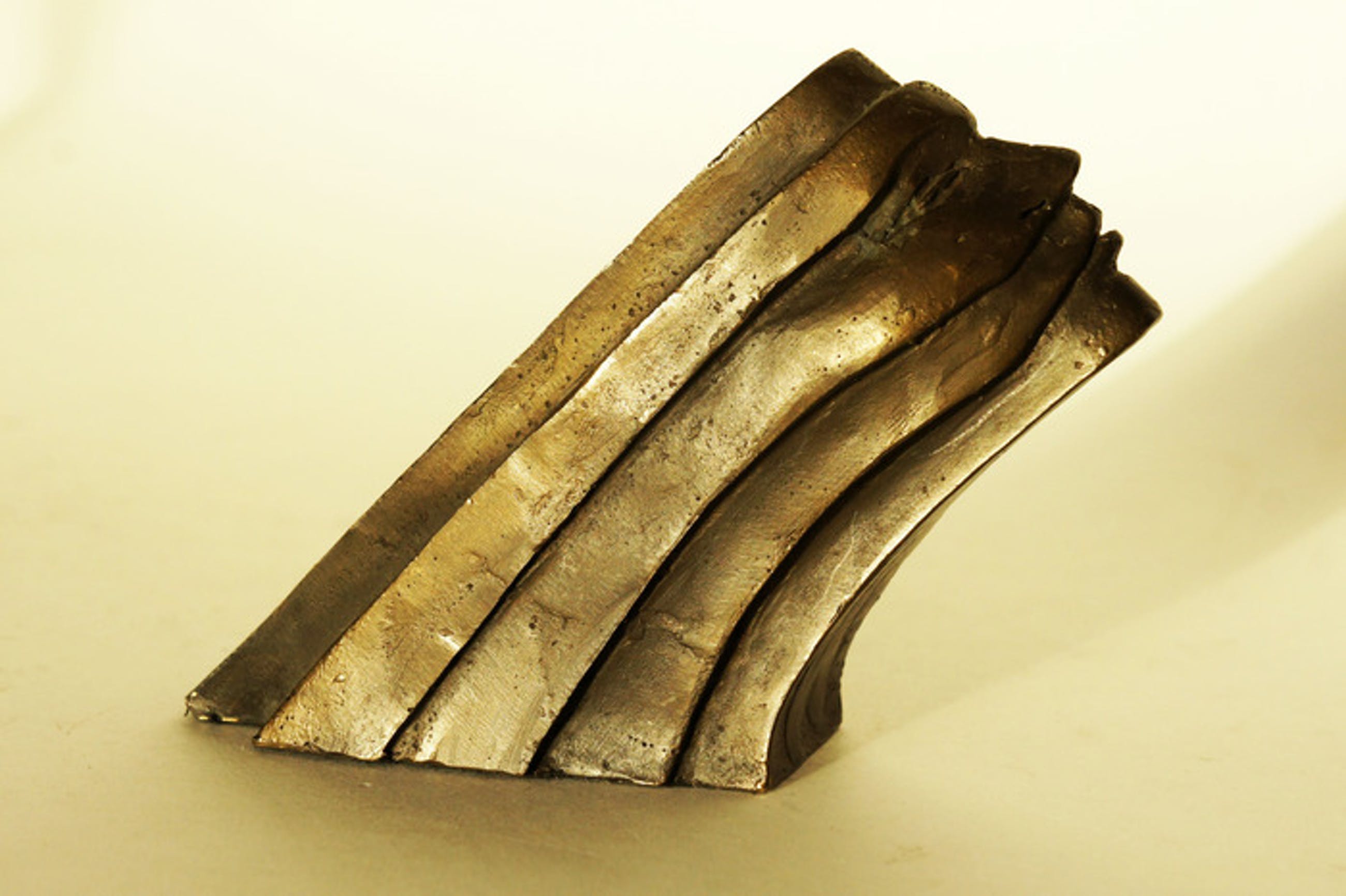 Eind 20e eeuw, Bergschenhoek Vervaardigd in art deco stijl een intrigerend lijnenspel dat uitmondt in een gezicht. De sculptuur is gemerkt met PSG CAN. Corry Ammerlaan van Niekerk. Vervaardigd bij Artihove Regina.
