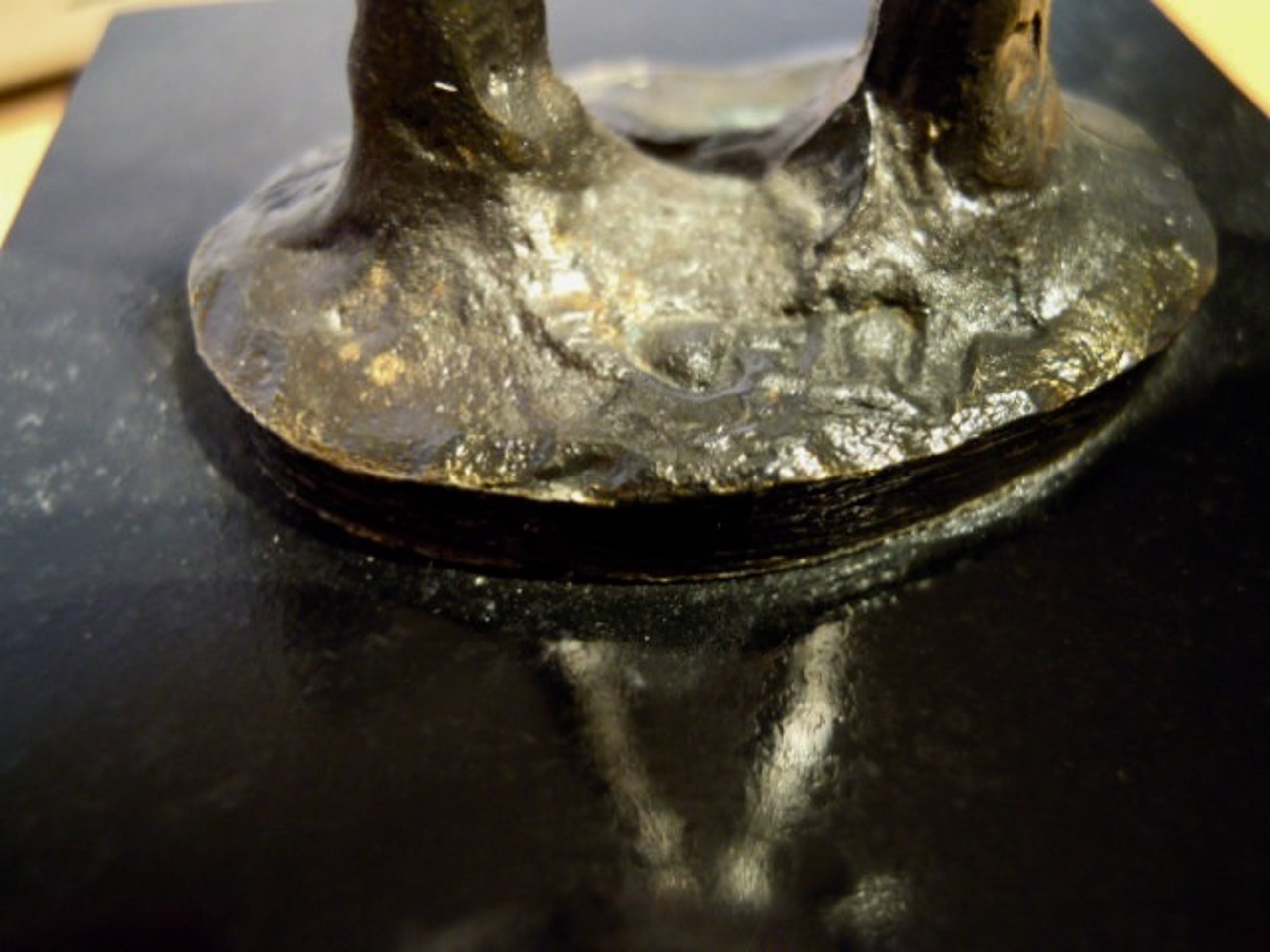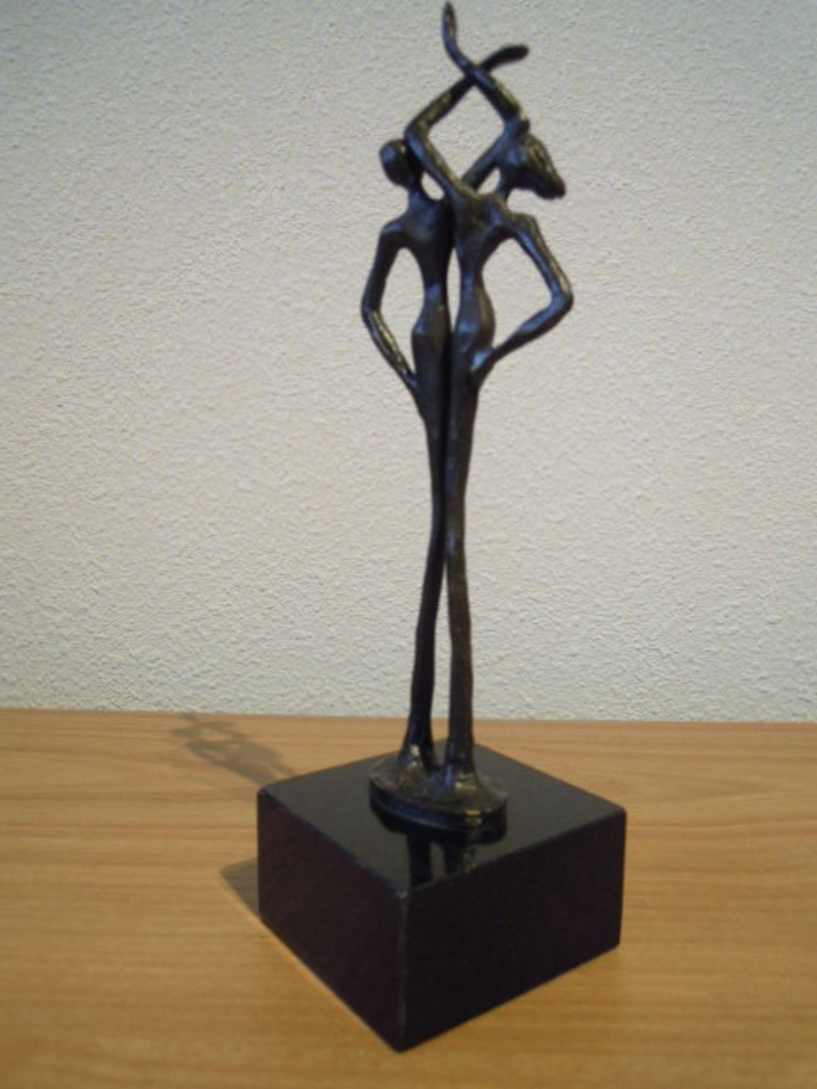 Het betreft een prachtig beeldje in zeer mooie staat.Van het voetje is een heel klein puntje af - nauwelijks zichtbaar. De totale hoogte is 19 cm dus inclusief het voetje. Is gesigneerd op het voetje van het beeld - zie foto.