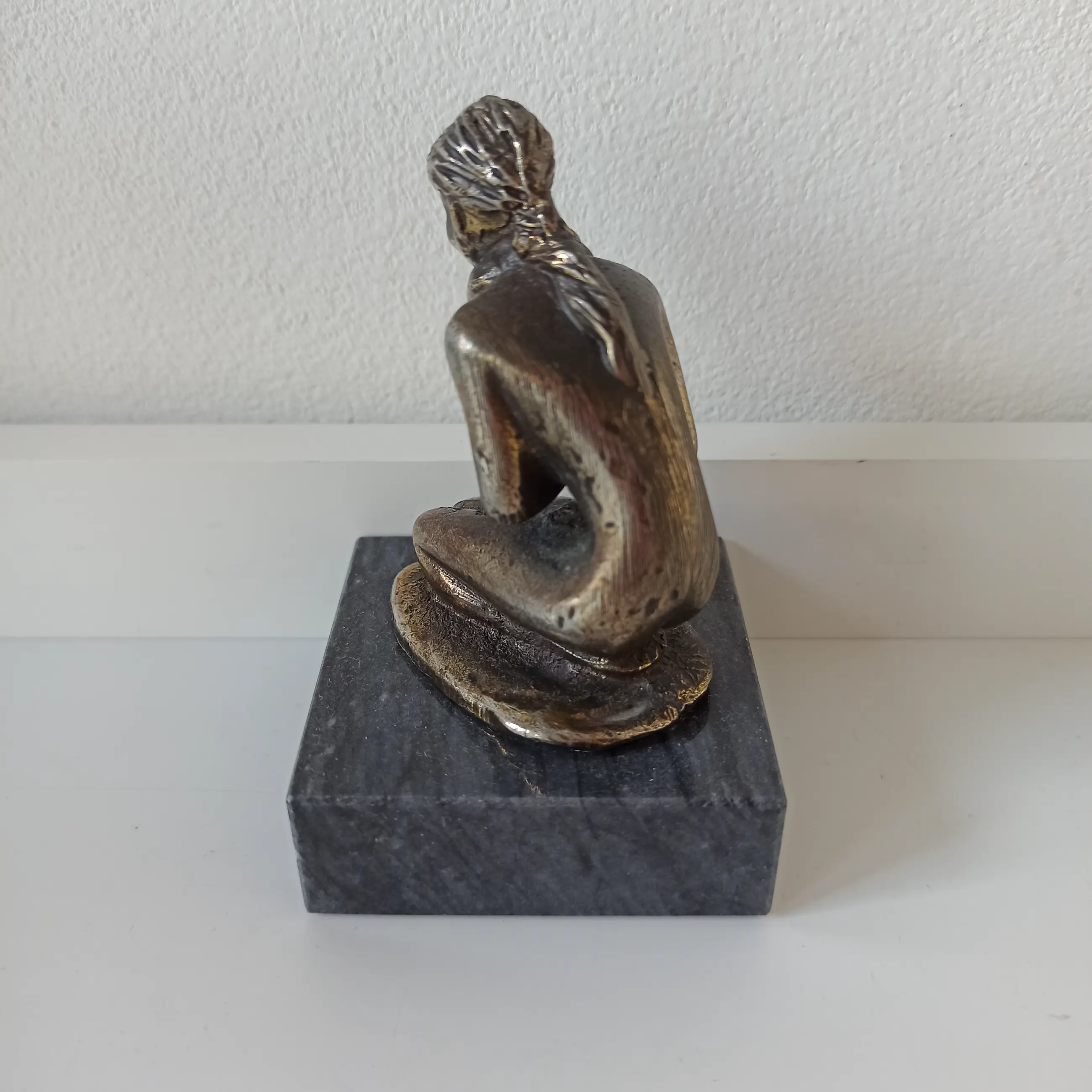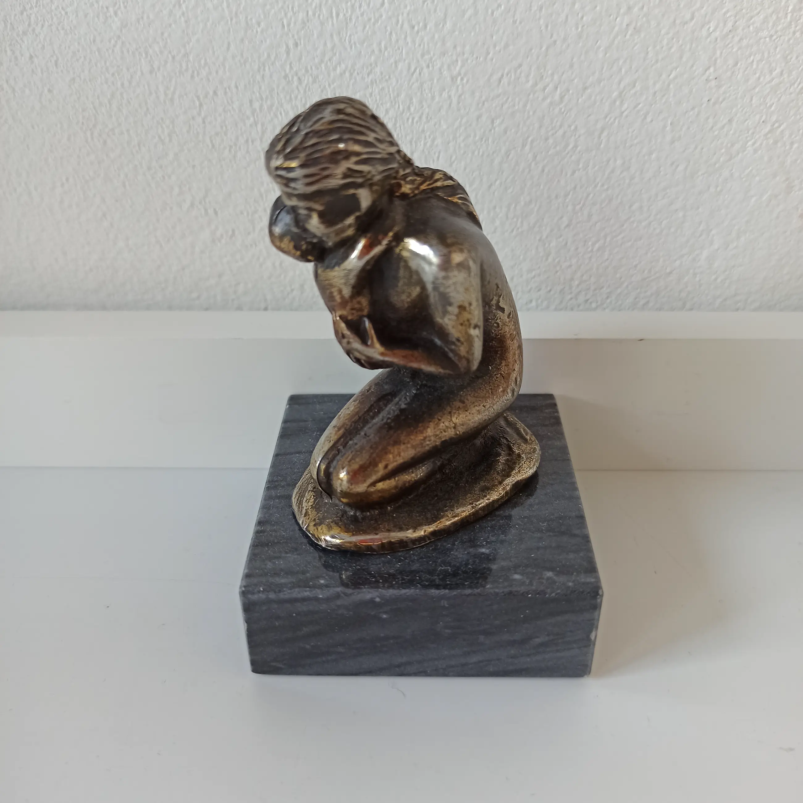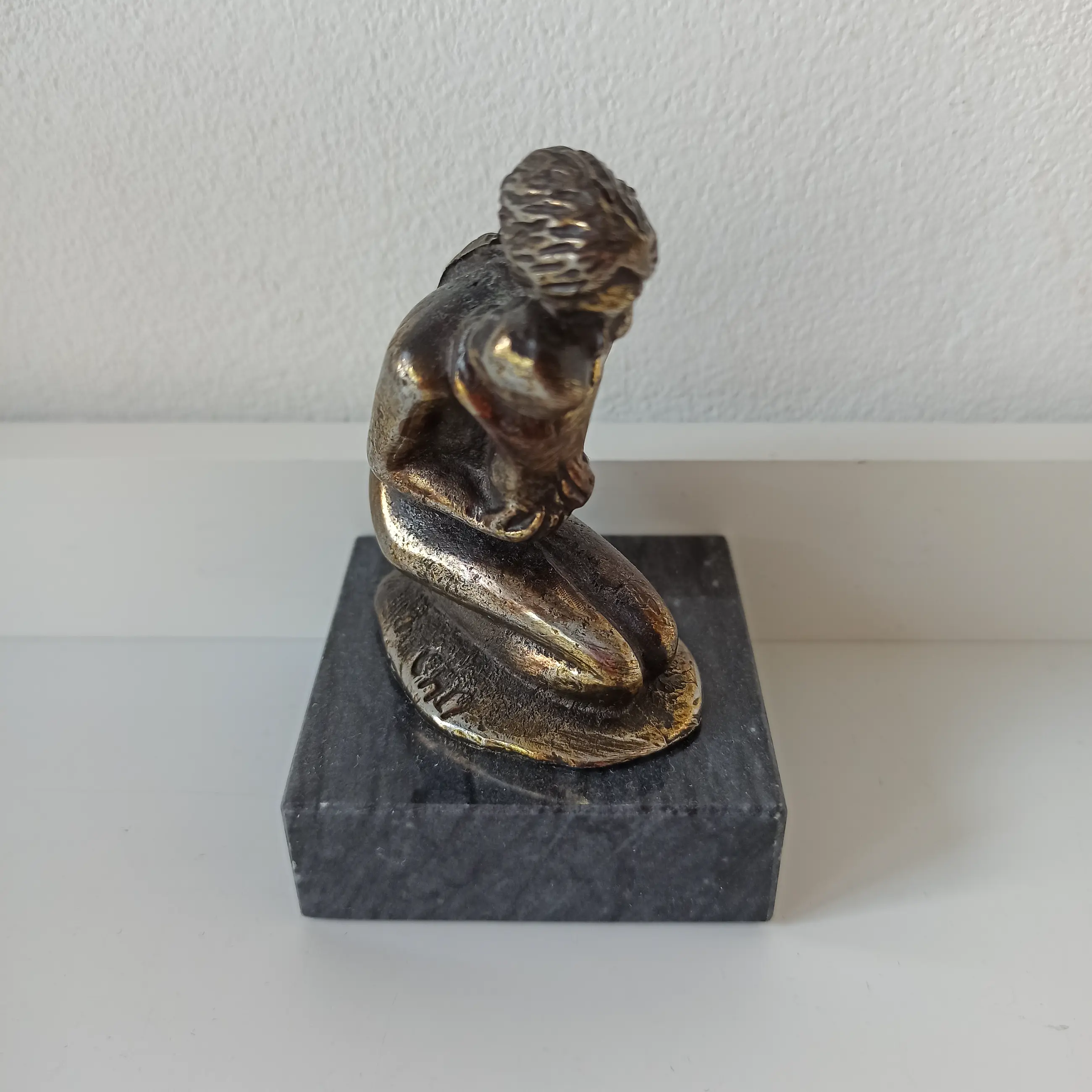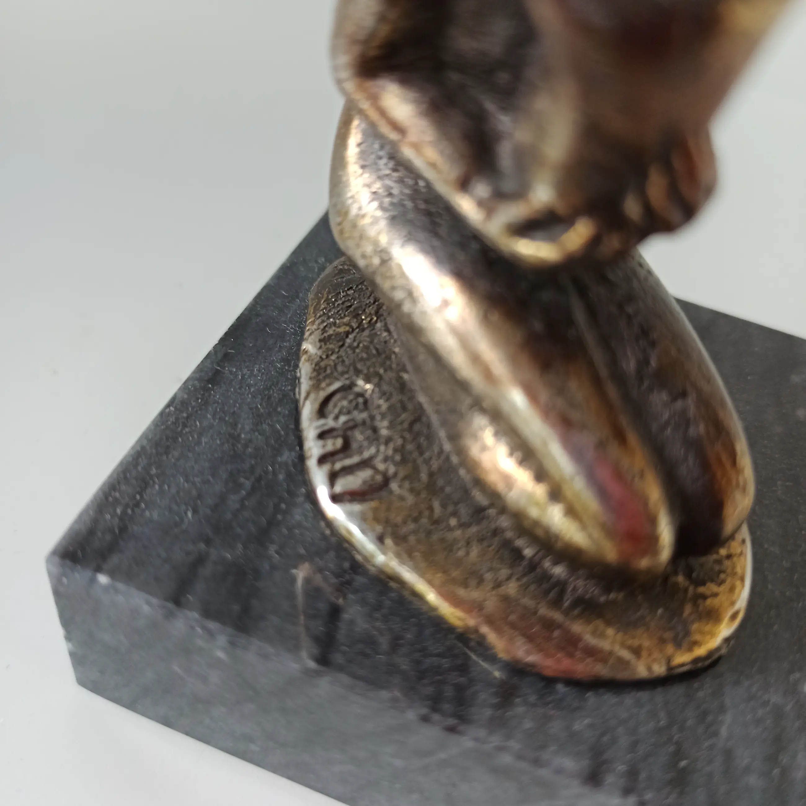Brons / verbronsd beeldje op een marmeren voetje, signatuur staat gedrukt aan de zijkant. De maten zoals omschreven zijn van het beeld incl de marmeren voet. Bekijk ook alle fotos, ze maken deel uit van de omschrijving.