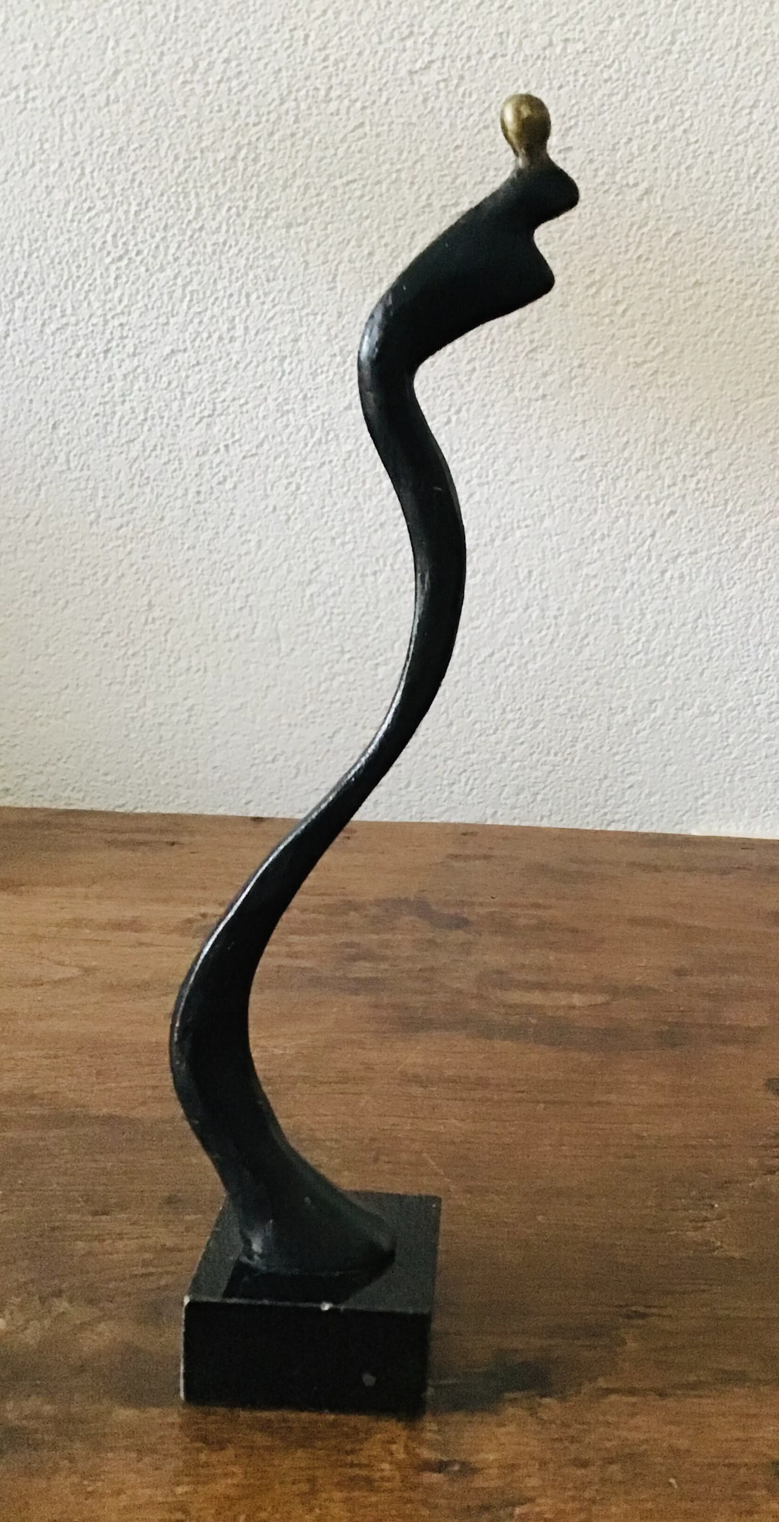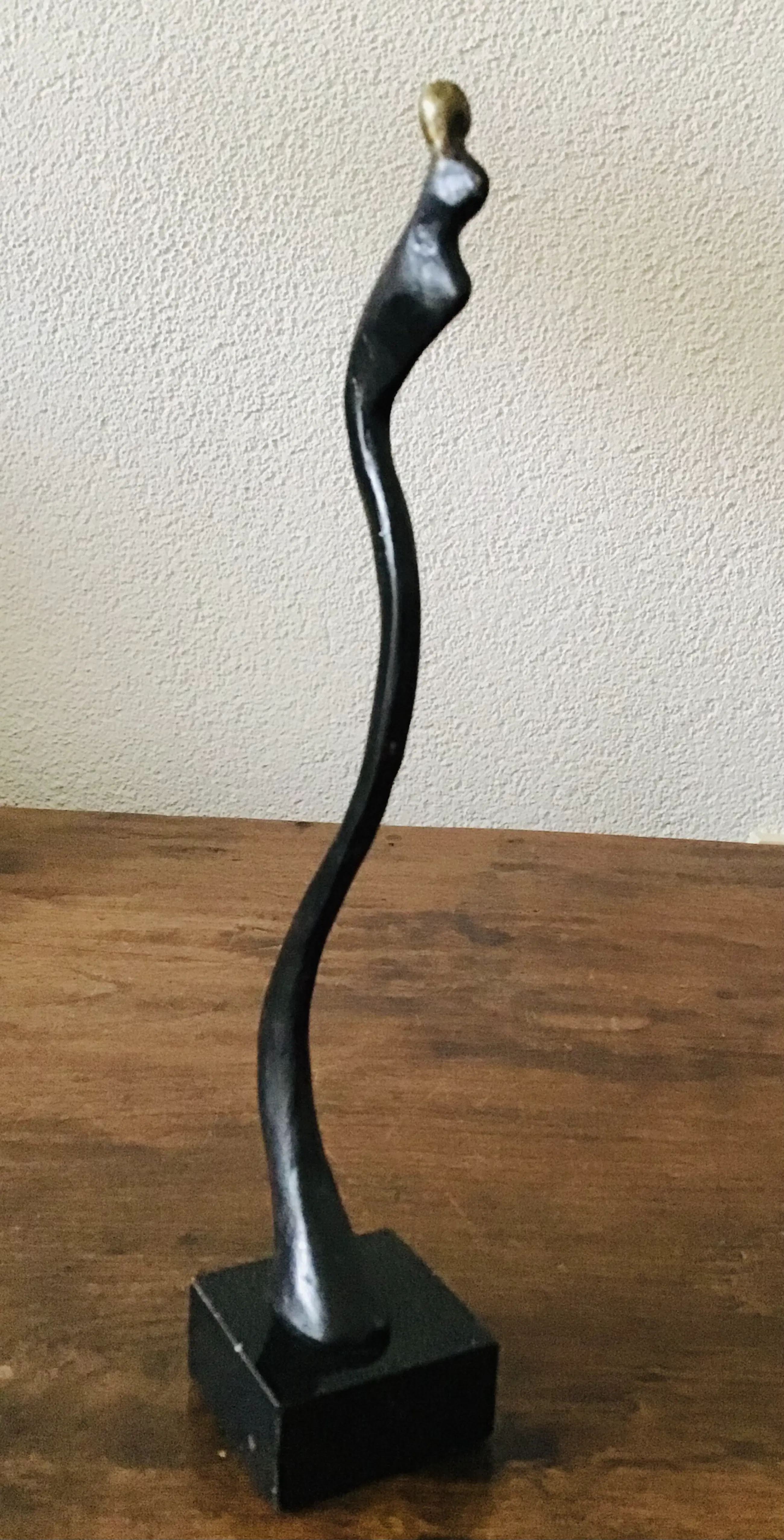 Sierlijk beeldje uit de jaren 2007-2009 van Corrie Ammerlaan Hoogte 26 cm Brons op metaal Op marmeren sokkel Gesigneerd CAN op voet Het beeld is speciaal gemaakt voor Sanguin en nooit in de verkoop geweest. Onditie uitstekend