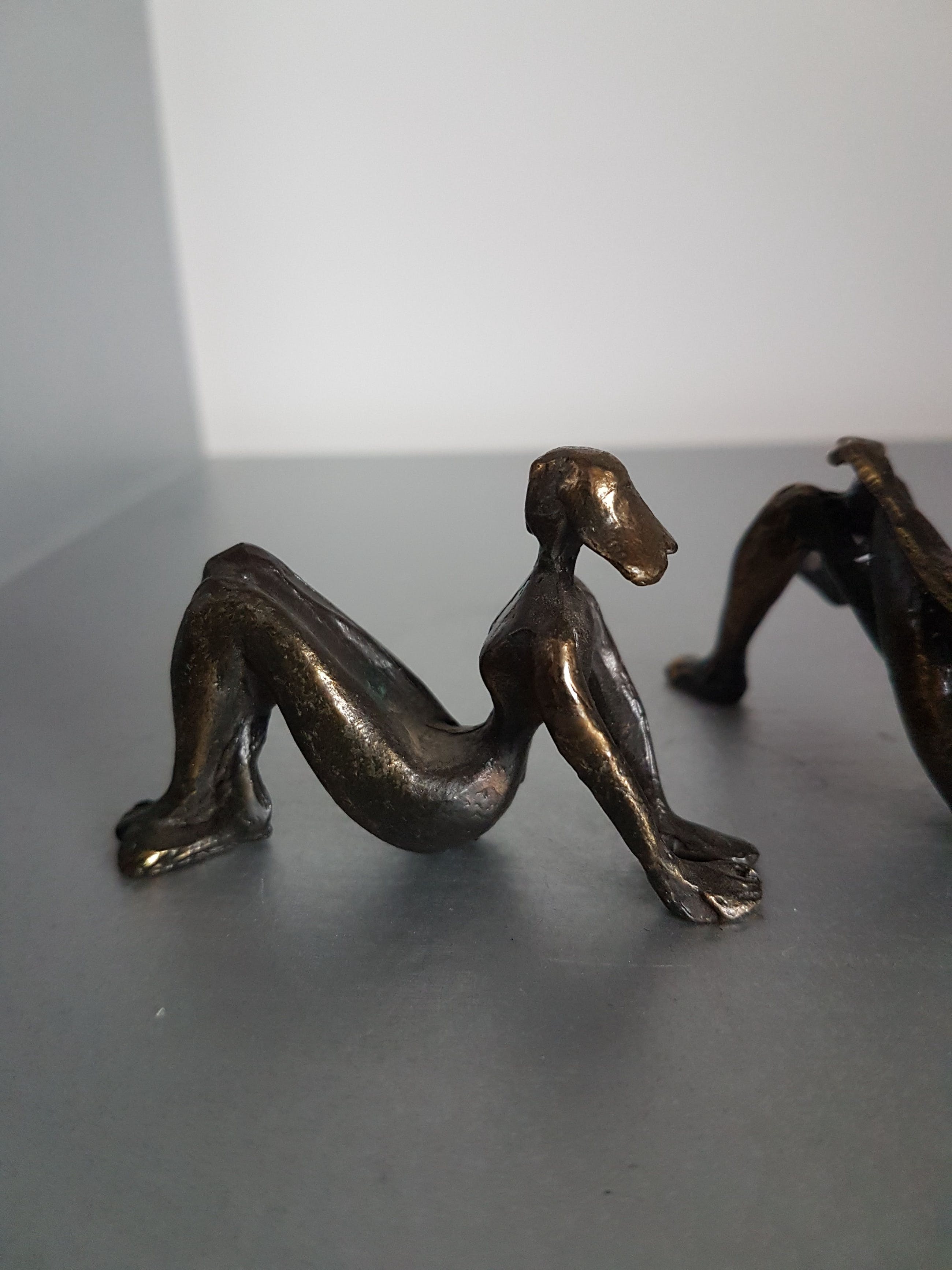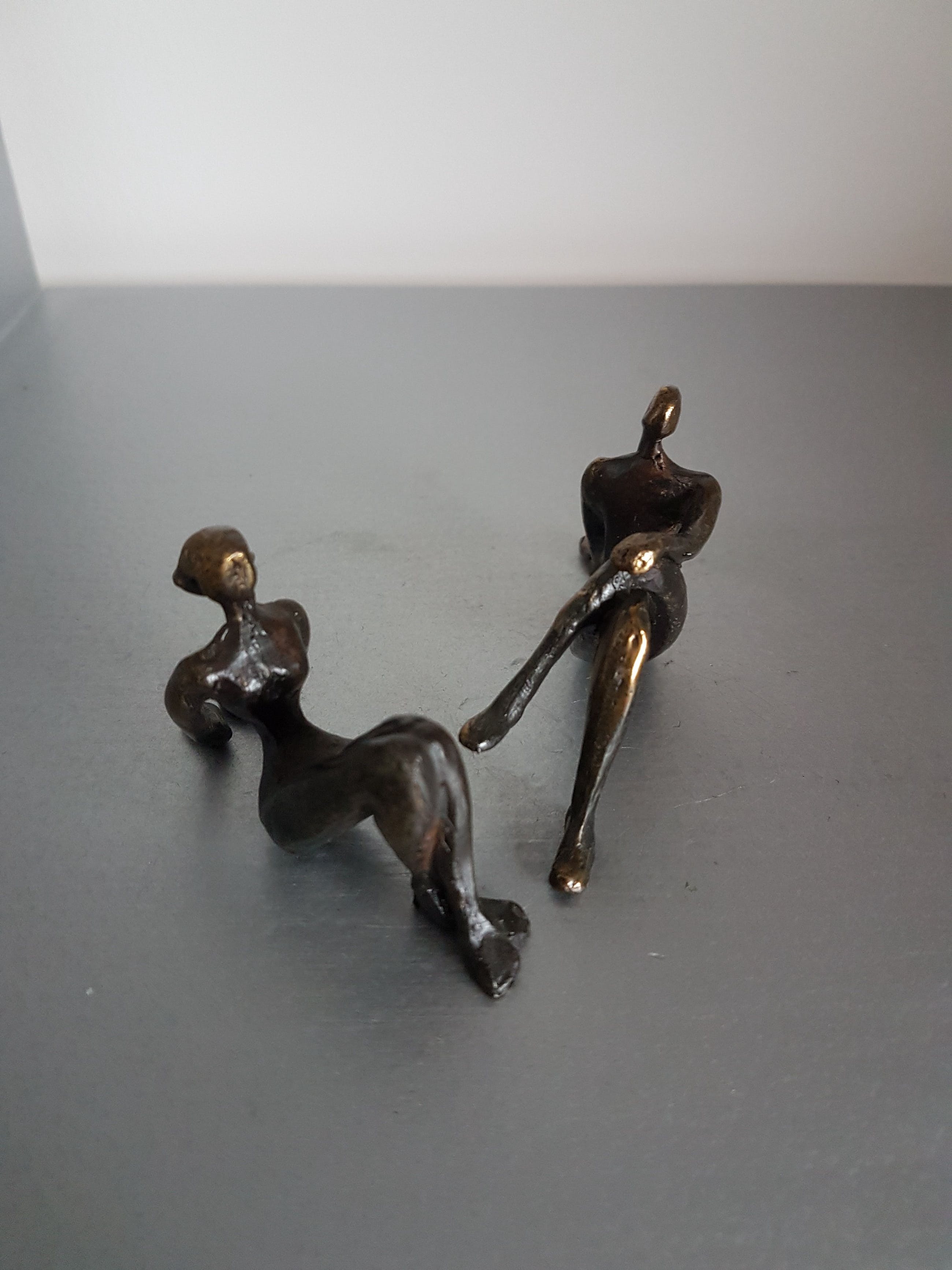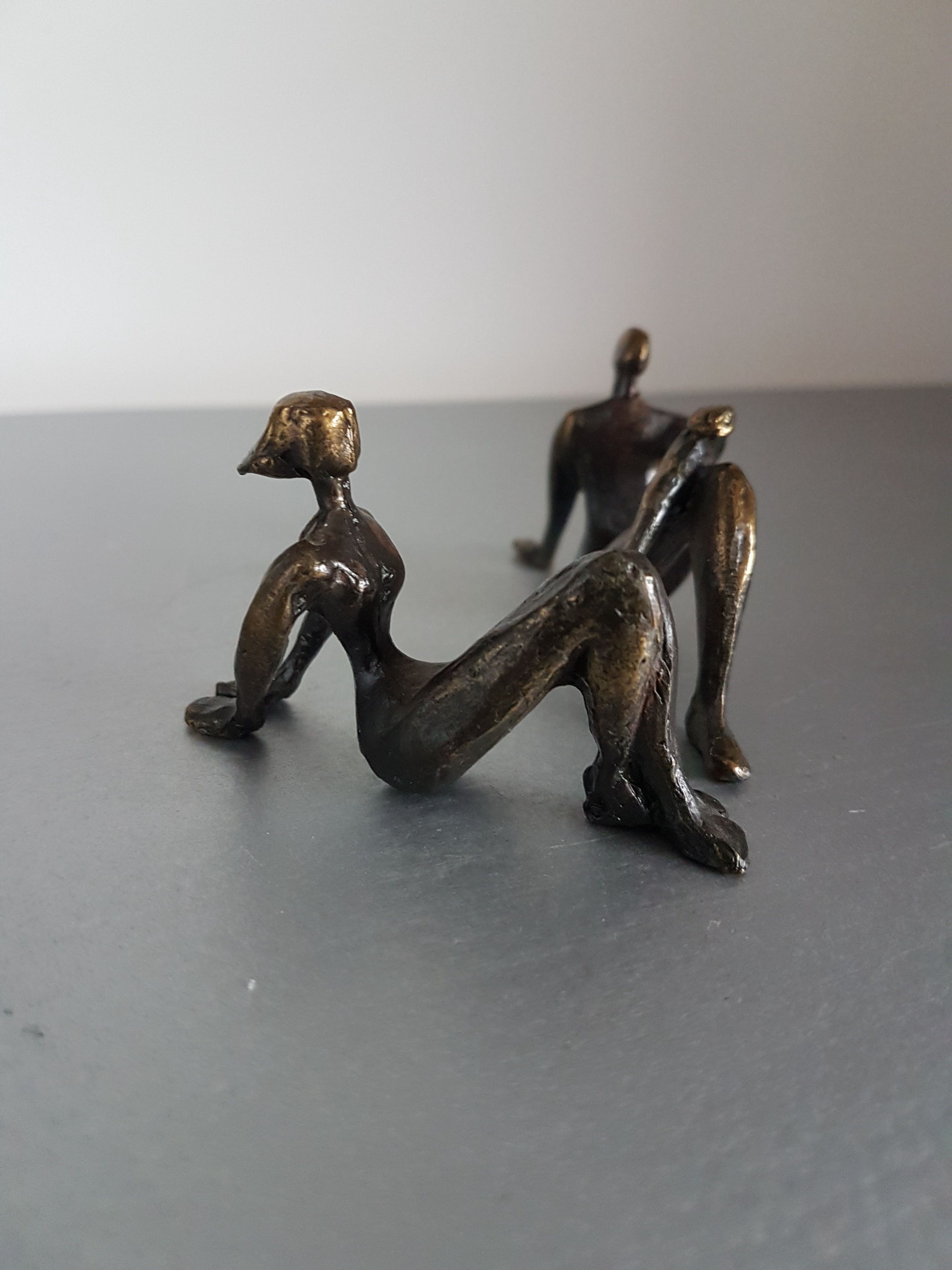 Prachtige beeldjes van de bekende Nederlandse beeldhouwster en schilder Corry Ammerlaan-Niekerk. In haar werk zet zij de mensfiguur centraal zoals in dit beeld mooi te zien is.