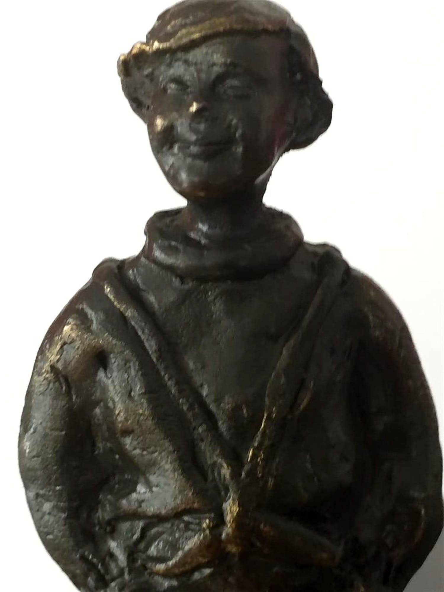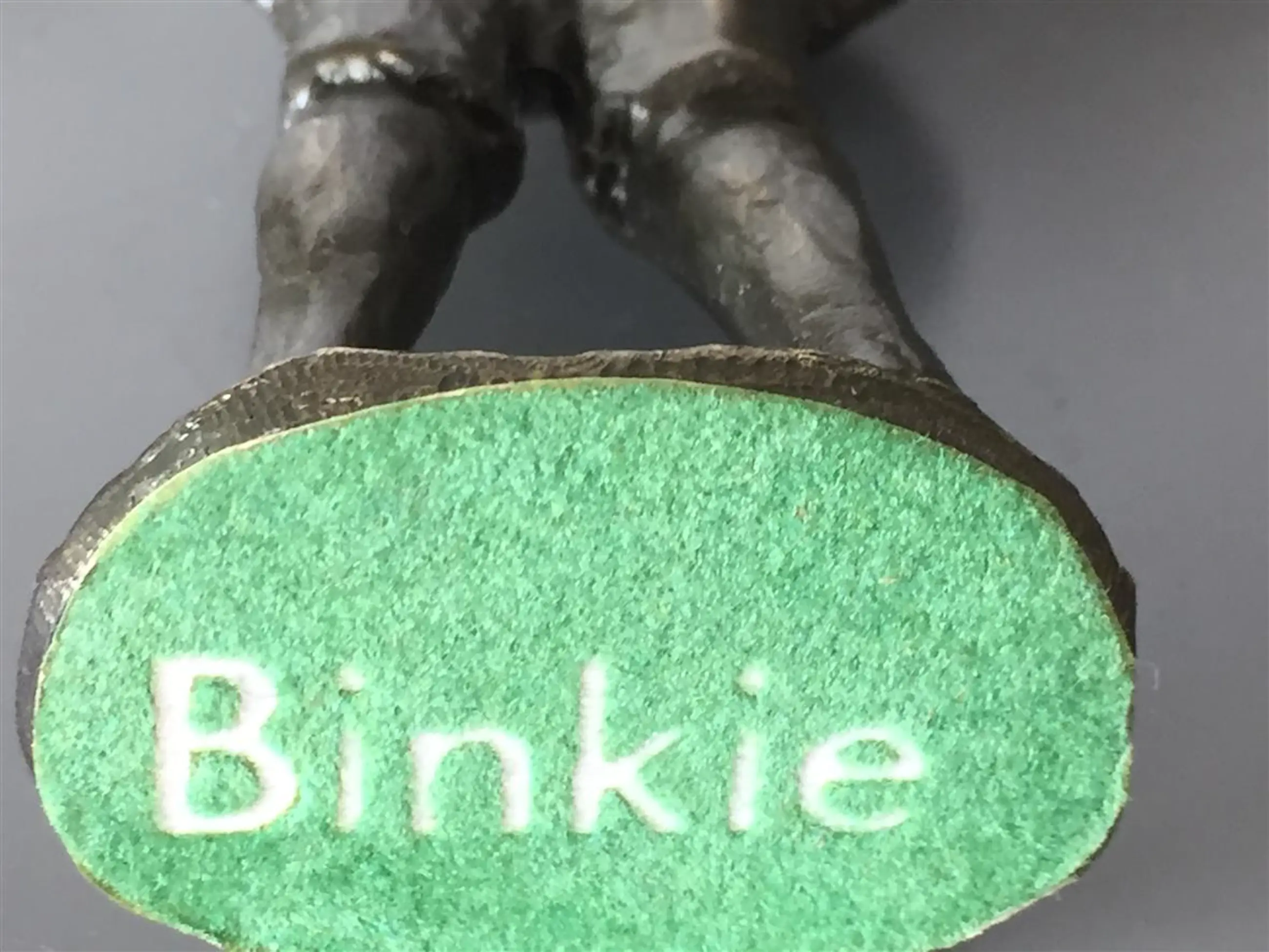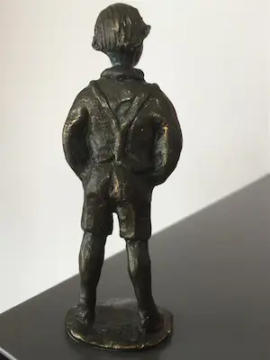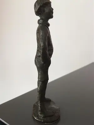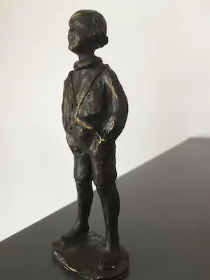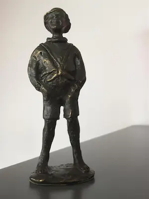 Bronzen beeldje van een Stoere jongen. Het gaat om "Binkie" dat in opdracht gemaakt is van de Stichting Vrienden van het Sophia kinderziekenhuis.