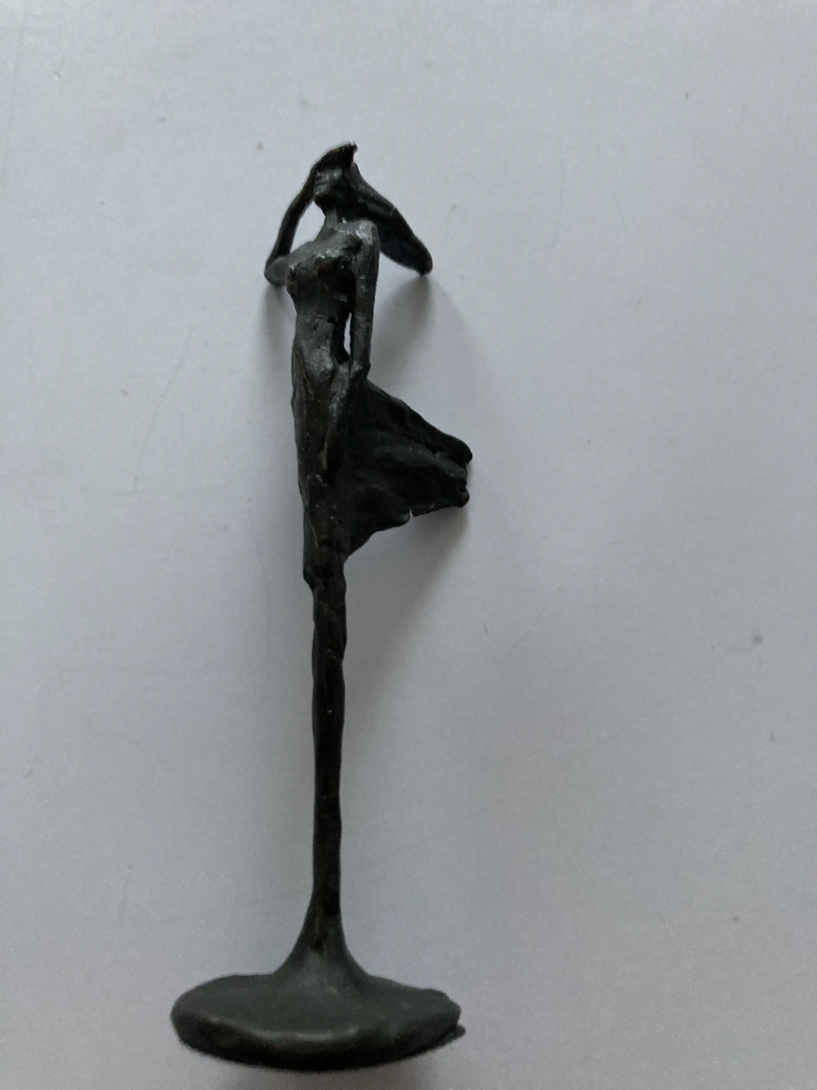 Fraai en gedetailleerd uitgevoerde sculptuur van een vrouw op de uitkijk. Op de voet gesigneerd met CAN ( Corry Ammerlaan - van Niekerk. Gewicht van het beeldje is 203 gram.
