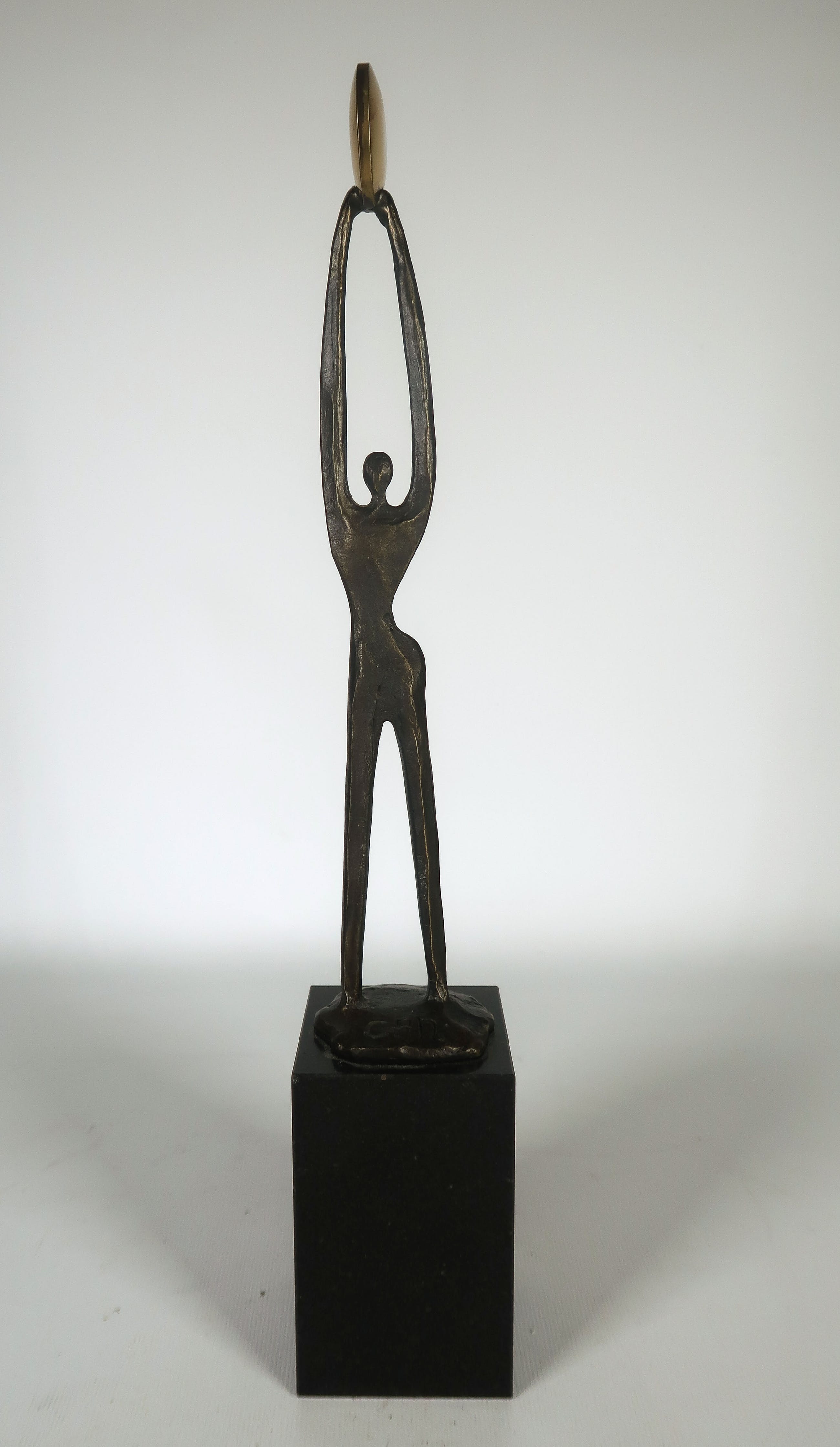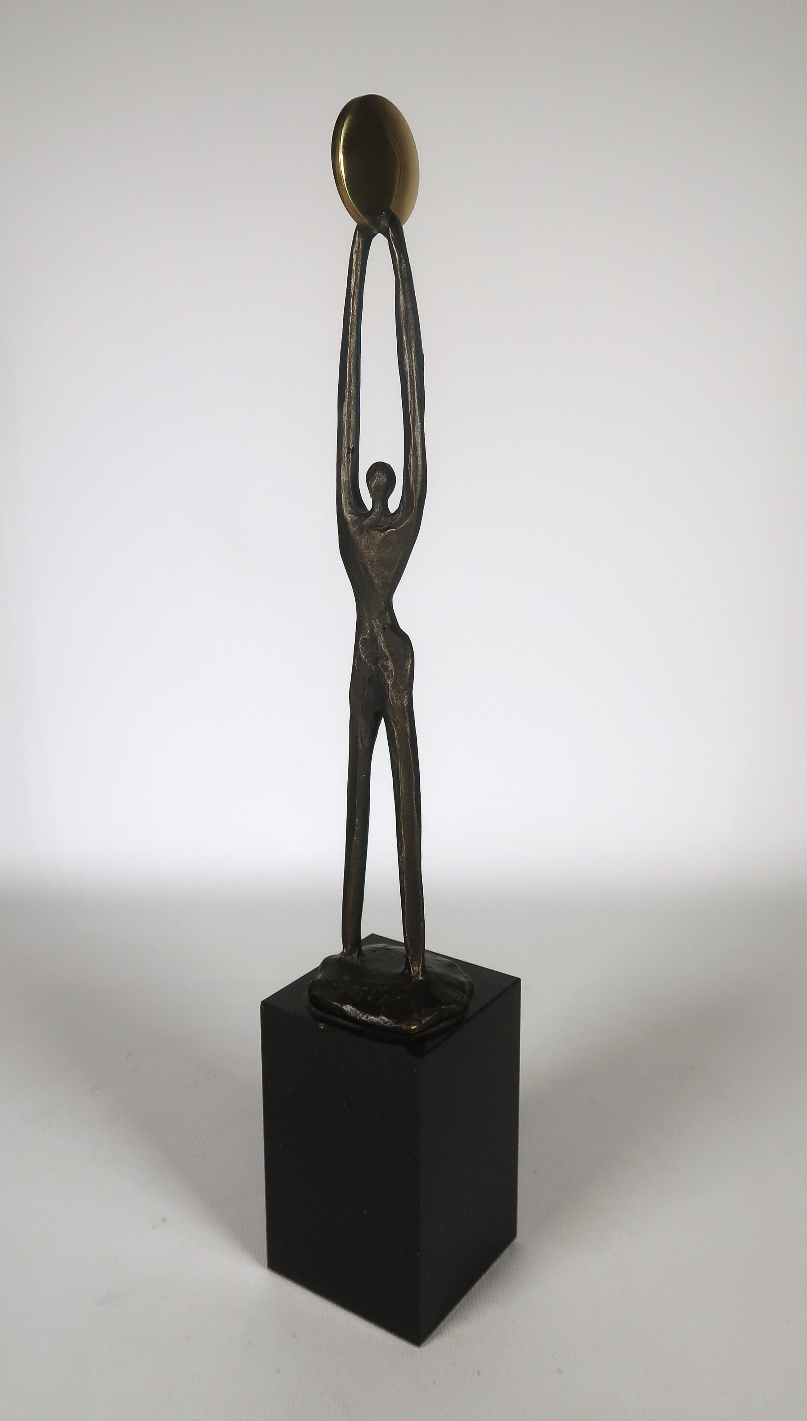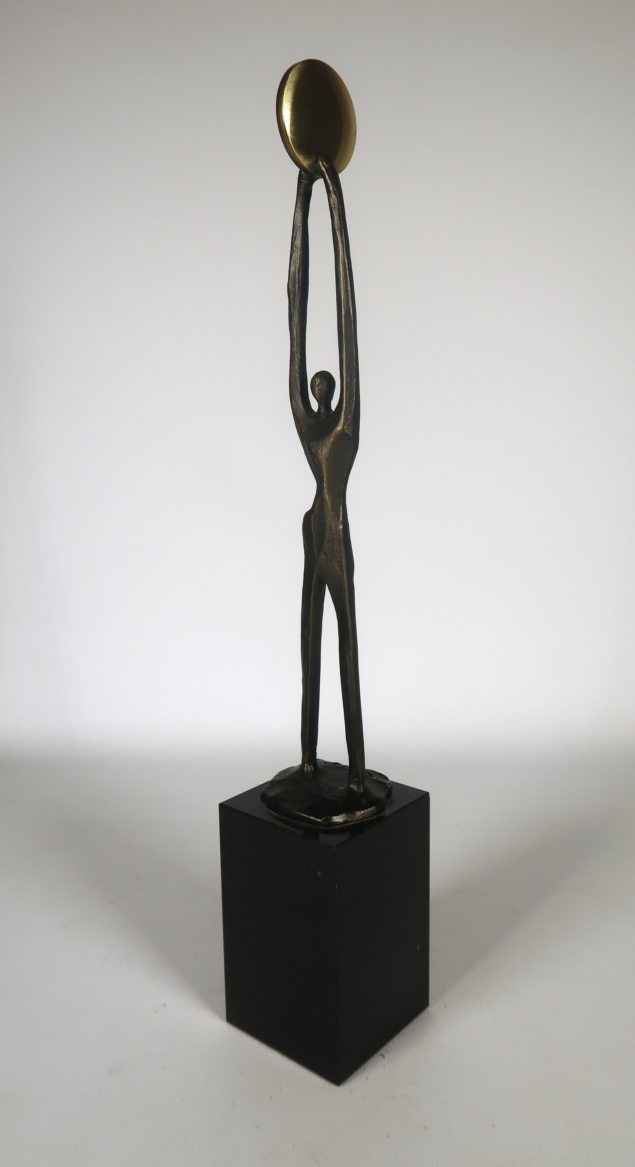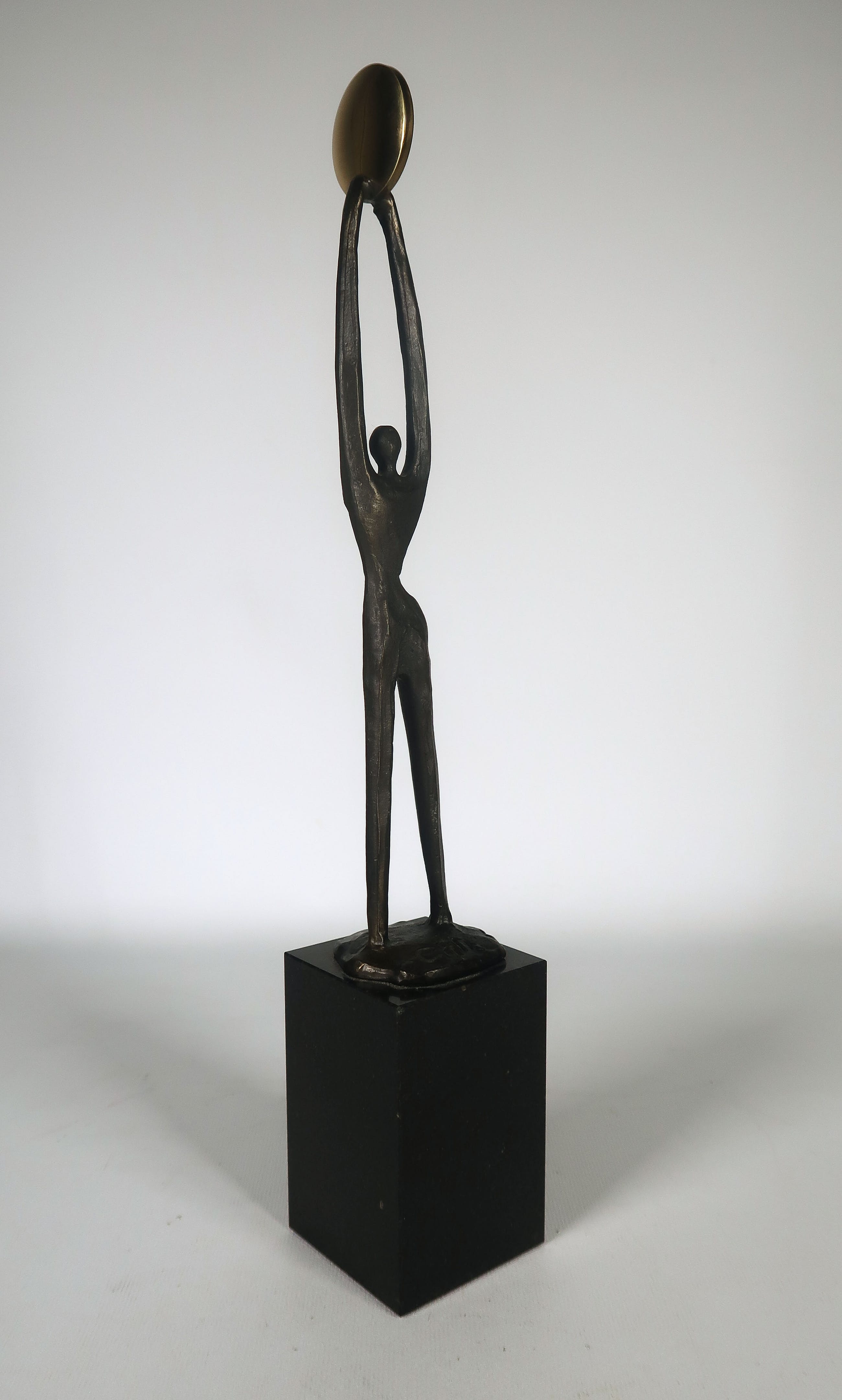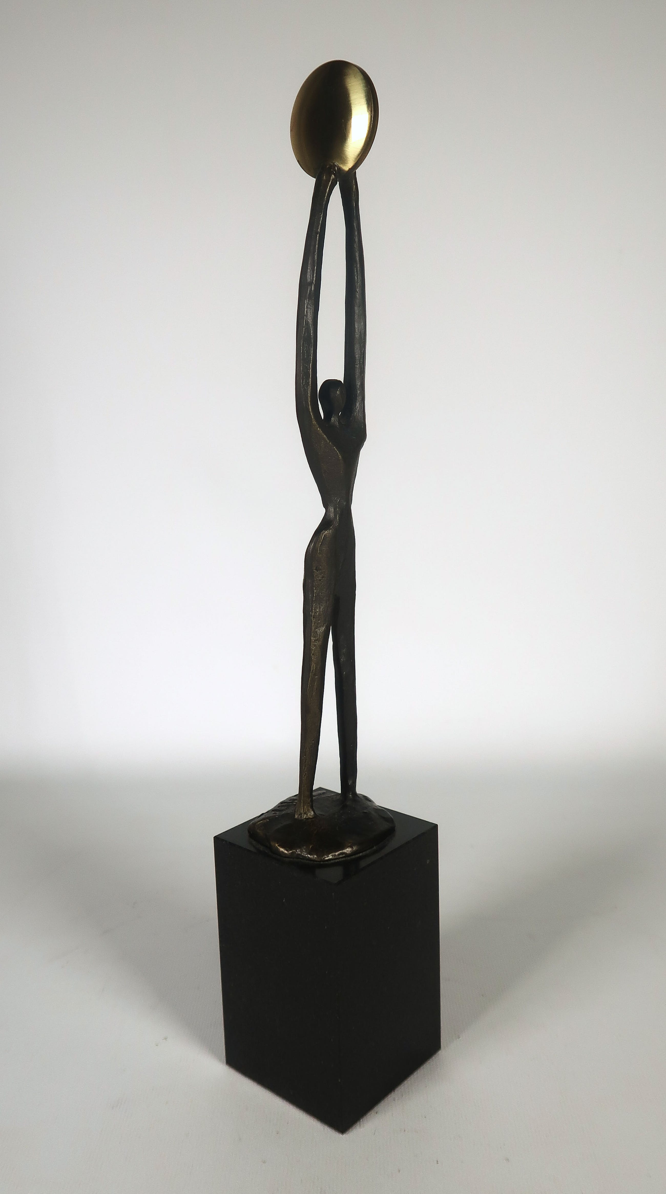 | Er zit lichte speling tussen het sculptuur en de sokkel, die is niet storend. | |||