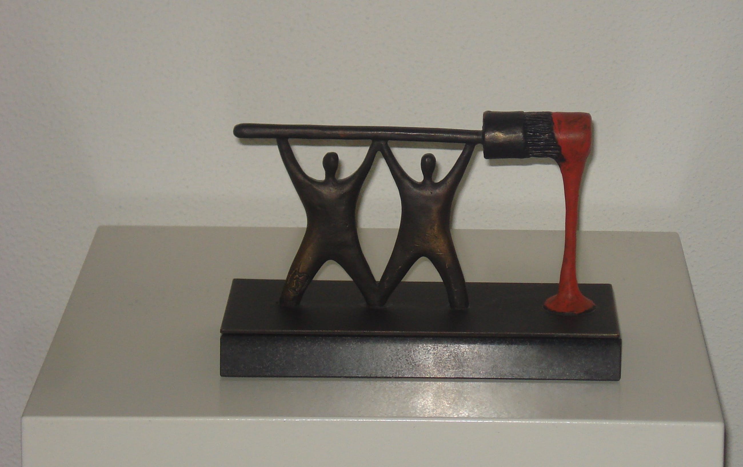 Er komen twee kunstvormen samen in dit beeld; beeldhouwwerk en de schilderkunst. Zeer apart!