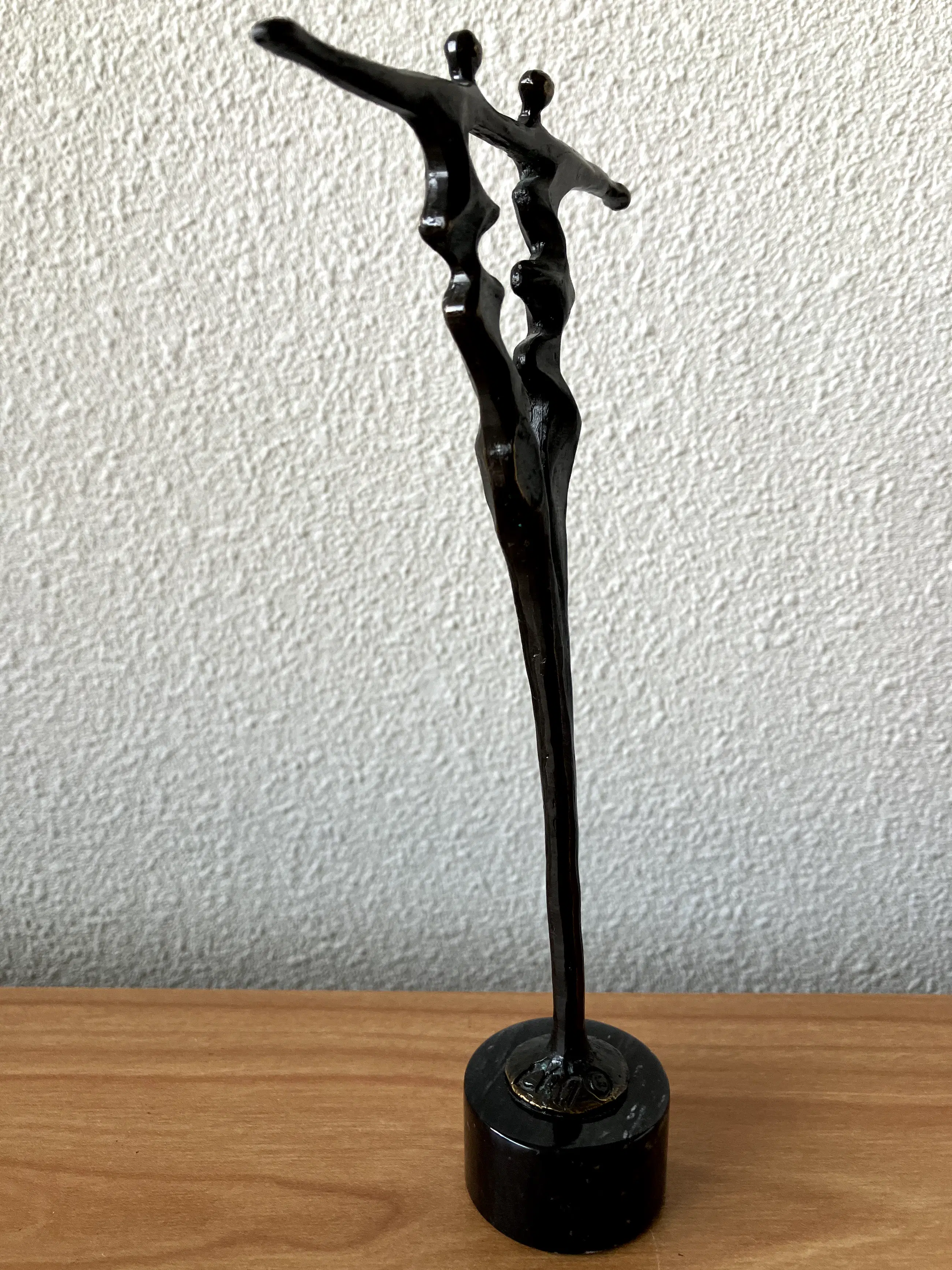 Staat op een zwart marmeren voetje en is totaal 18 cm hoog.