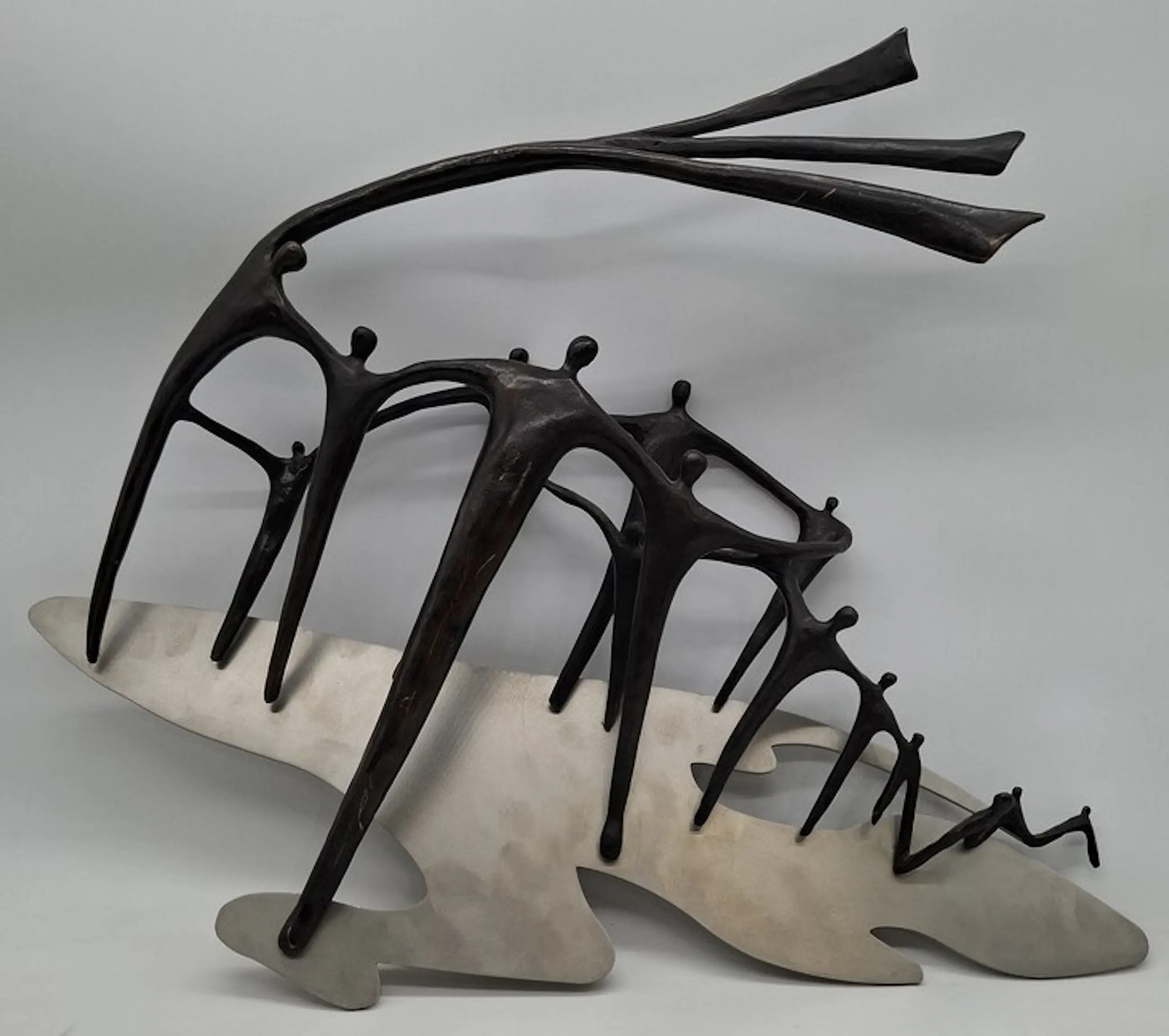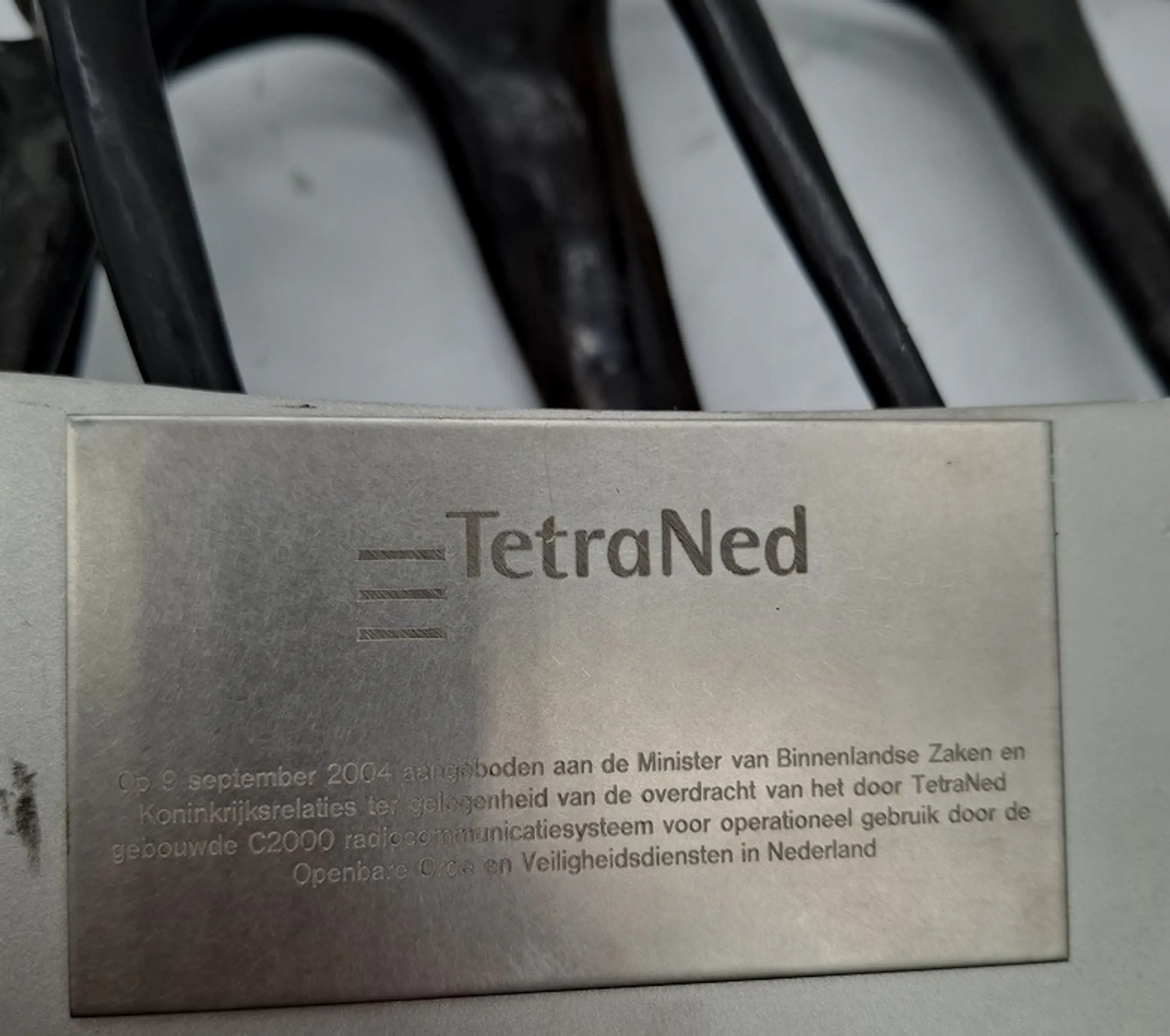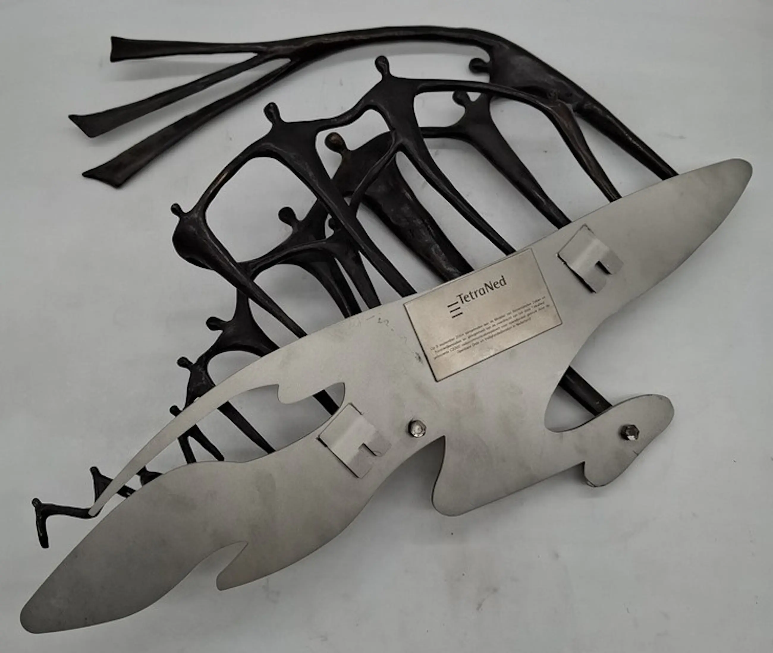 Bronzen sculptuur van Corry Ammerlaan. Brons in combinatie met rvs. Jaar: 2004. Uitgegeven t.g.v overdracht van het C2000-radio communicatie systeem door TetraNed. Ontvanger: Ministerie van binnenlandse zaken en konings relaties. Afmetingen beeld: H50 x b58 x d8cm. gewicht: 5kg. Het beeld is niet gesigneerd door de kunstenares.