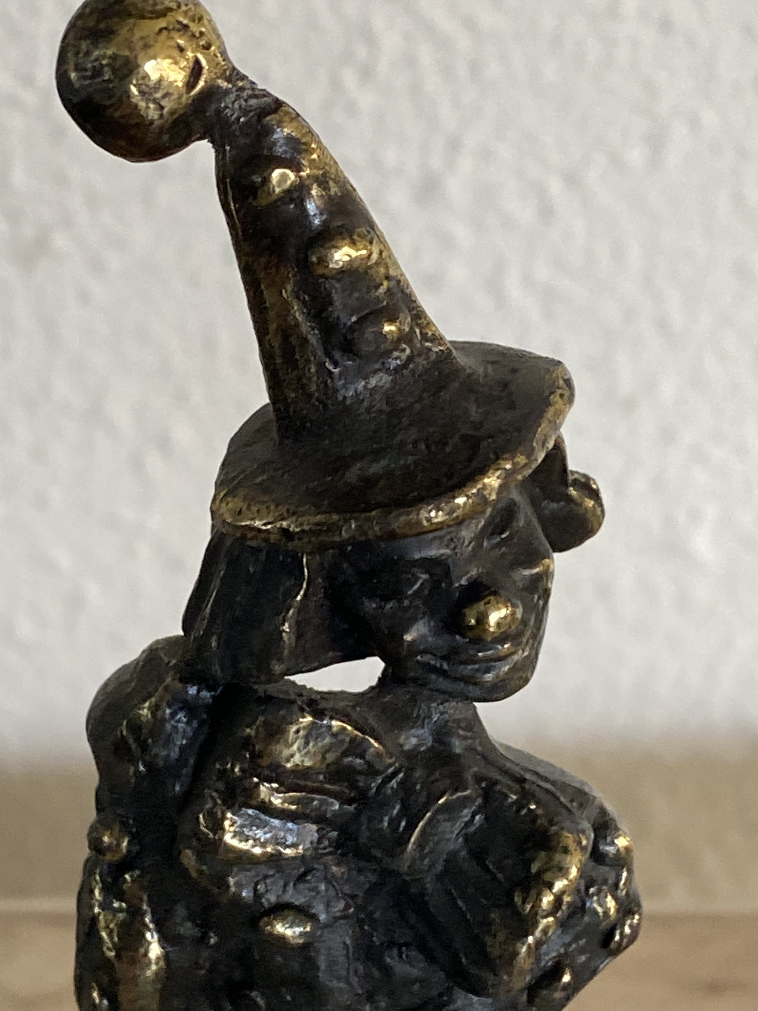 2 beeldjes van Corry Ammerlaan. De Clown 16,5 cm en “ samen naar de top” 13,5 cm. In uitstekende conditie.