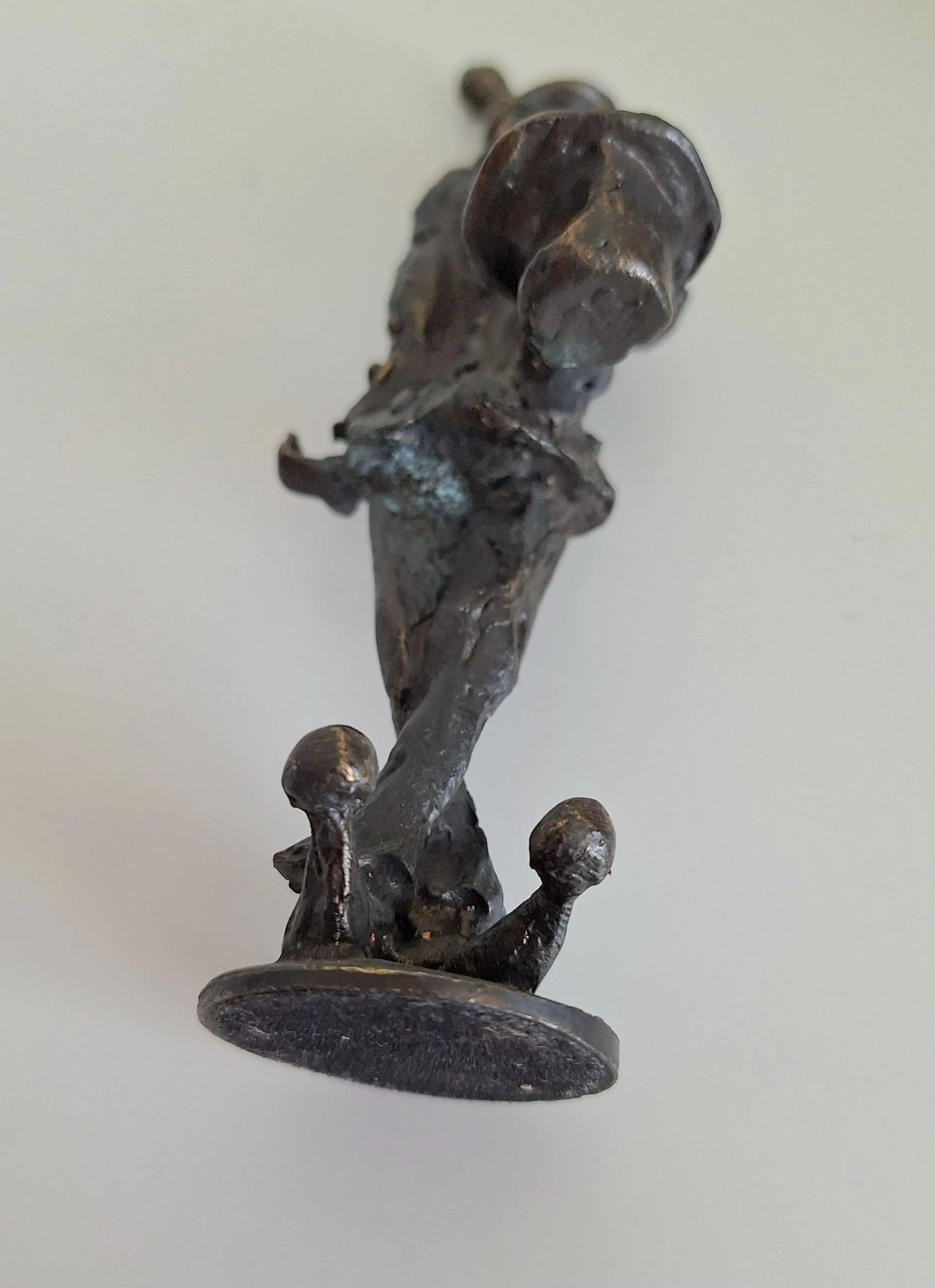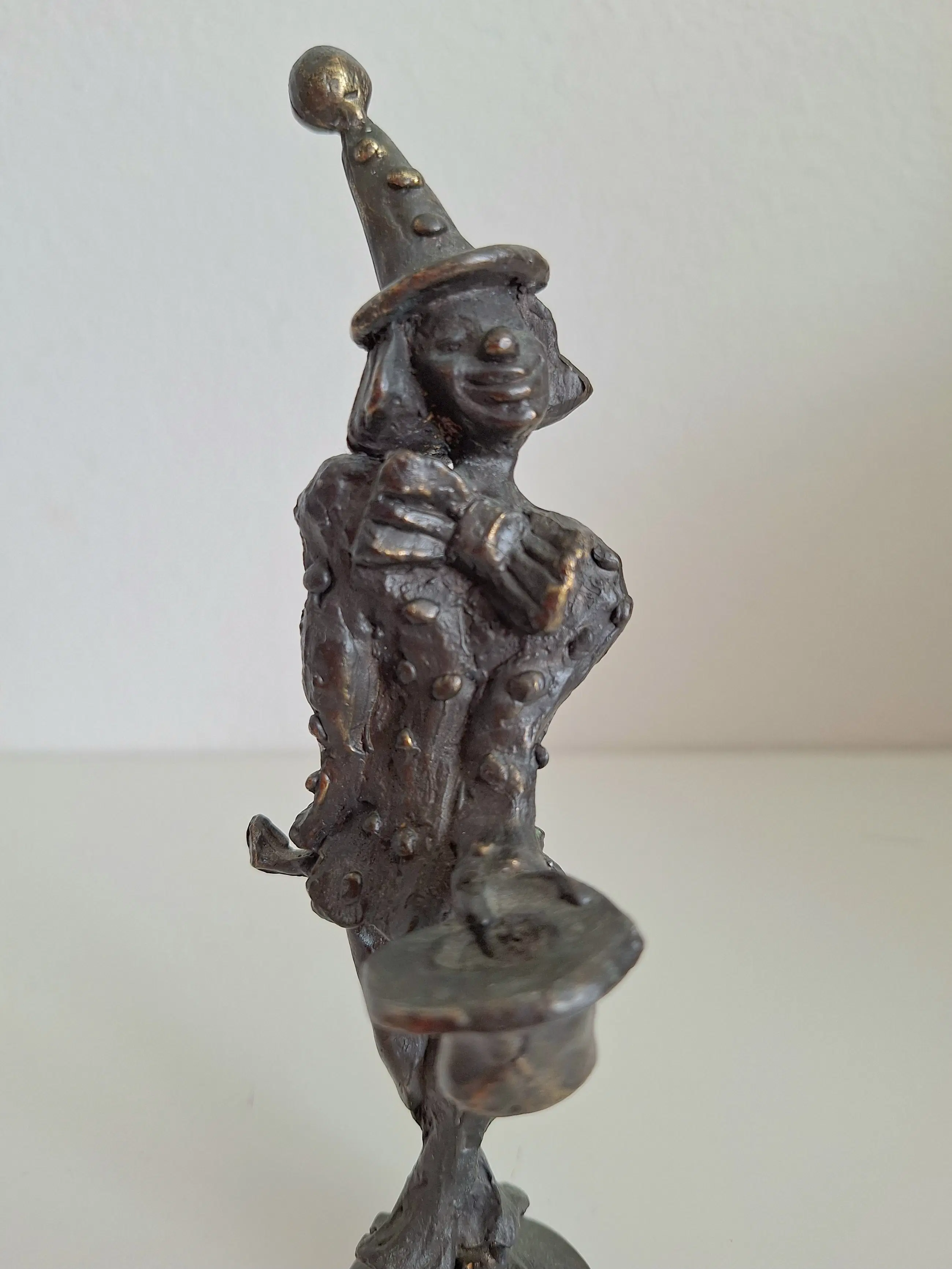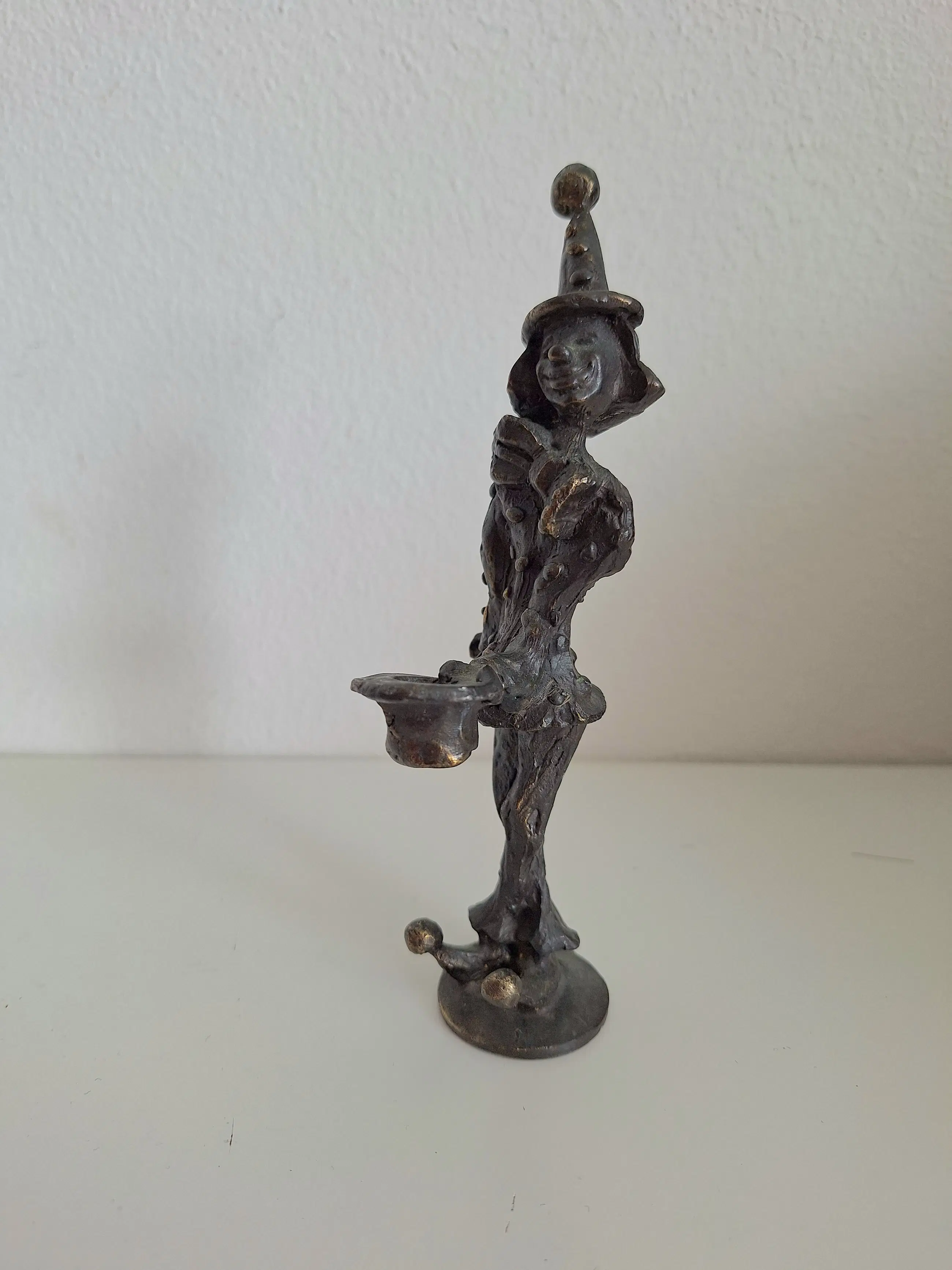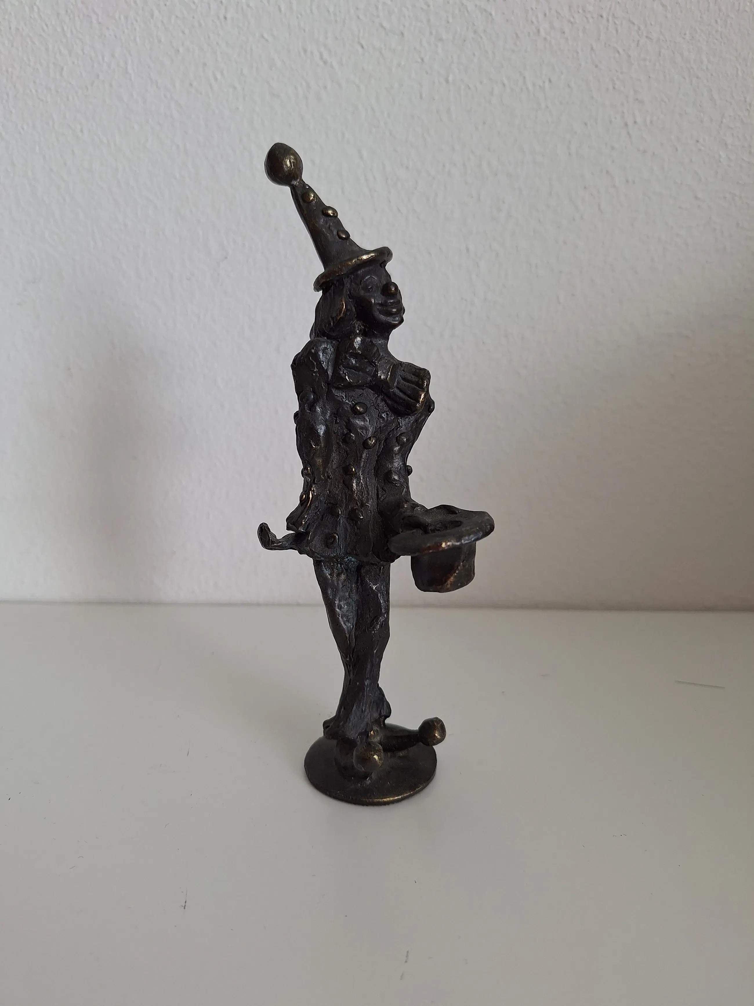 Het beeldje van de clown met de hoed in de hand (en op het hoofd) is in uitstekende staat.