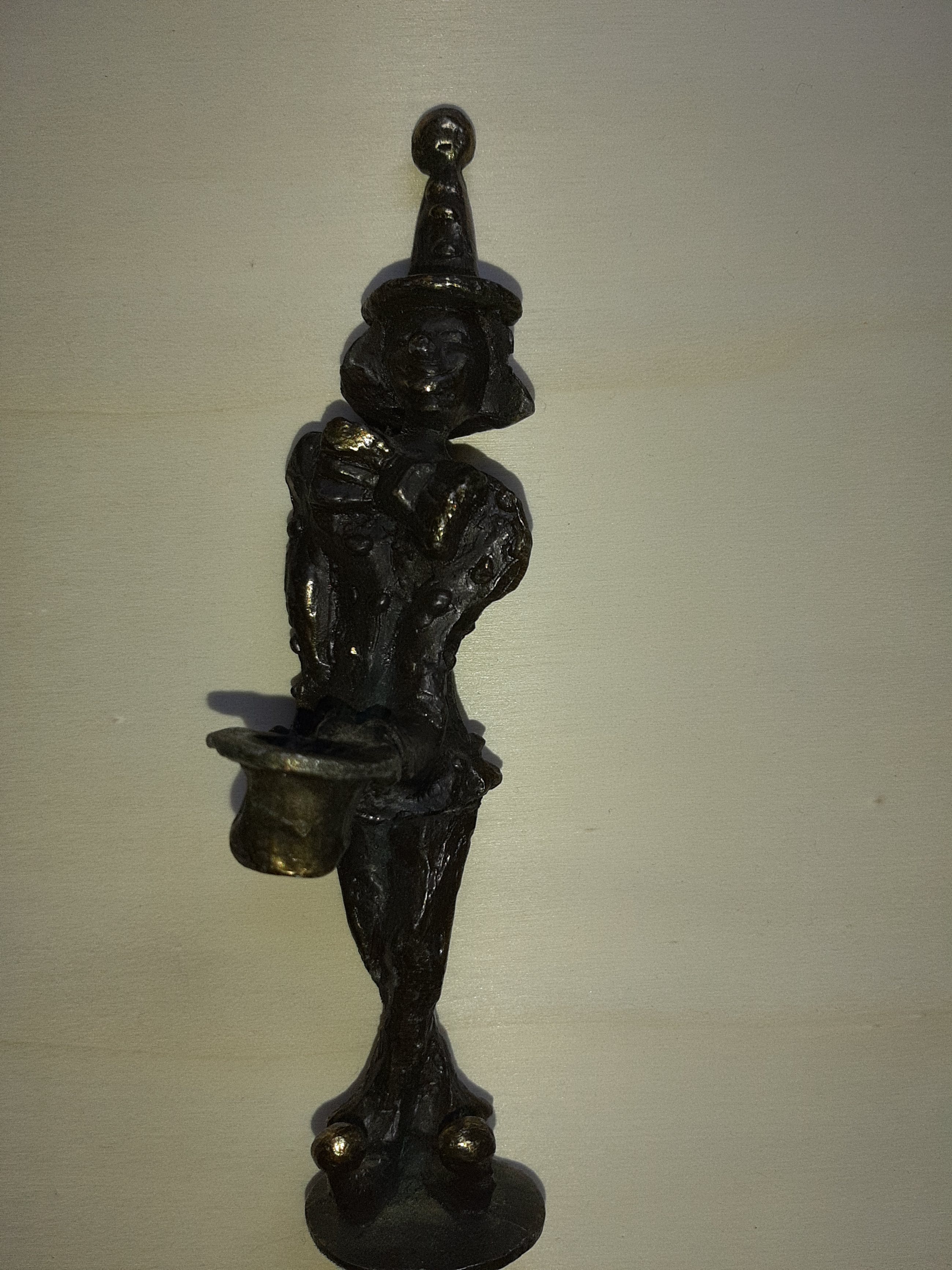 Prachtig beeldje van een clown die met de hoed rondgaat om geld te verzamelen. Het beeldje is in zeer goede staat.