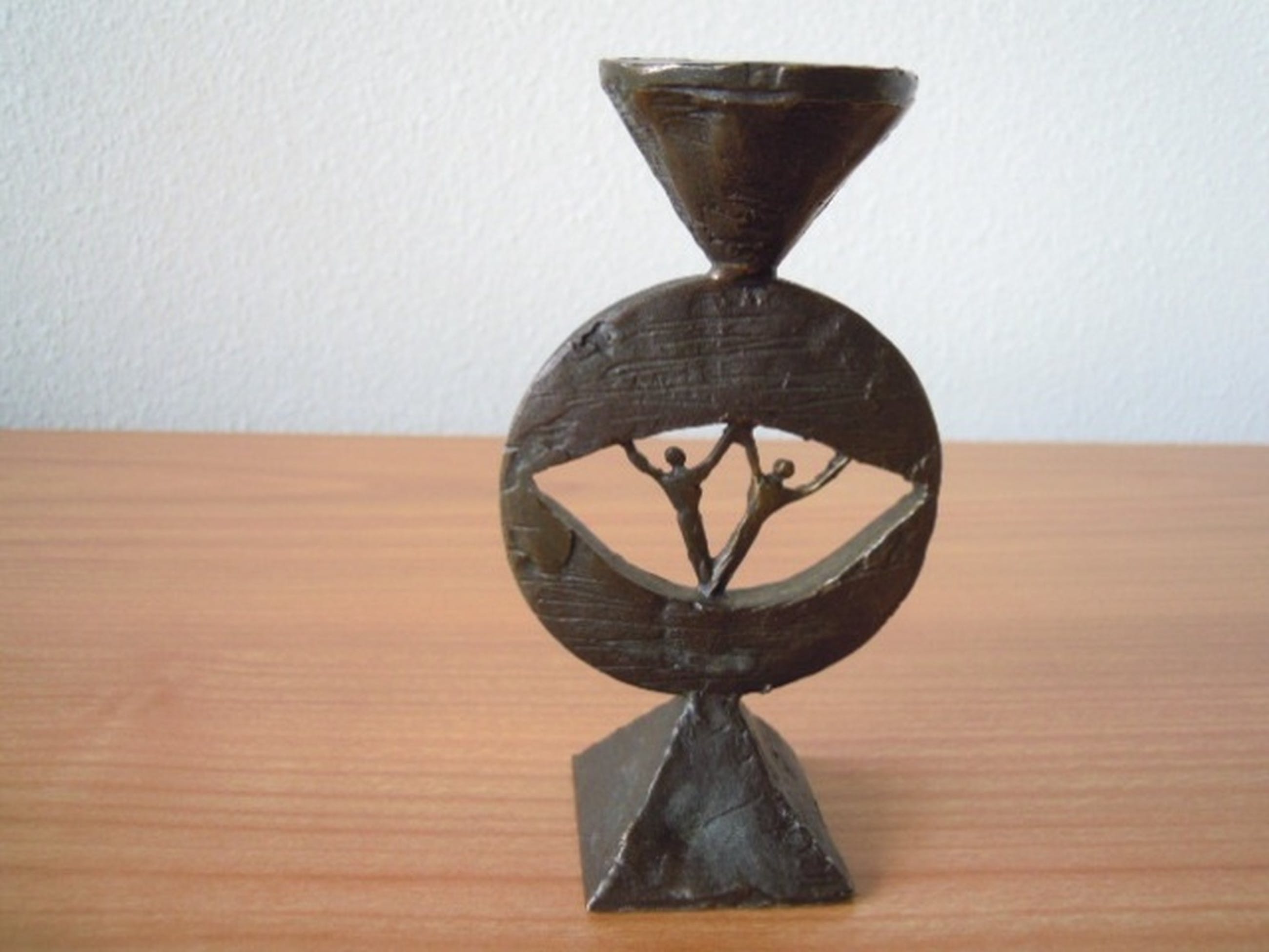 CORRY AMMERLAAN bronzen beeldje / kandelaar 12,5 cm hoog.