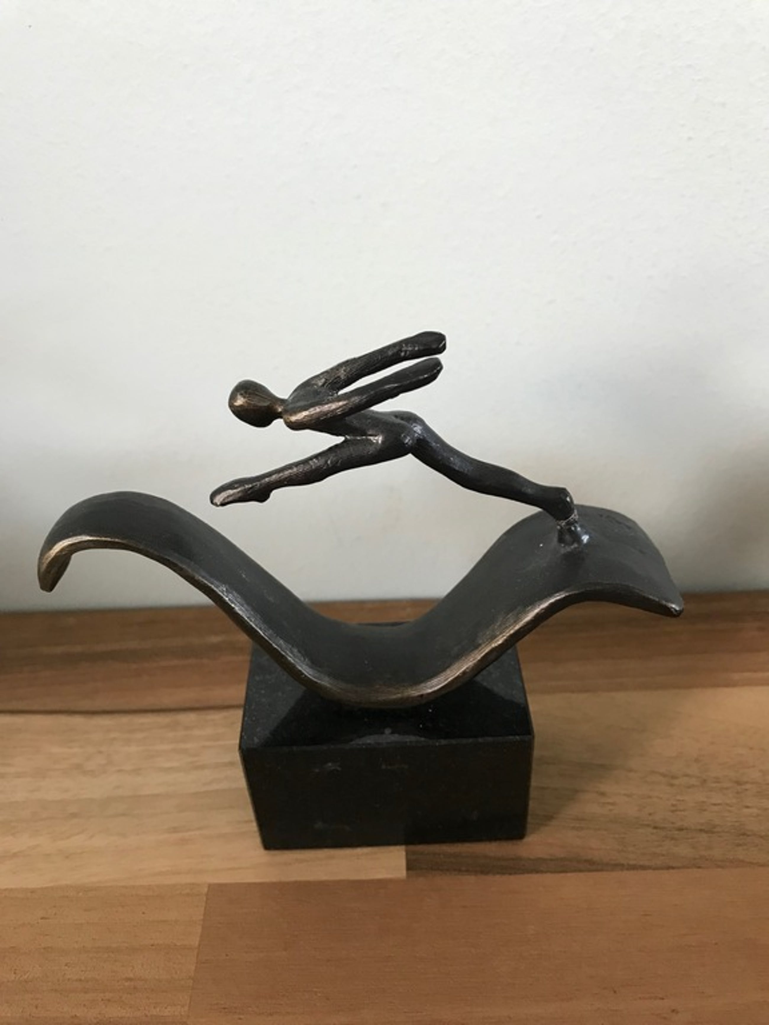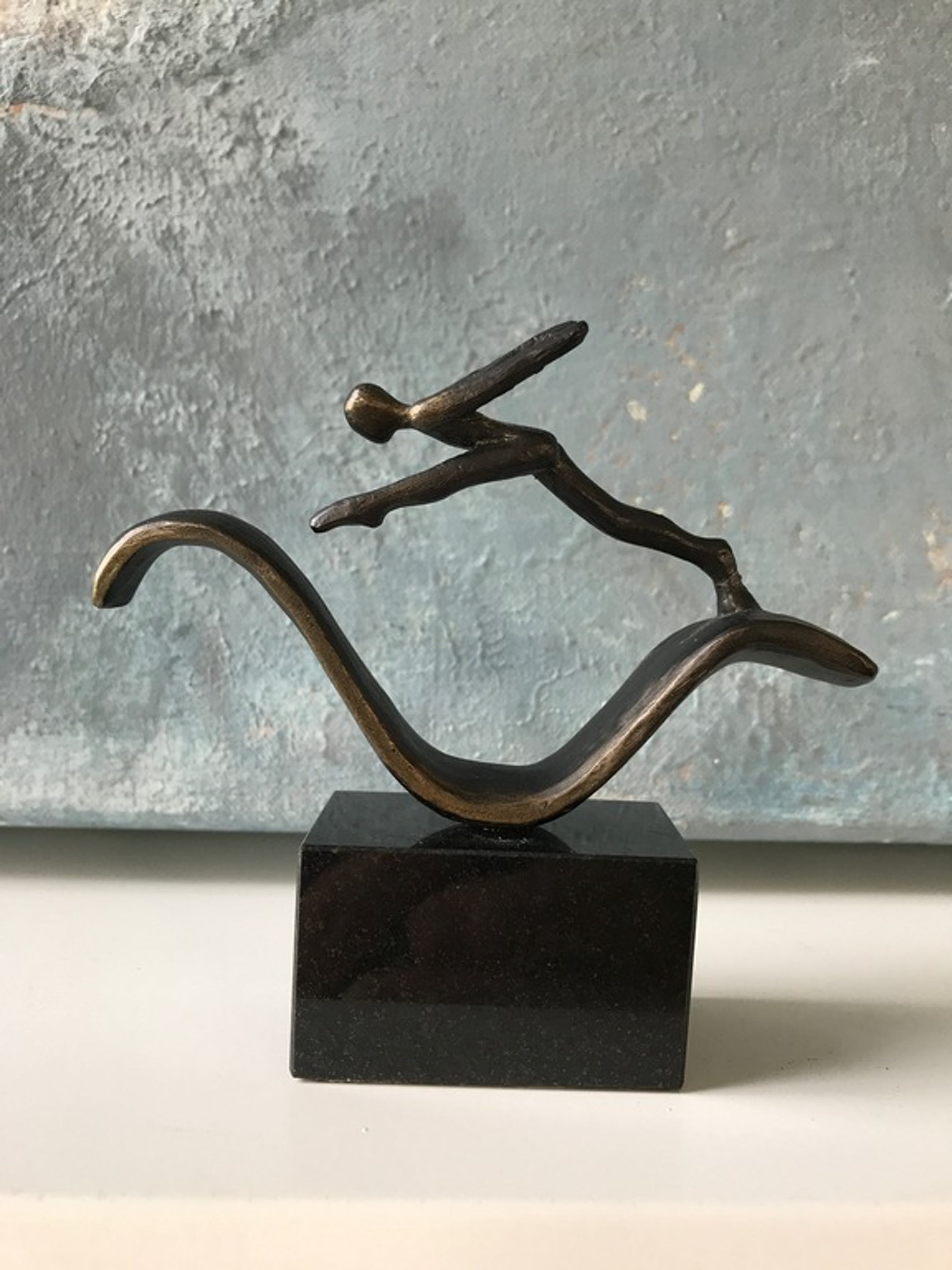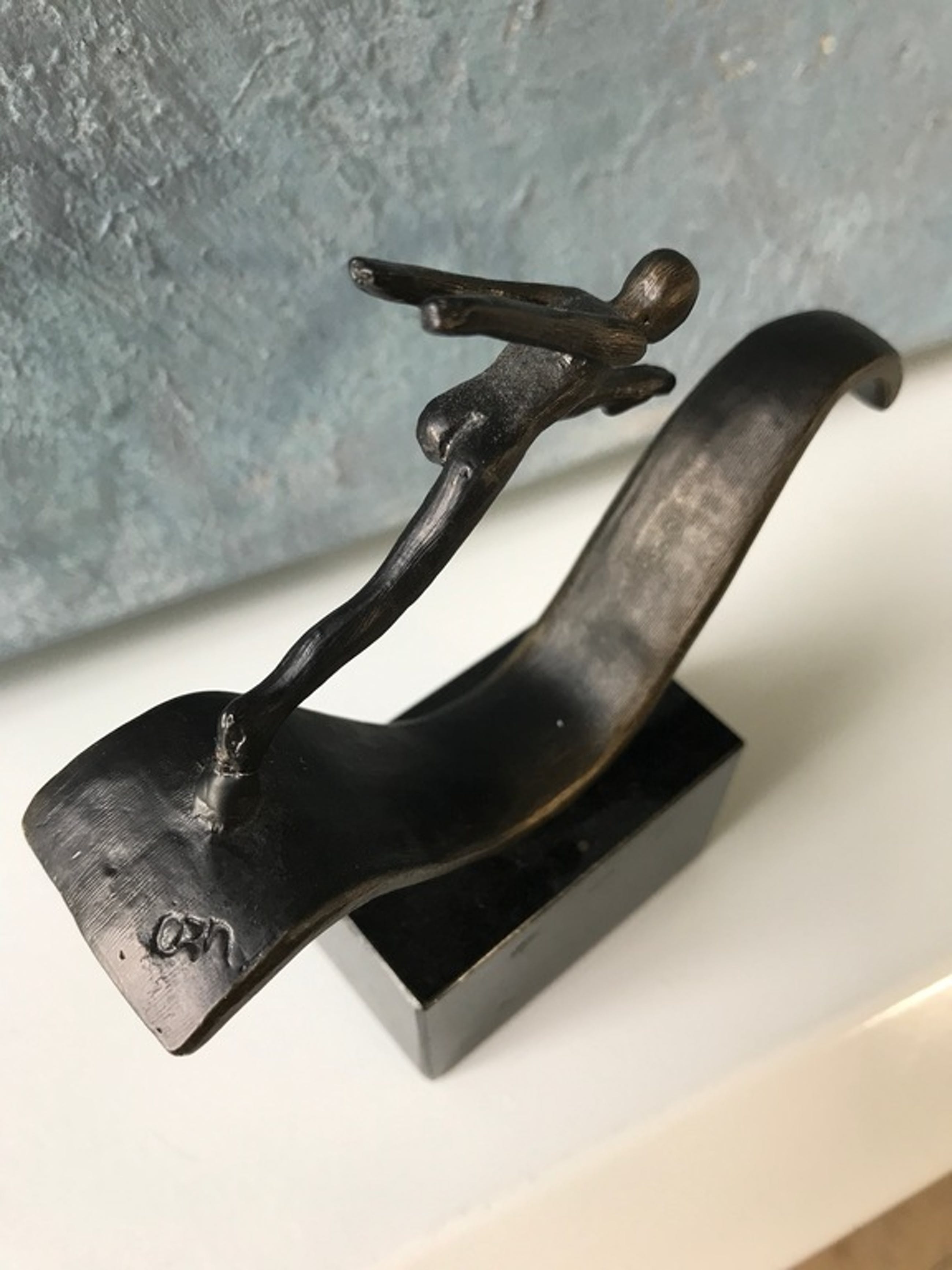 Dit is een gesigneerd verbronst beeld toegeschreven aan Corry Ammerlaan van Niekerk van ongeveer 10cm hoog en 10cm breed.