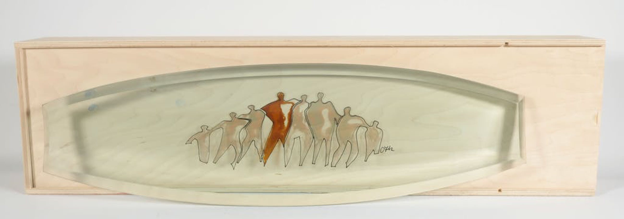Afmetingen: Schaal 21 cm x 65 cm, bewaarbox 80 cm x 10 cm
