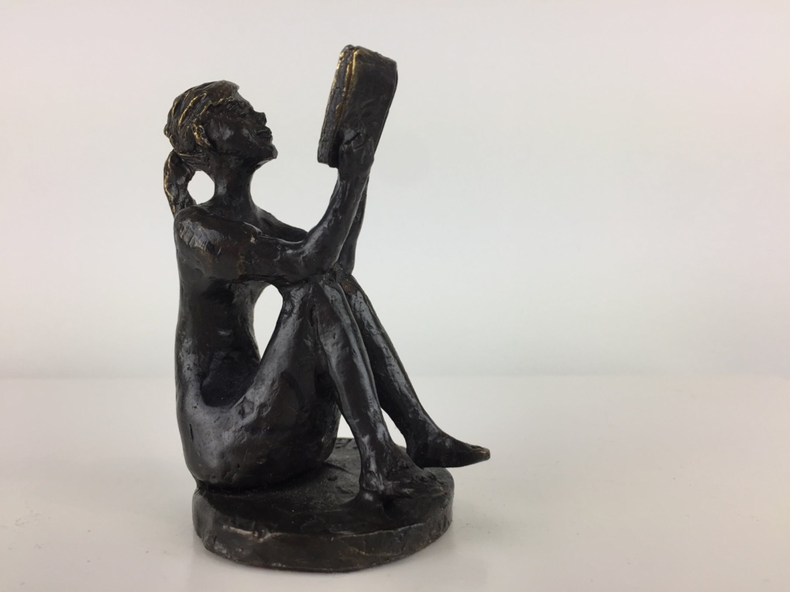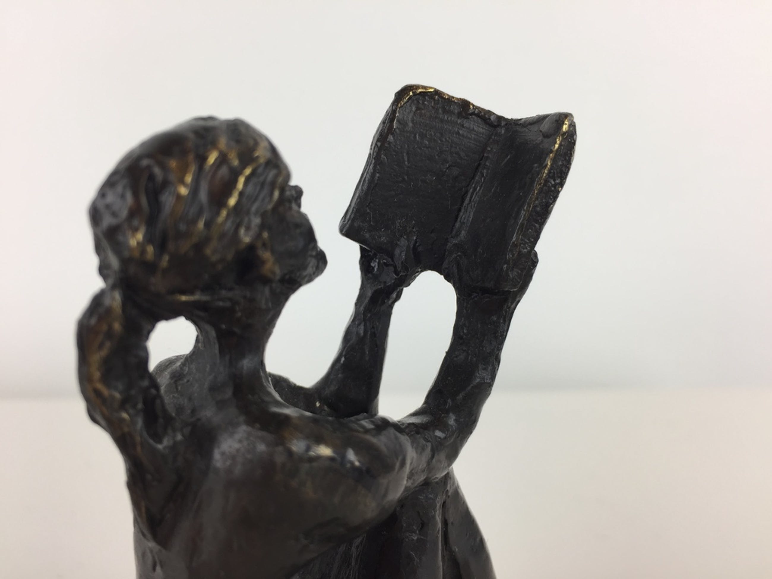 Zittend meisje wat een boek leest, getiteld Sophietje. Gemonogrammeerd met CAN.
