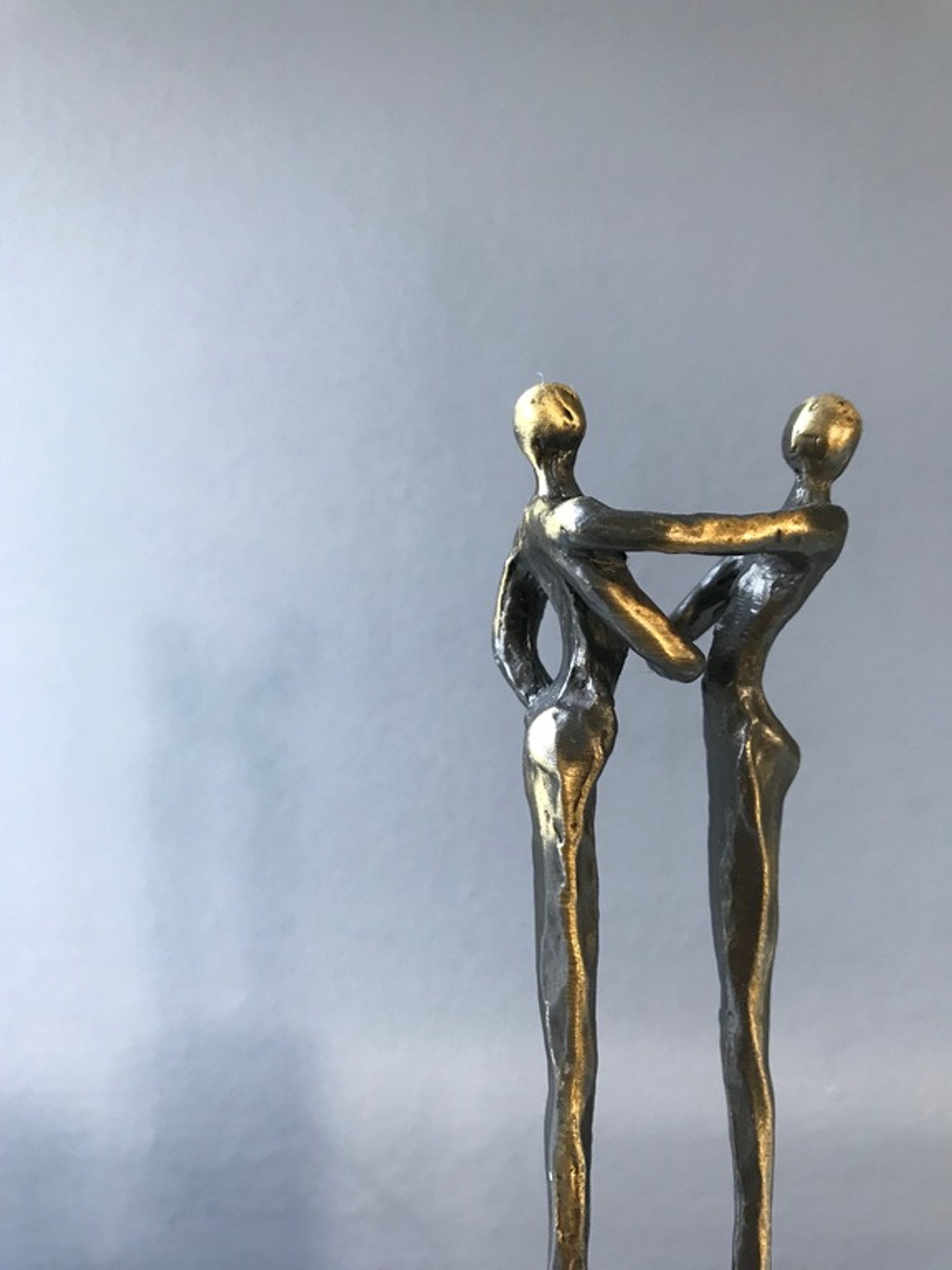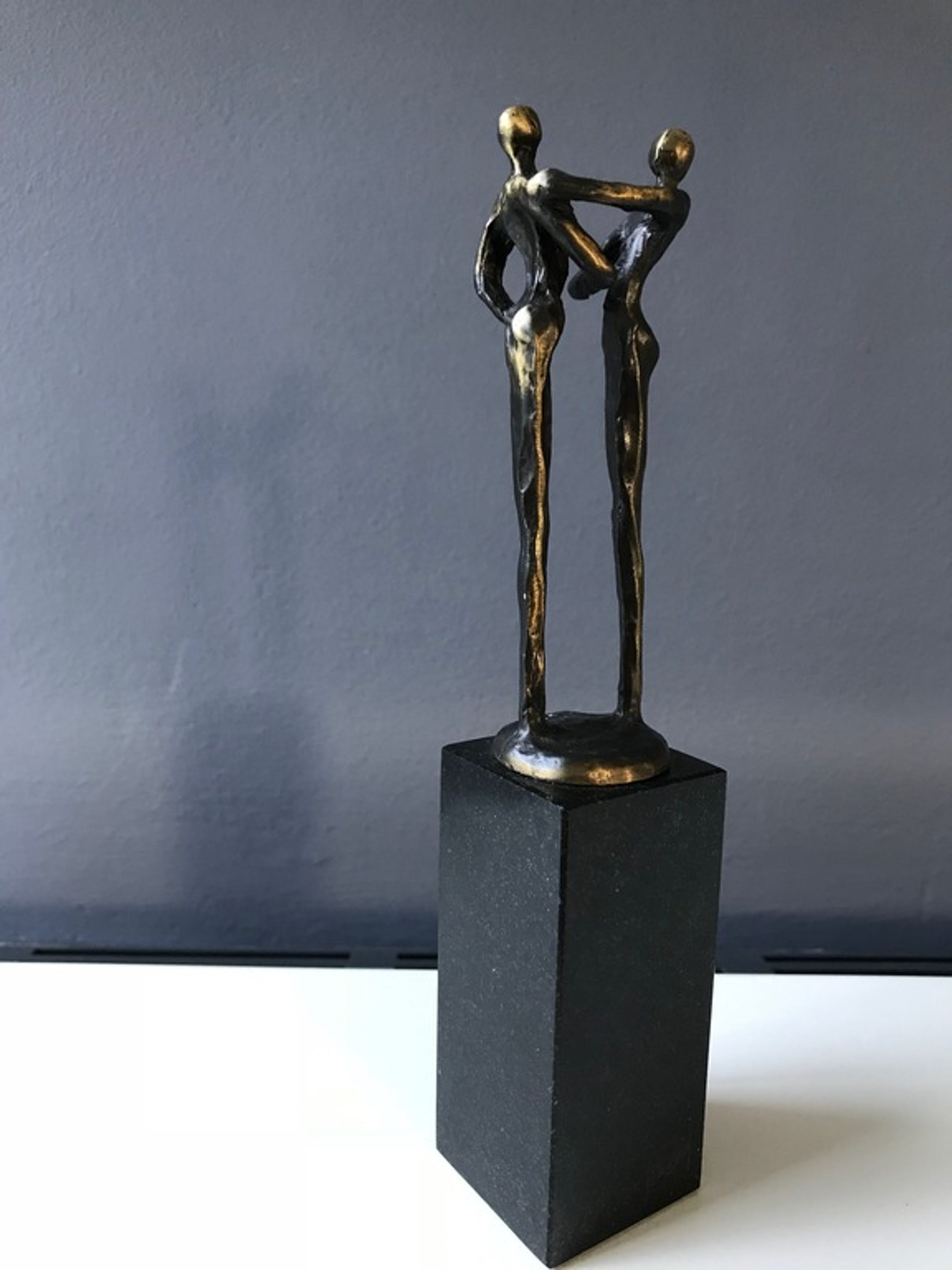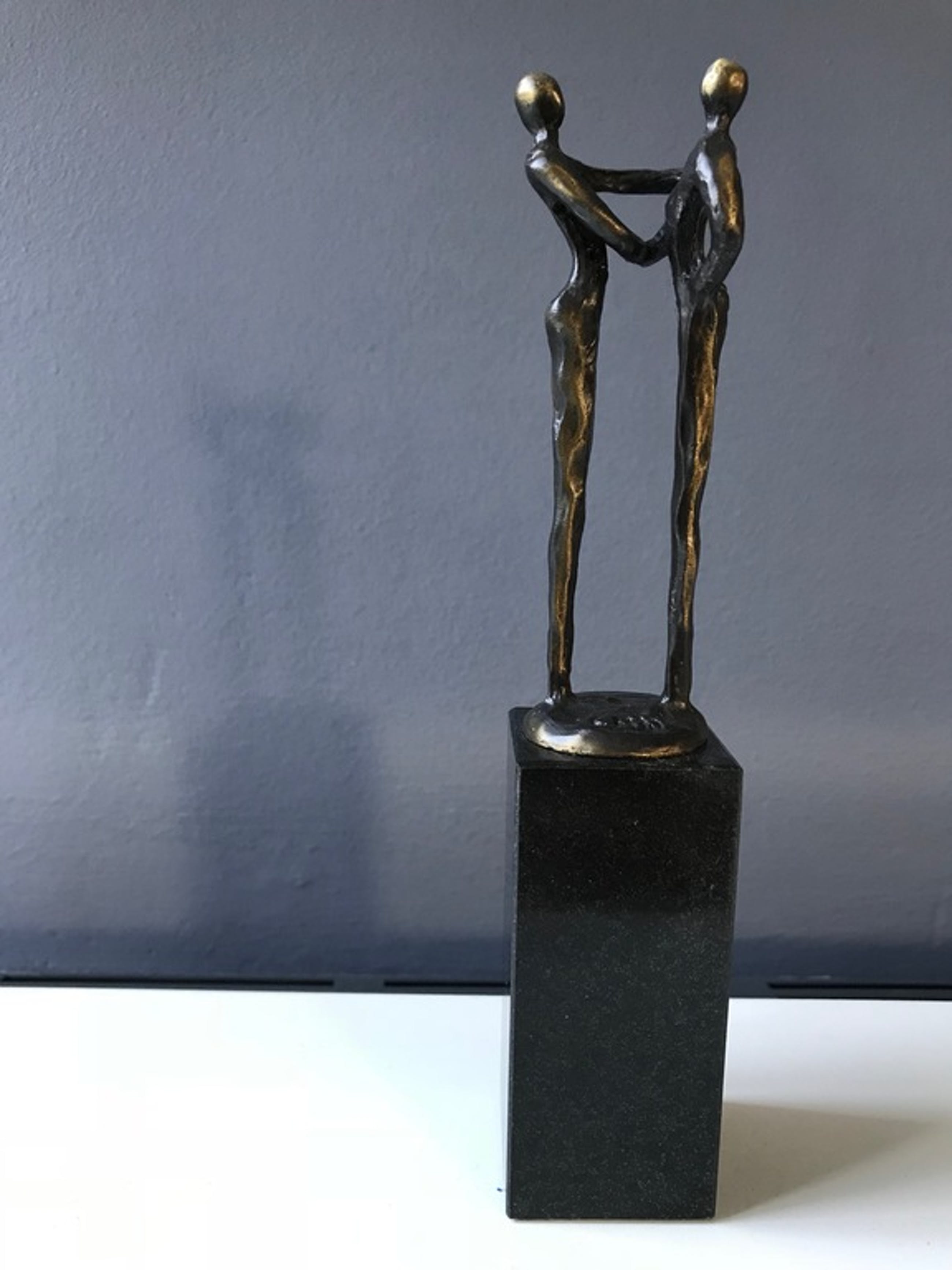 De 'Dank'- sculptuur is 18,5 cm hoog, sokkel (8cm) inbegrepen.