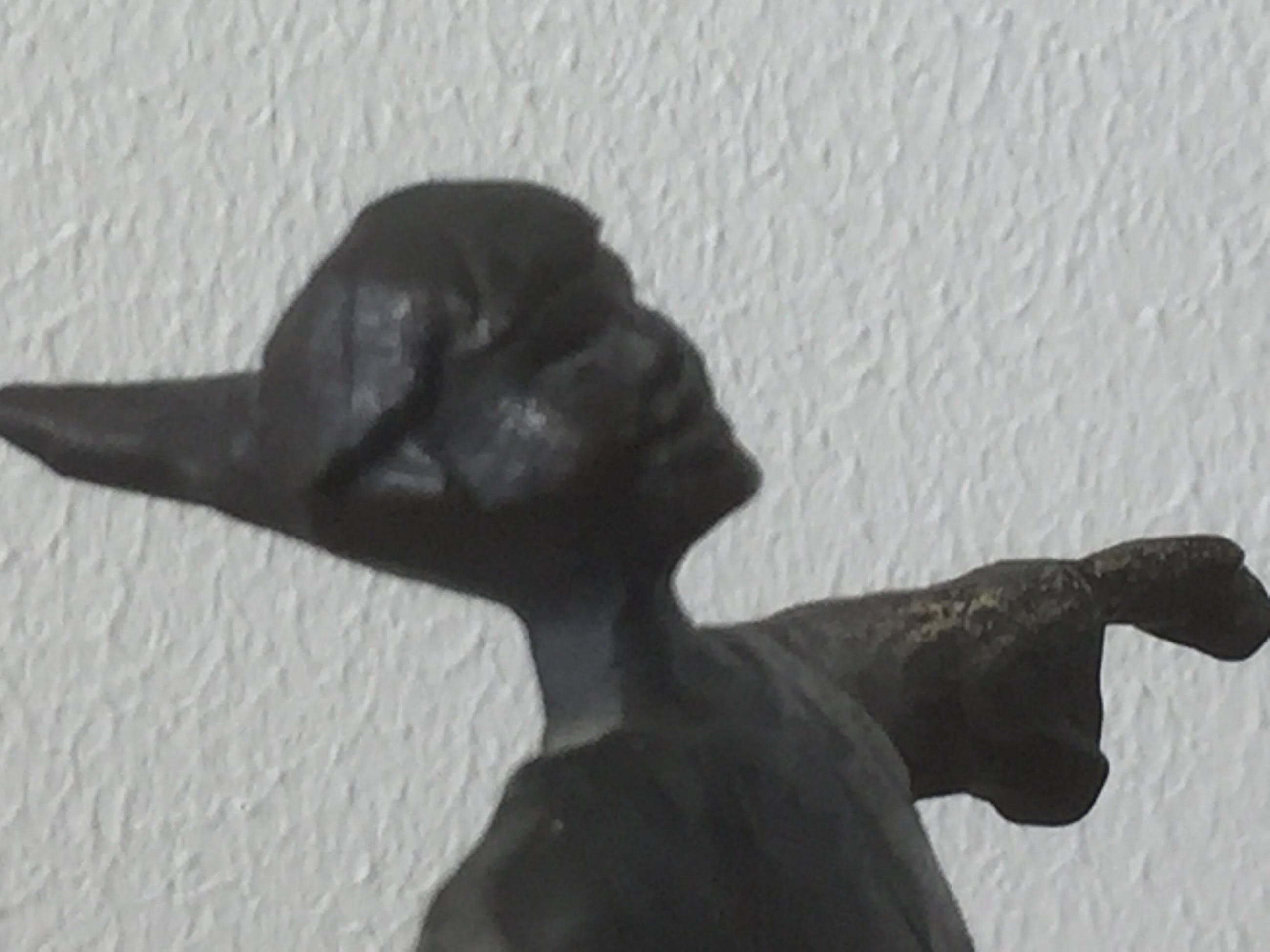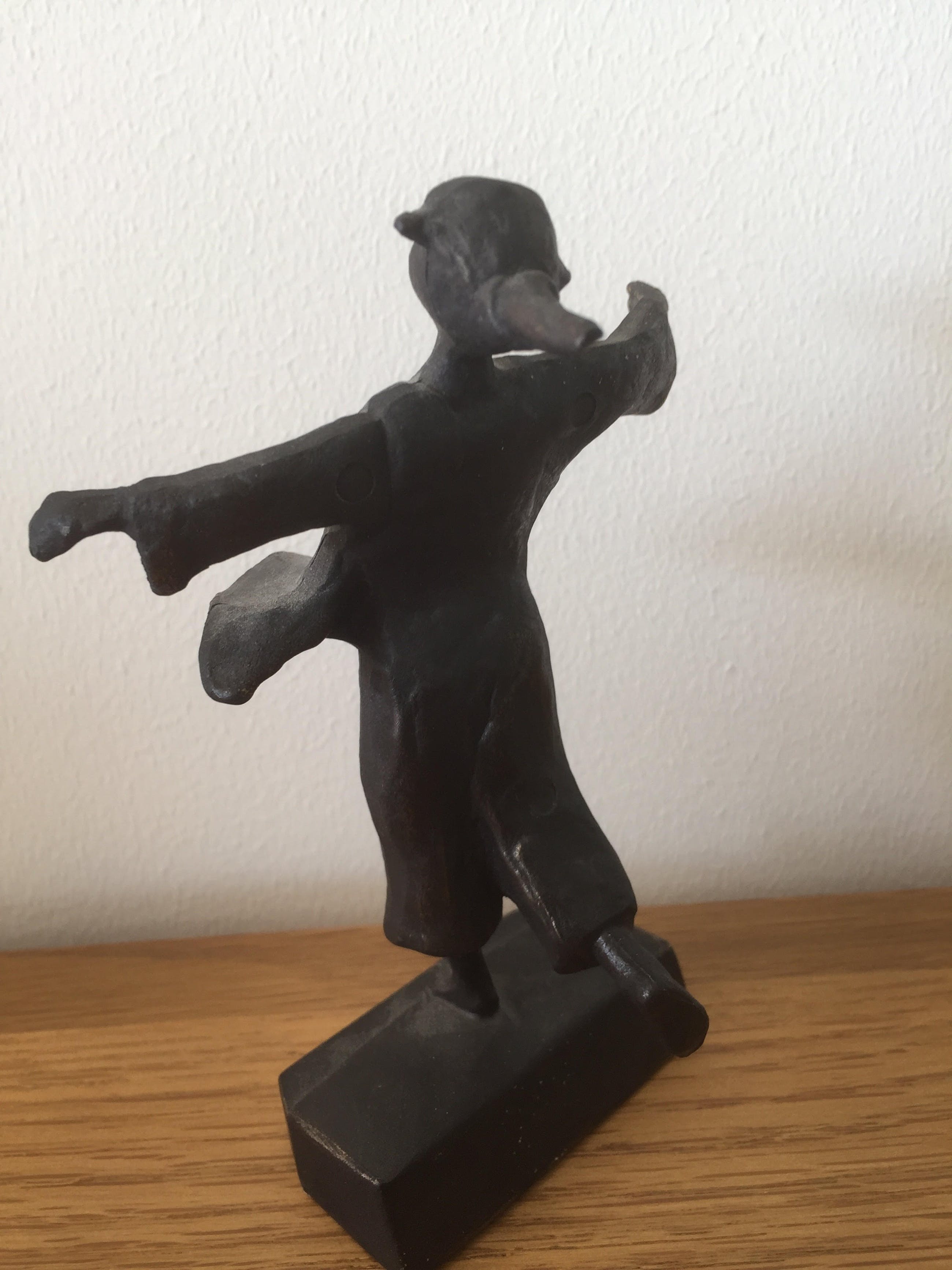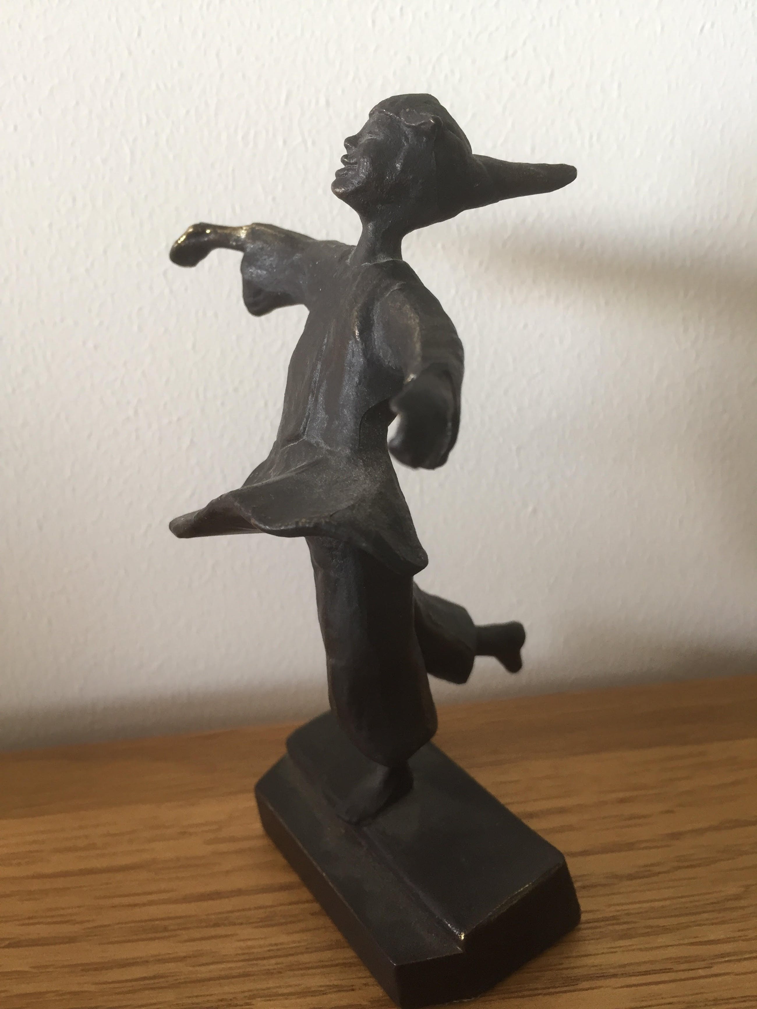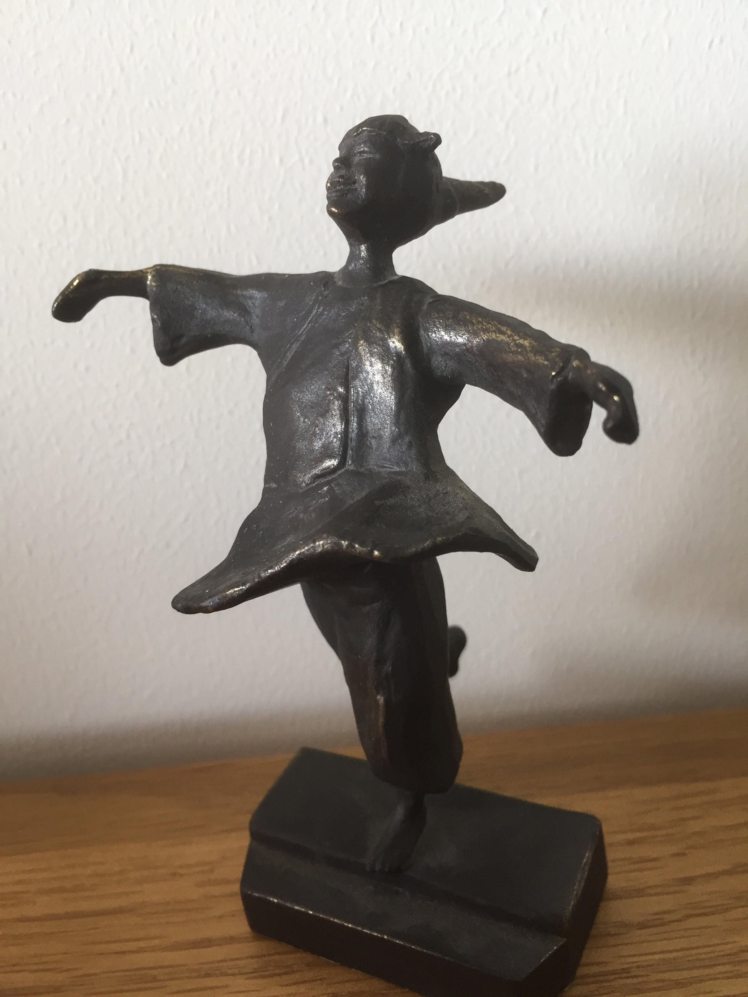Zwaar beeldje van danseres die u hartelijk tegemoet treedt vanaf een trap