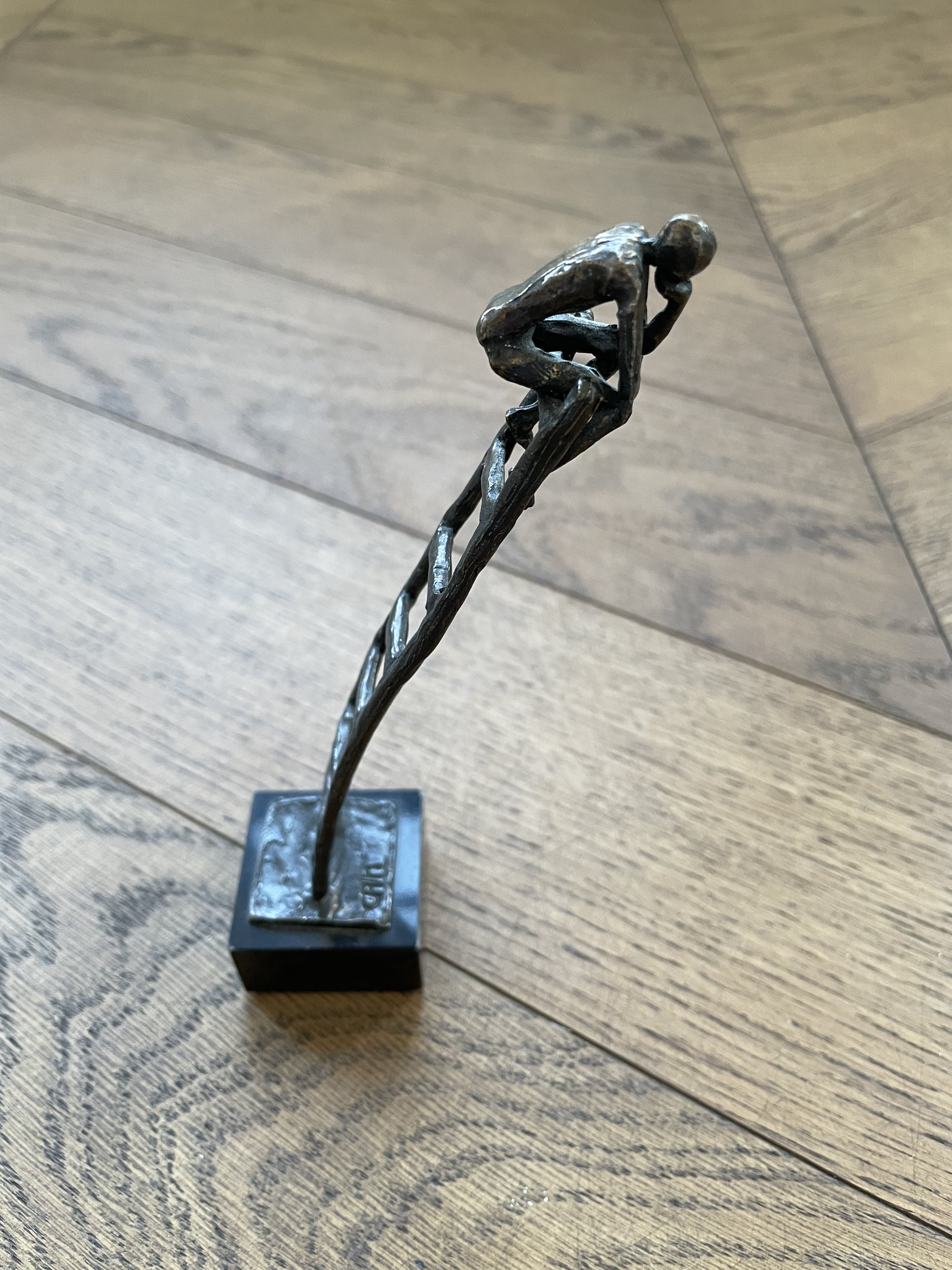 Symbolisch sculptuur van een mens in gedachten bovenop een trap. Denken op hoog niveau; het symbool voor het creatief oplossen van problemen. De denkende mens wordt vaak vergeleken met het beroemde beeld van de Franse beeldhouwer Auguste Rodin uit 1881. Er bestaan verschillende afgietsels van dit werk.
