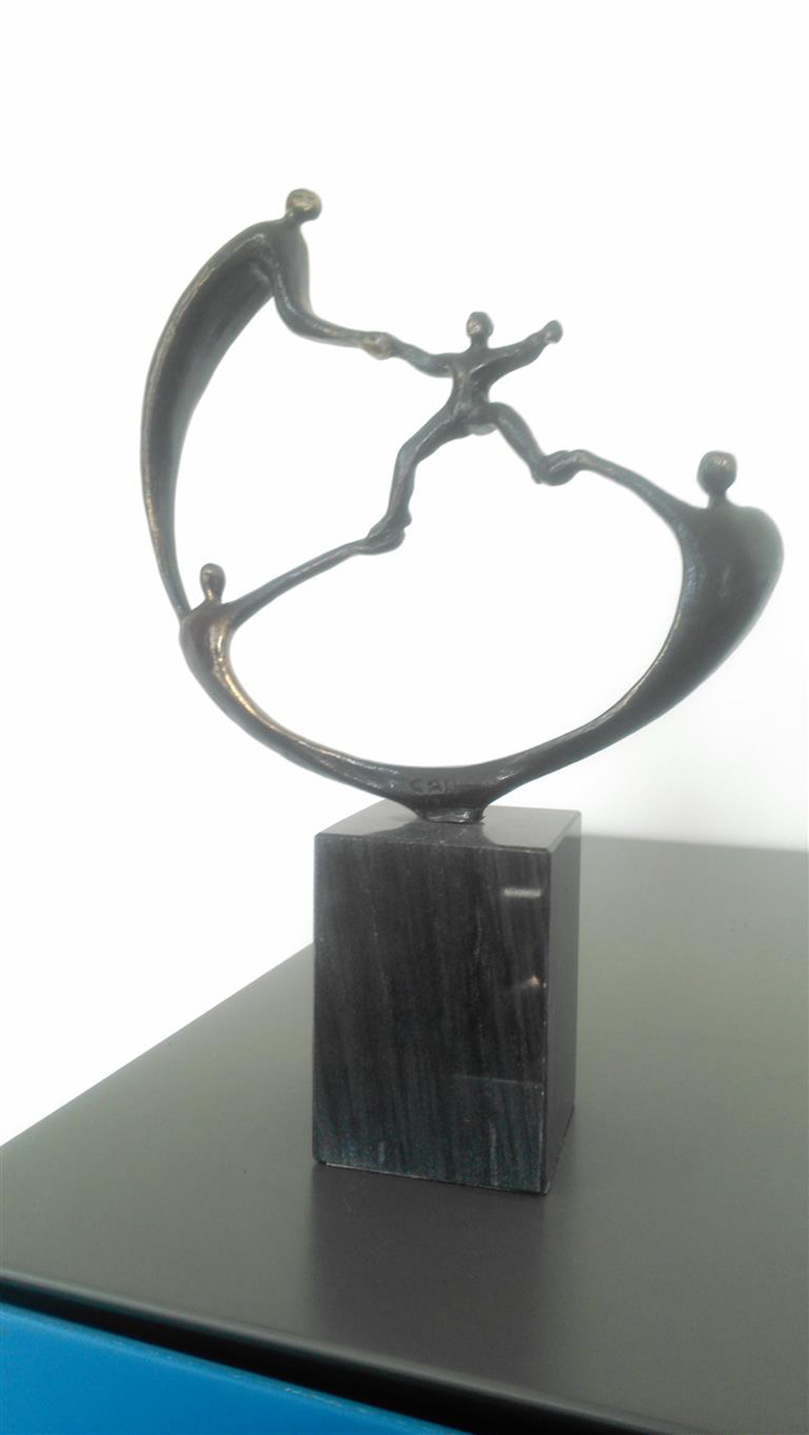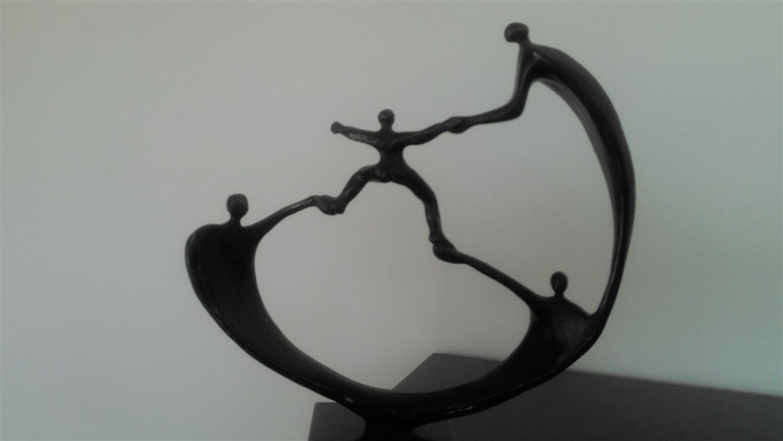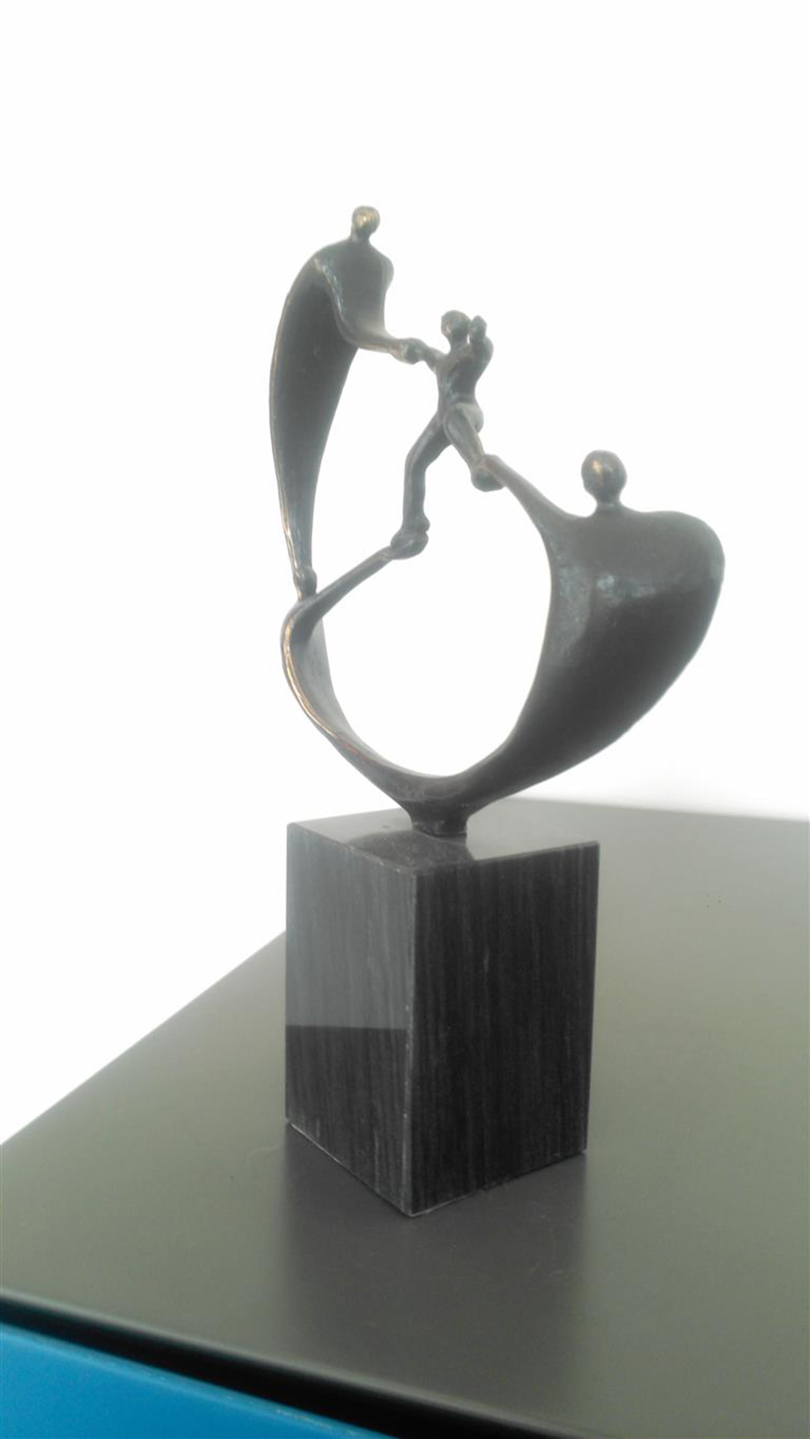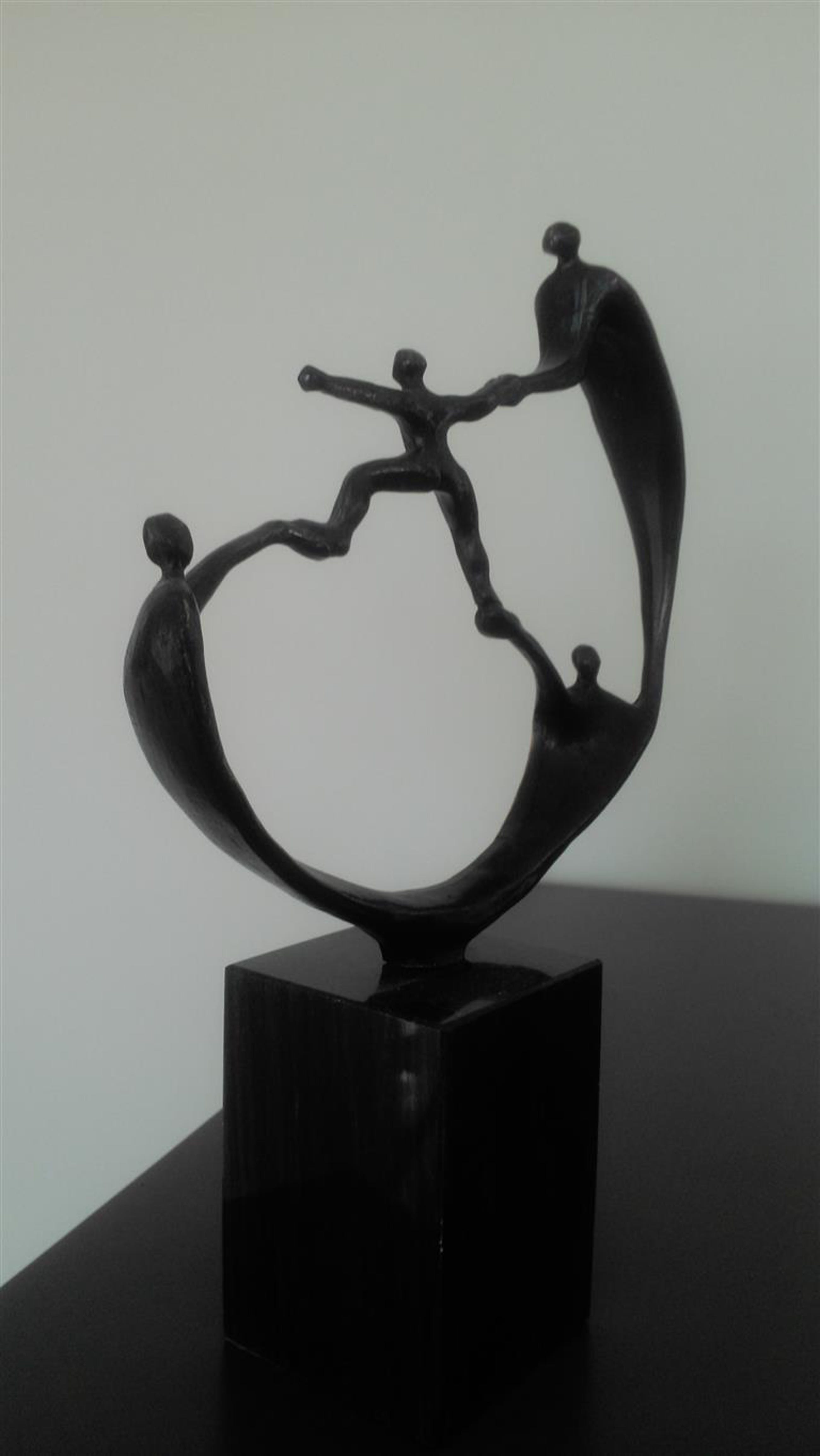 Helpende handen bij de grote overstap Op natuurstenen sokkel 5 x 5 7 cm Gesigneerd CAN Corry Ammerlaan van Niekerk
