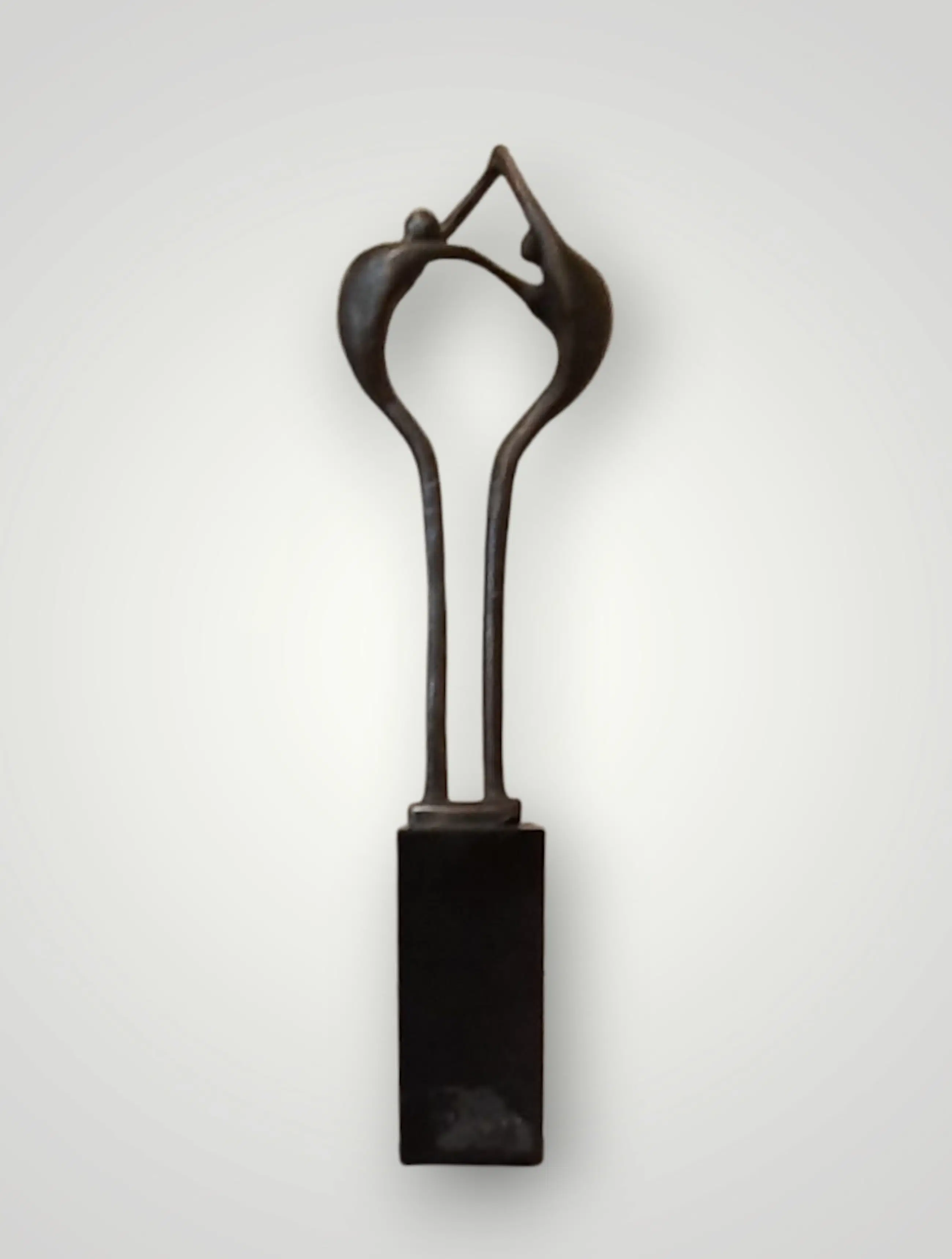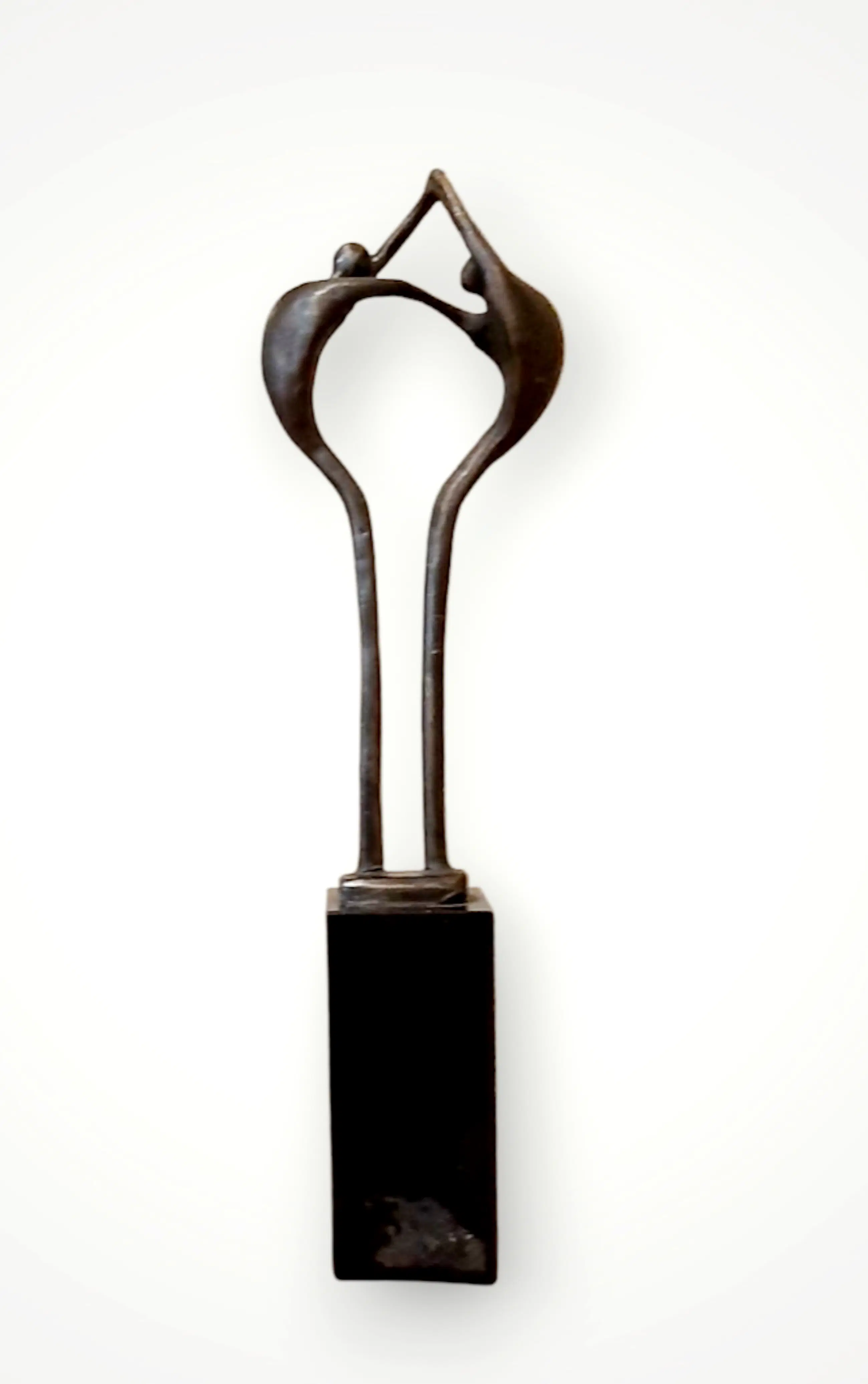 Zeer mooie figuur . Bronsen figuren op marmerem sokel. Goede staat.