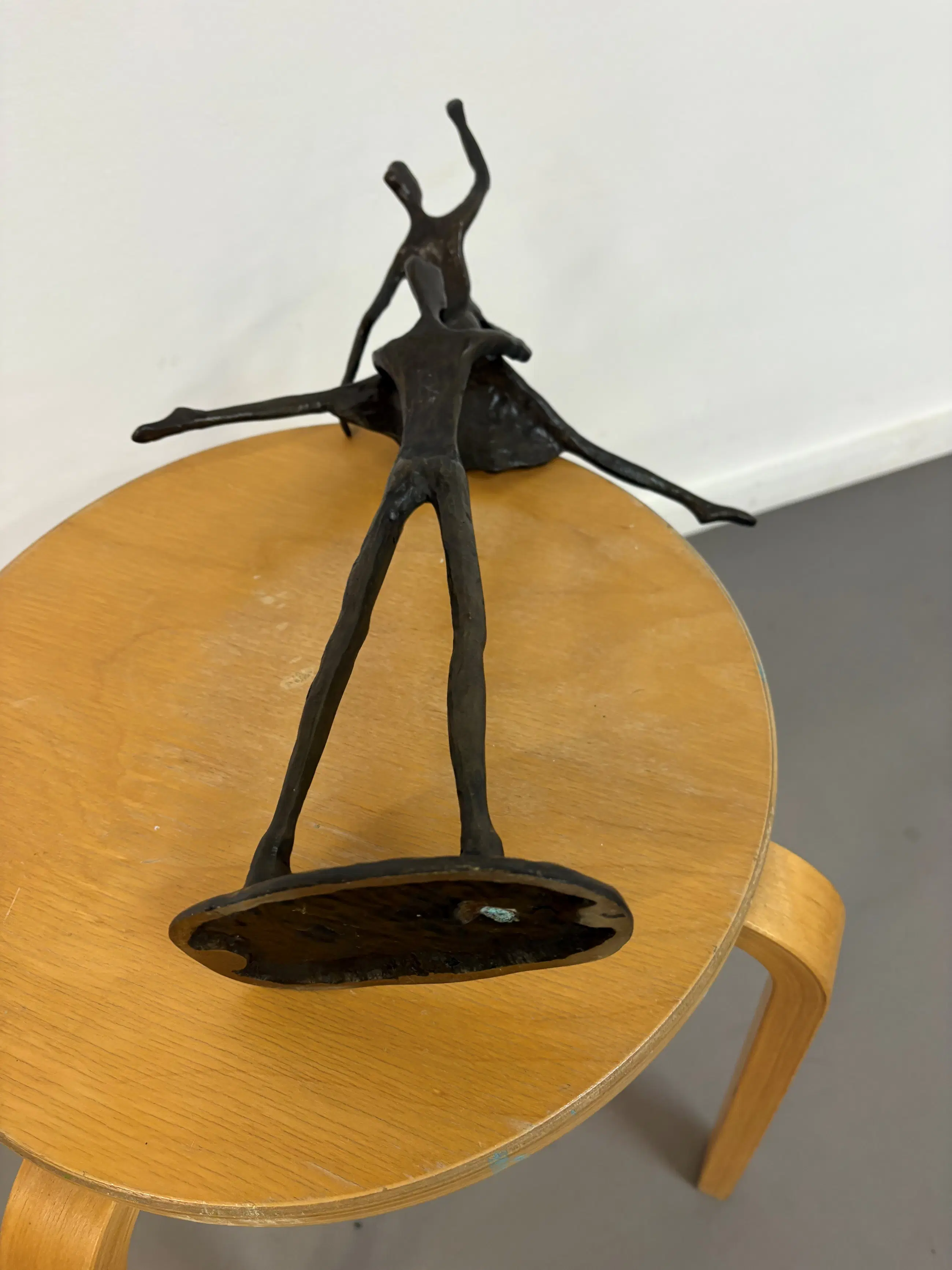 Een sierlijk Bronzen beeldje van abstrakte dansers.
