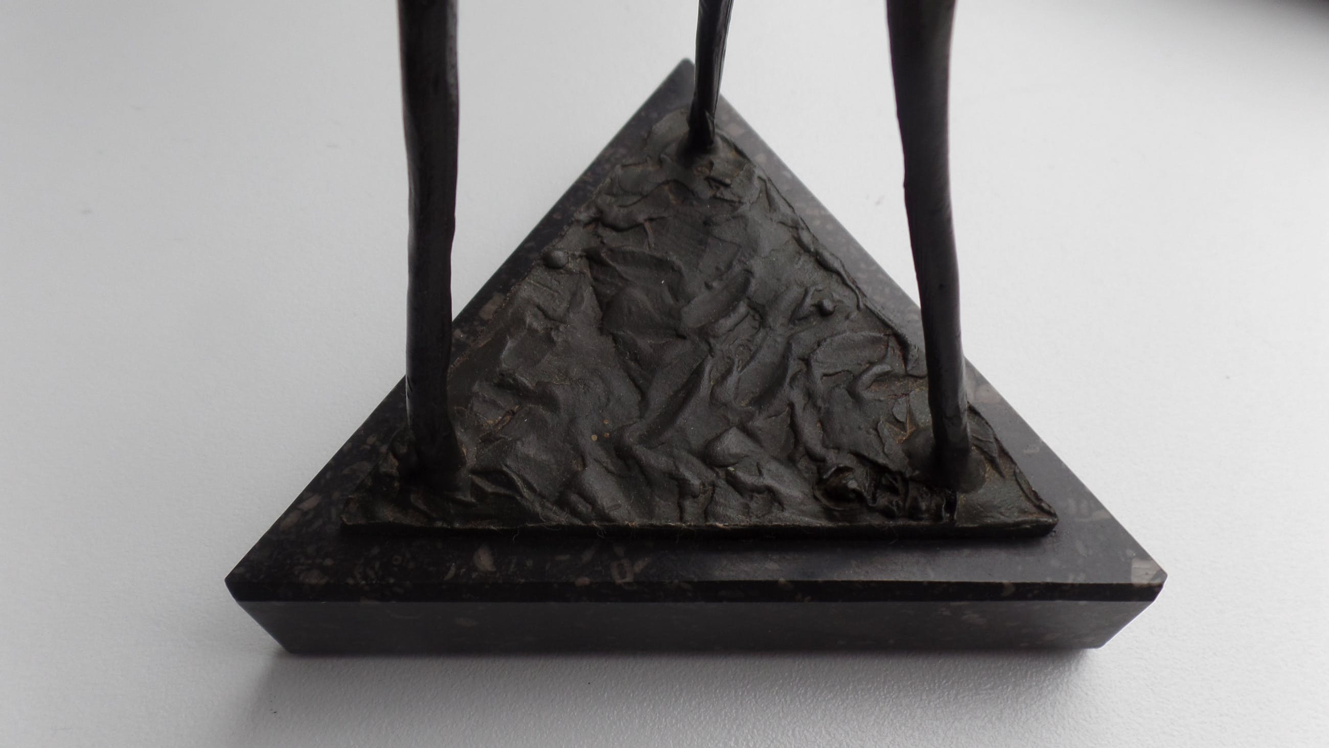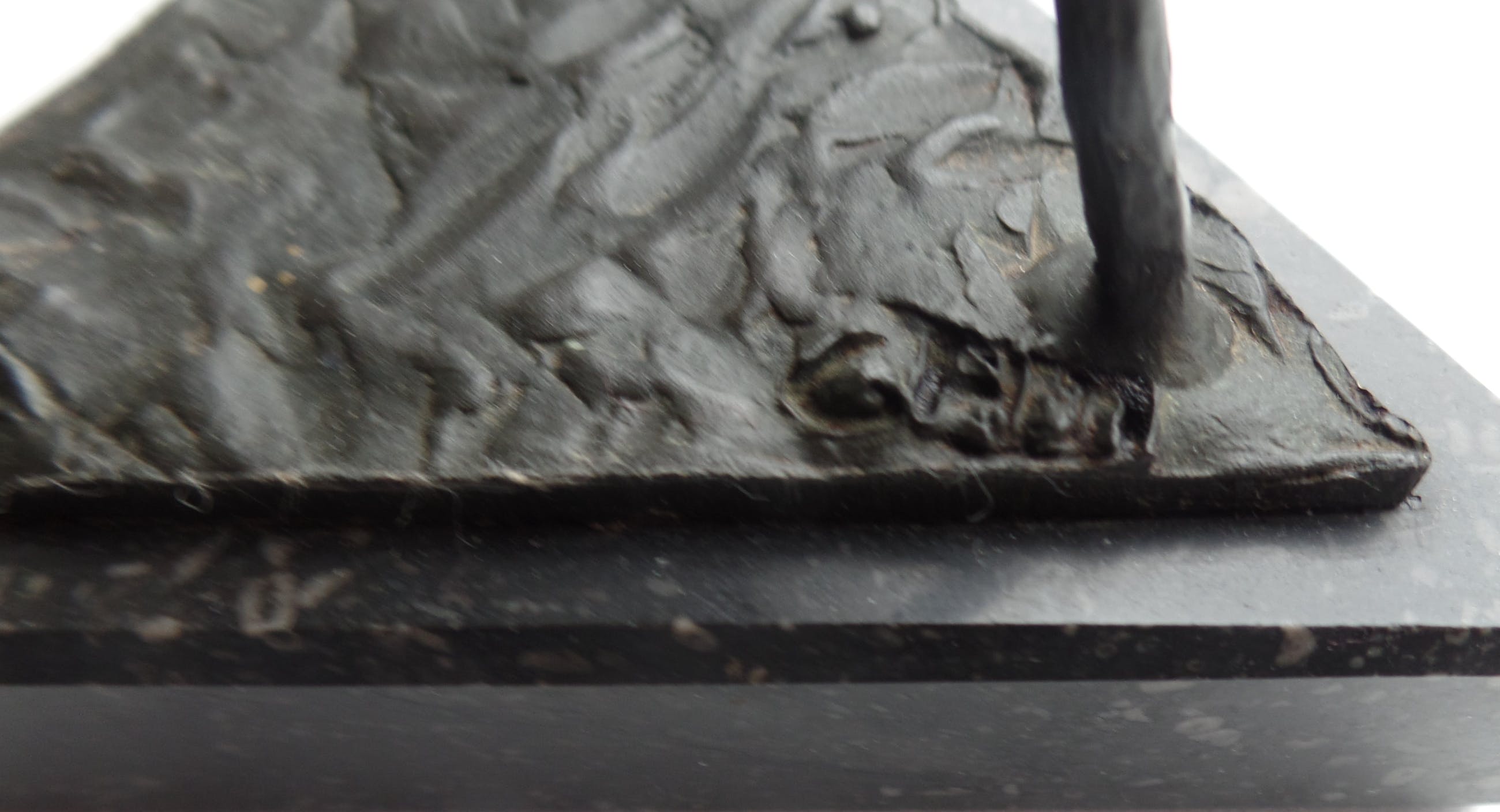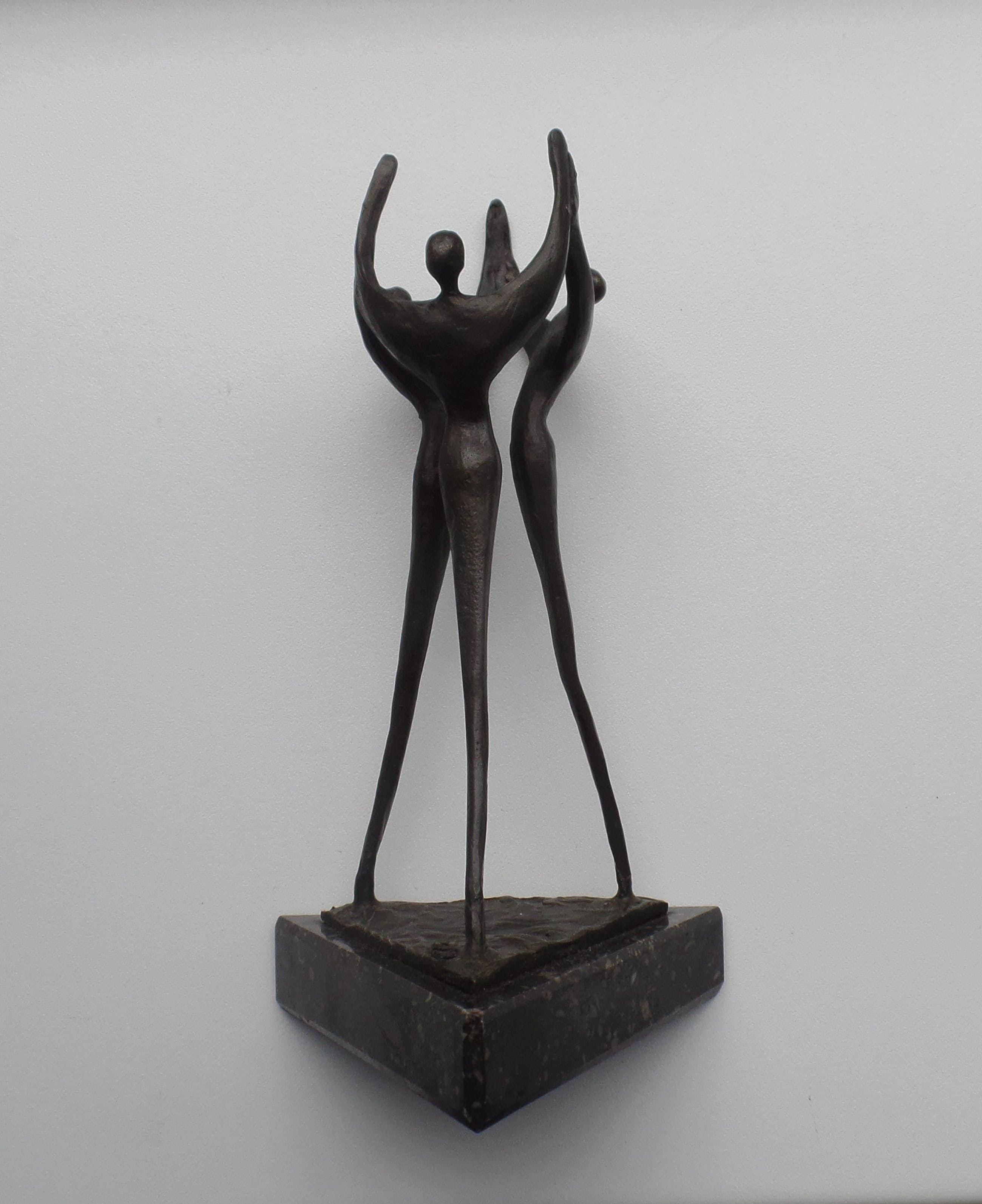 Prachtig bronzen beeld van drie mensen met monogram (can) Object is geplaatst op een origineel granieten sokkel.