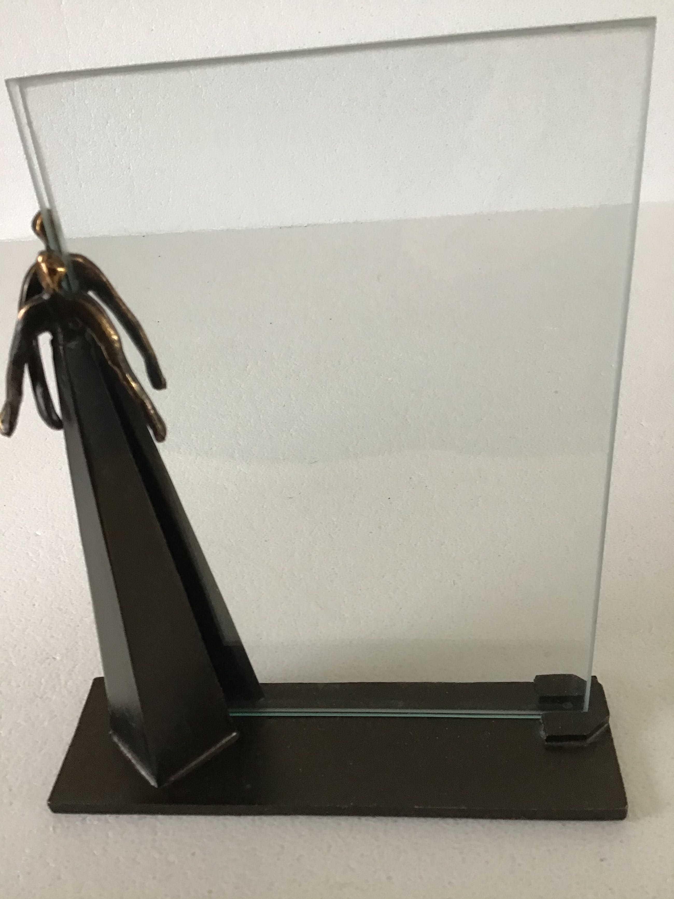 Mooi,fotolIjstenten met glas voor foto’s met afm. 15cm.x10cm. Hoogte van de sculptuur is 13 cm. hoogte van het totaal is 15.5