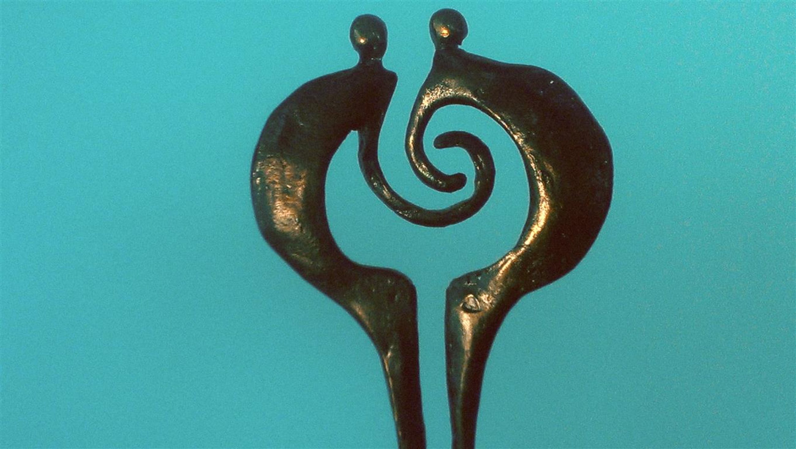 Gesigneerd CAN corry Ammerlaan van Niekerk verbronsd beeld van twee personen die aandacht voor elkaar hebben op een natuurstenen sokkel