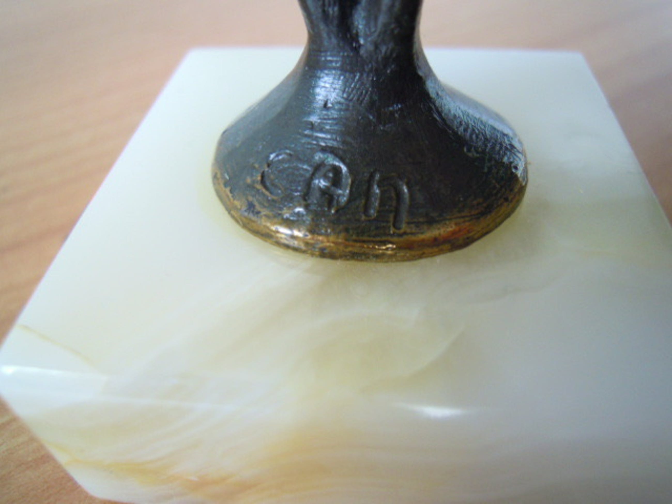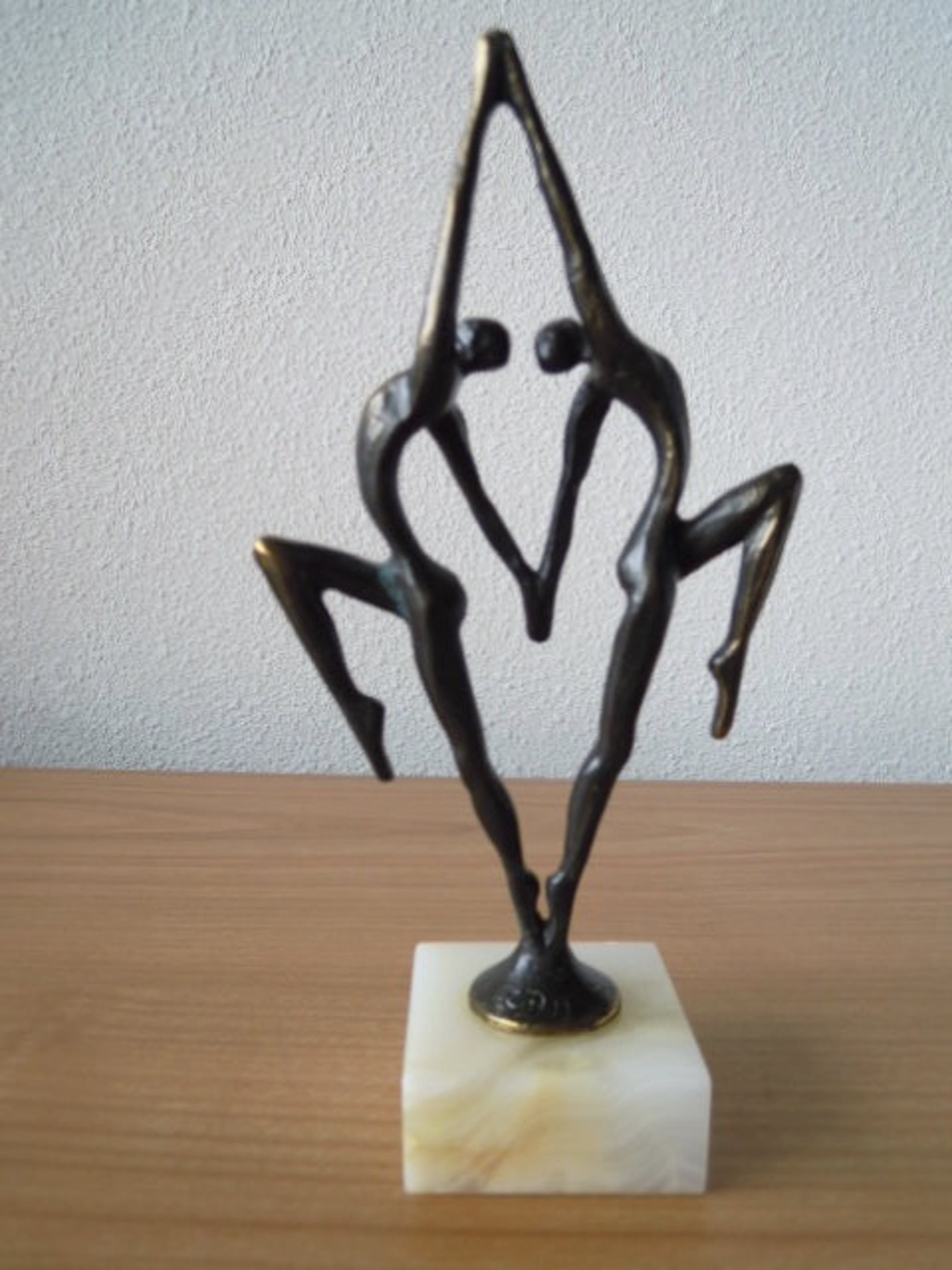 Het betreft een schitterend beeldje in zeer mooie staat. Het beeldje staat op een wit marmeren voetje. De totale hoogte is 18,5 cm. Is op het voetje gesigneerd - zie foto.