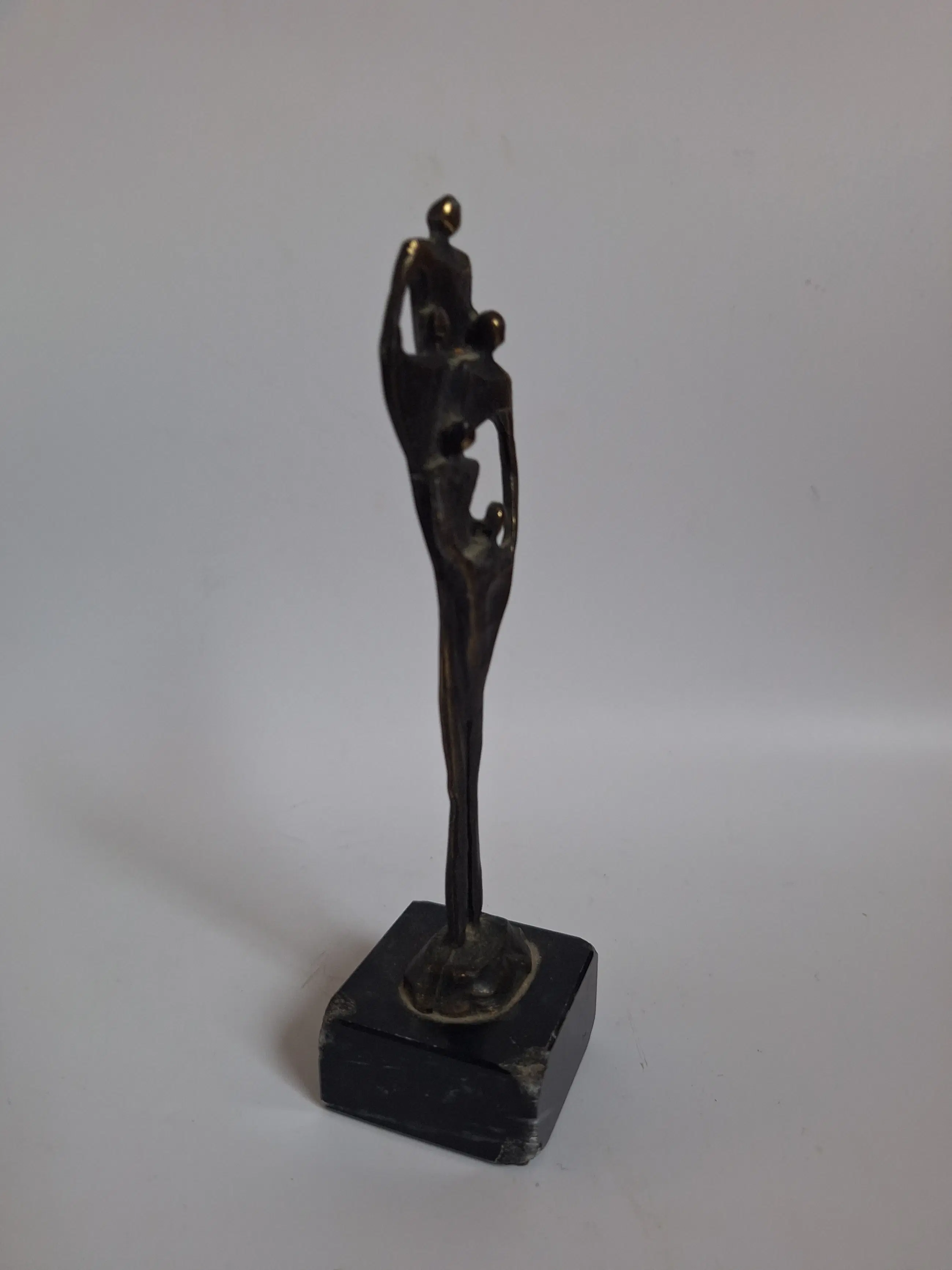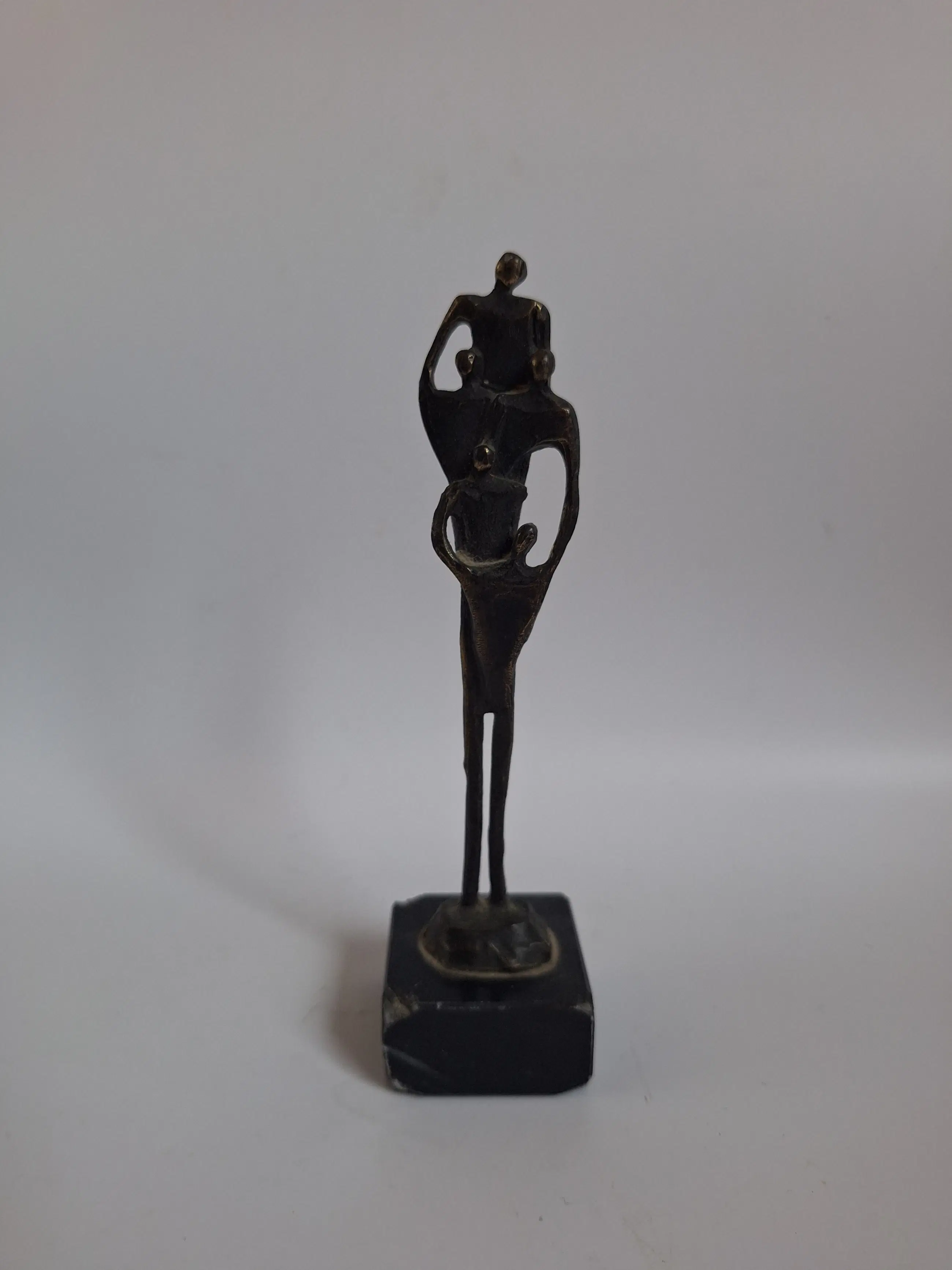 Mooi beeldje kunstenares Corry Ammerlaan. Titel van het kunstwerk; "Gezin" 15,5 x 4 x 4 cm 160 gram Zoals u kunt zien op de foto heeft de sokkel wat schade. Gesigneerd