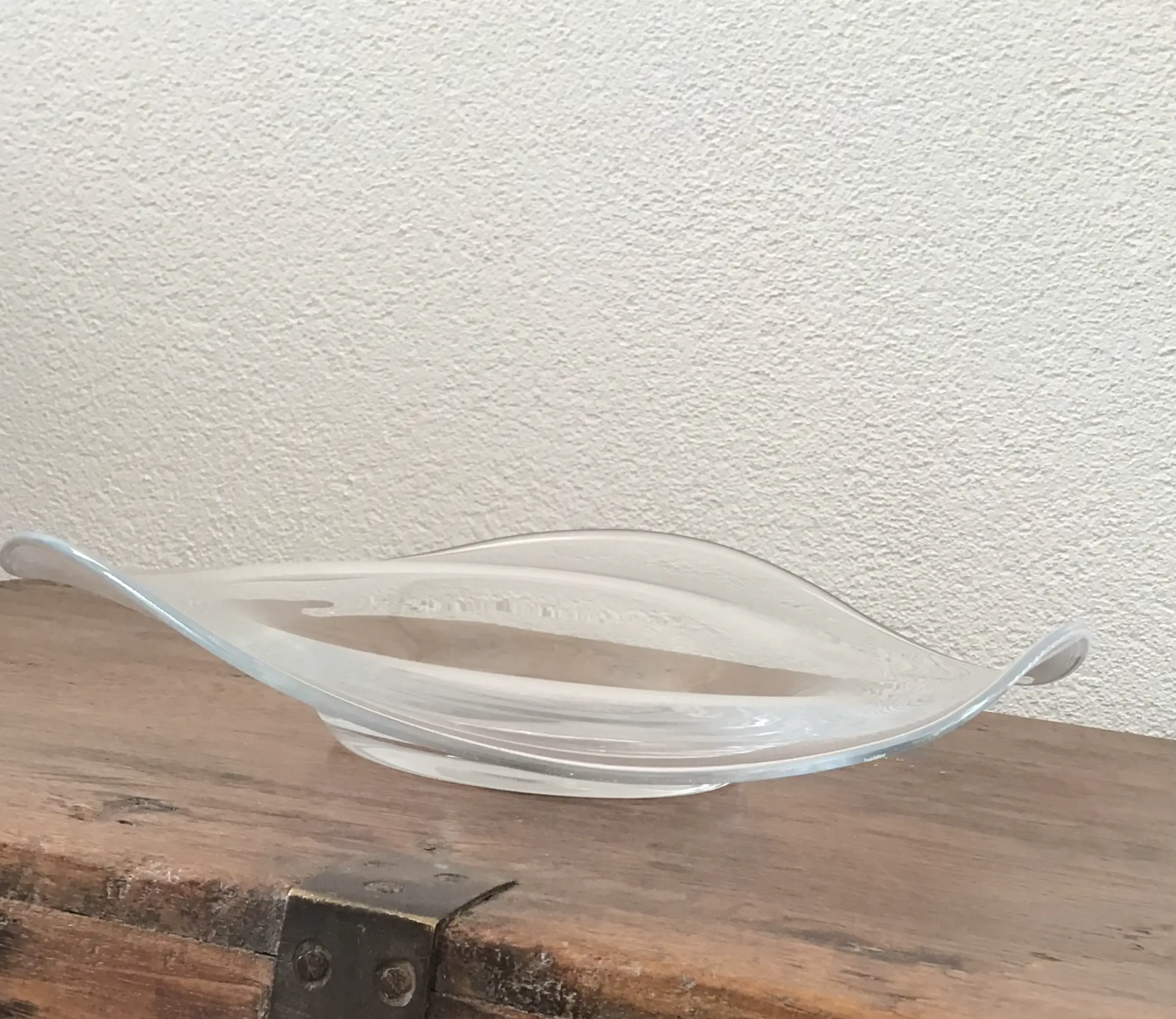 Corry Ammerlaan - van Niekerk Artihove Holland Mooie glazen schaal met zilverkleurige metalen plaquette Groot formaat Afmetingen: ca 34x 6cm Conditie goed,-minimale gebruikerssporen