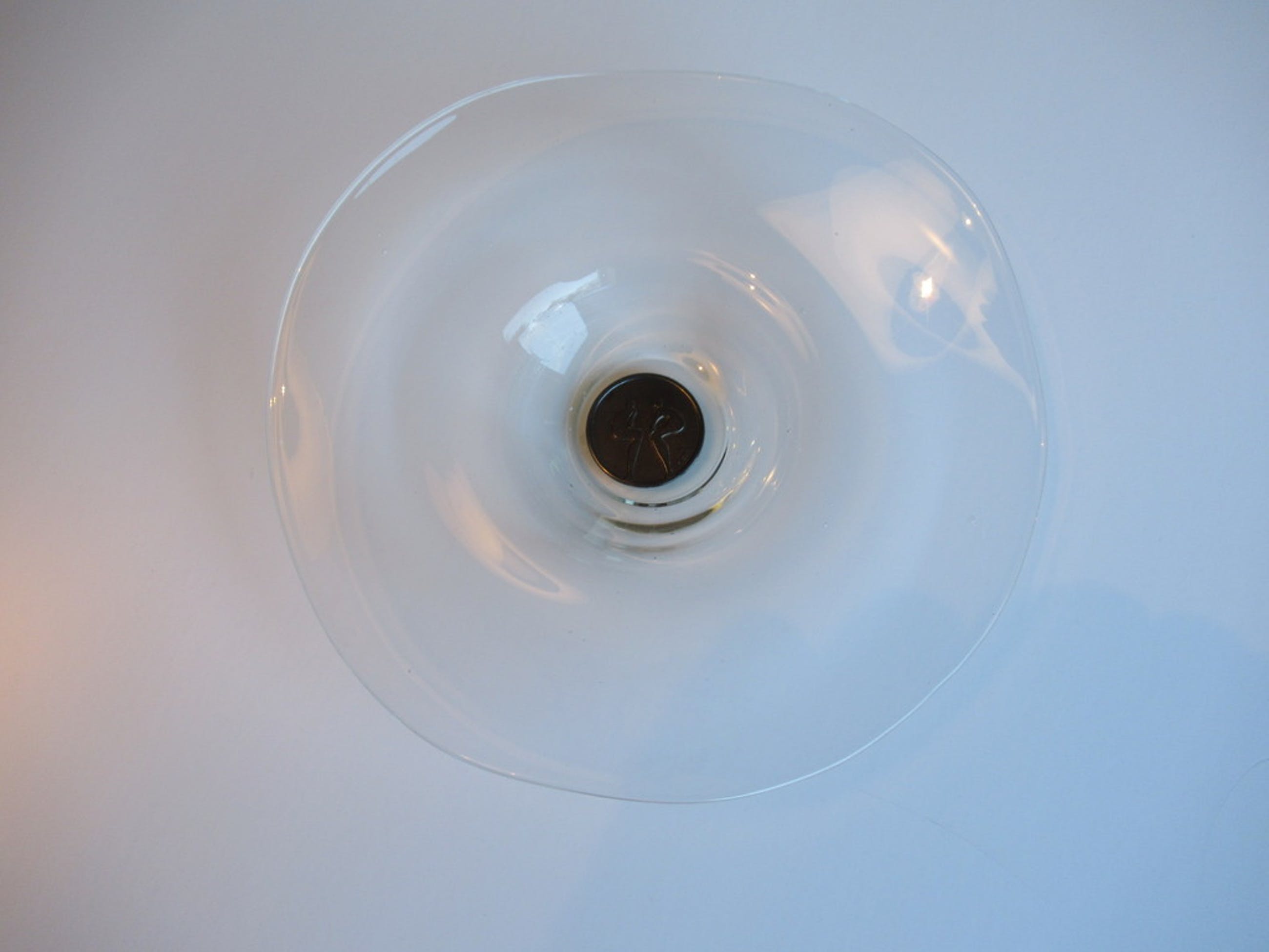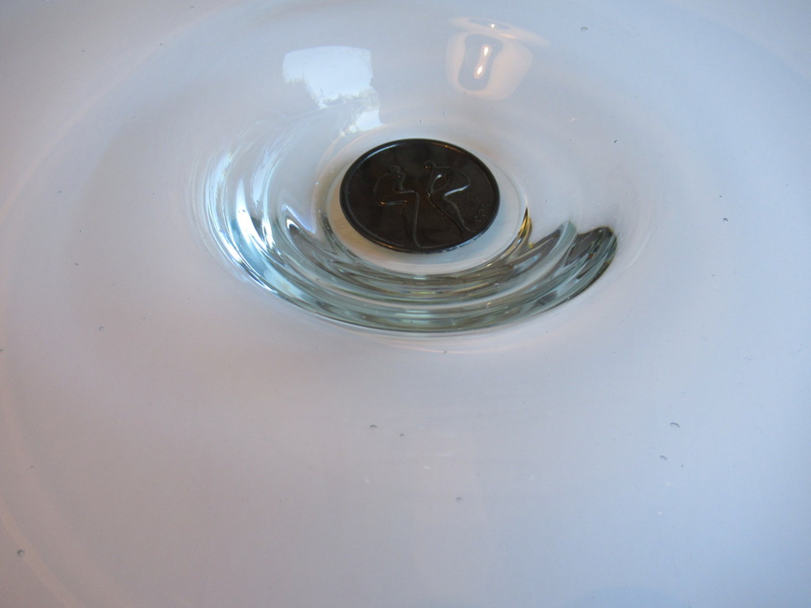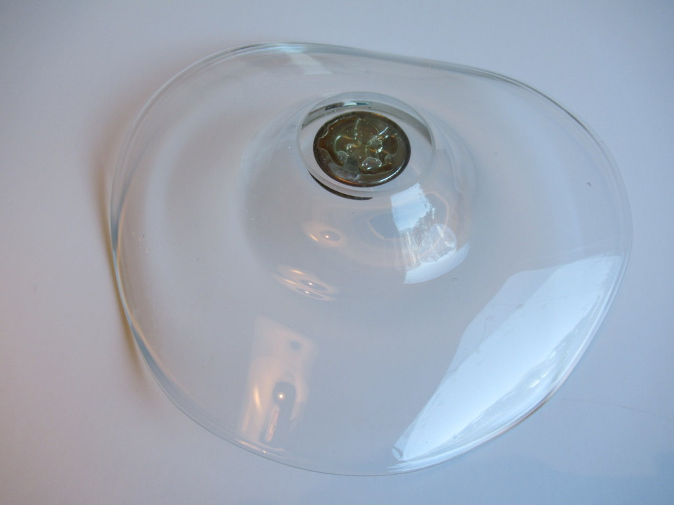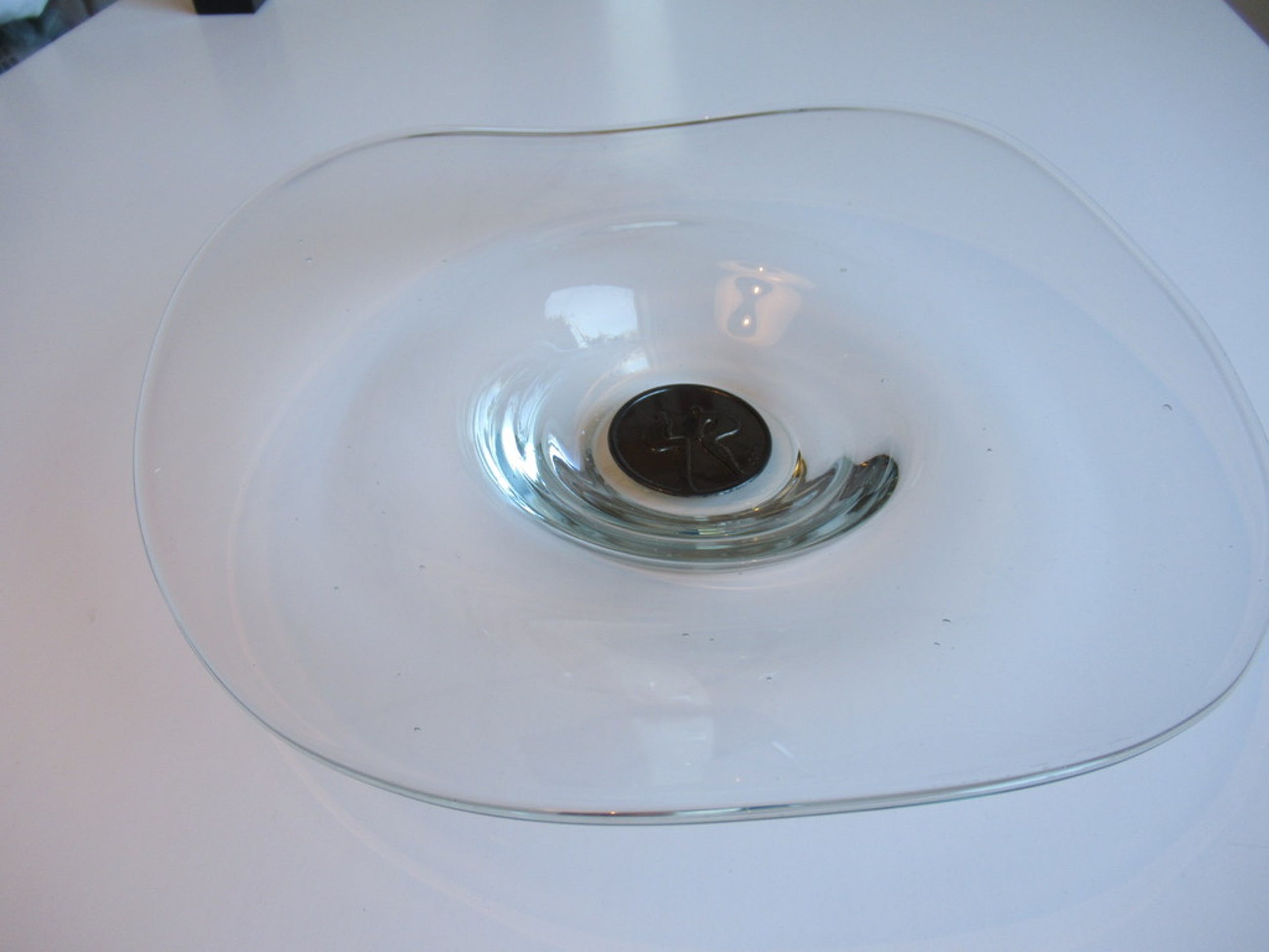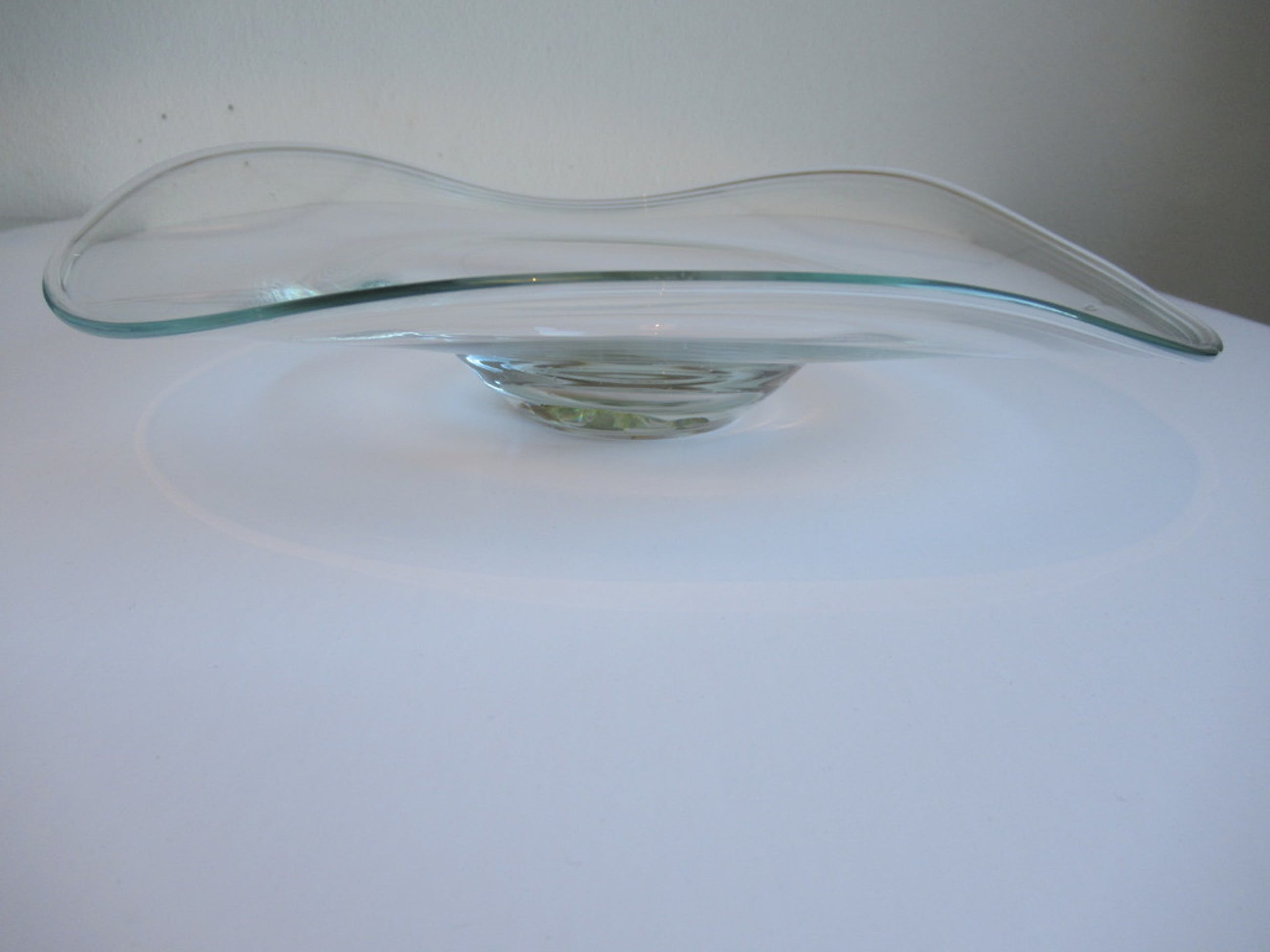 Mooie handgemaakte glazen schaal door Corry Ammerlaan. De schaal is licht golvend, heeft speelse luchtbelletjes in de schaal en is onbeschadigd.