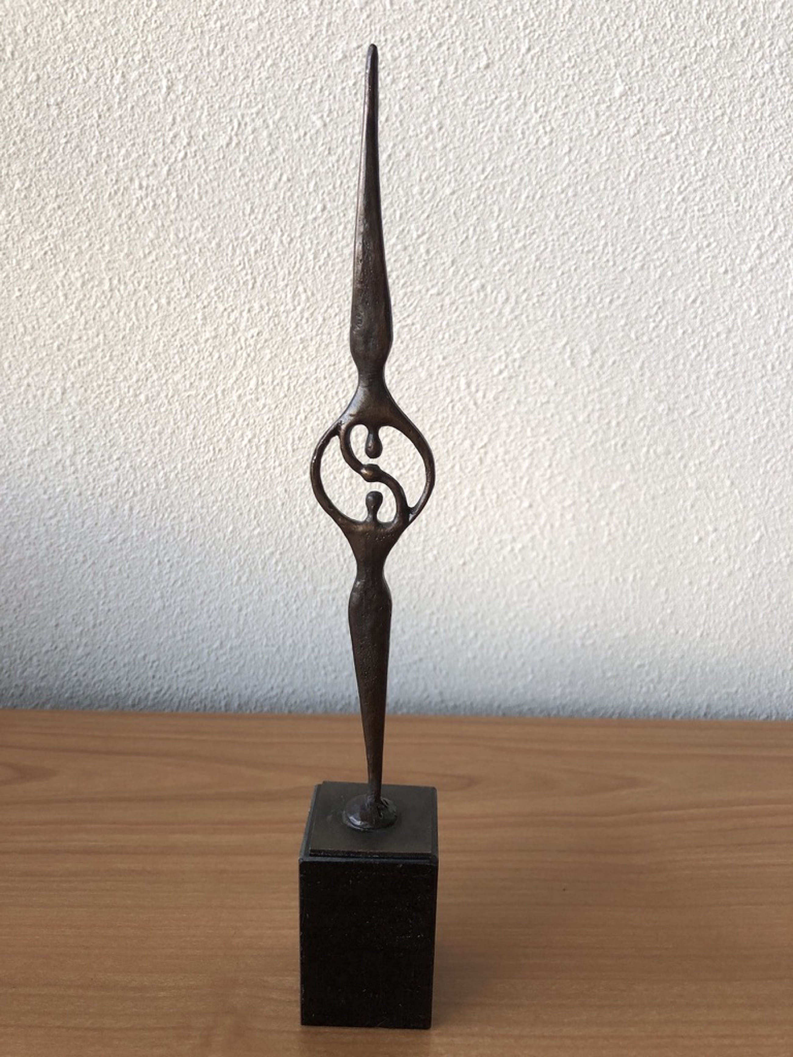 Het betreft een schitterend hoog beeld op de voet gesigneerd - het lijkt of de letter C niet goed is afgedrukt. Maar het beeld is met zekerheid vast Corry Ammerlaan. De letters AN staan er wel duidelijk op.
