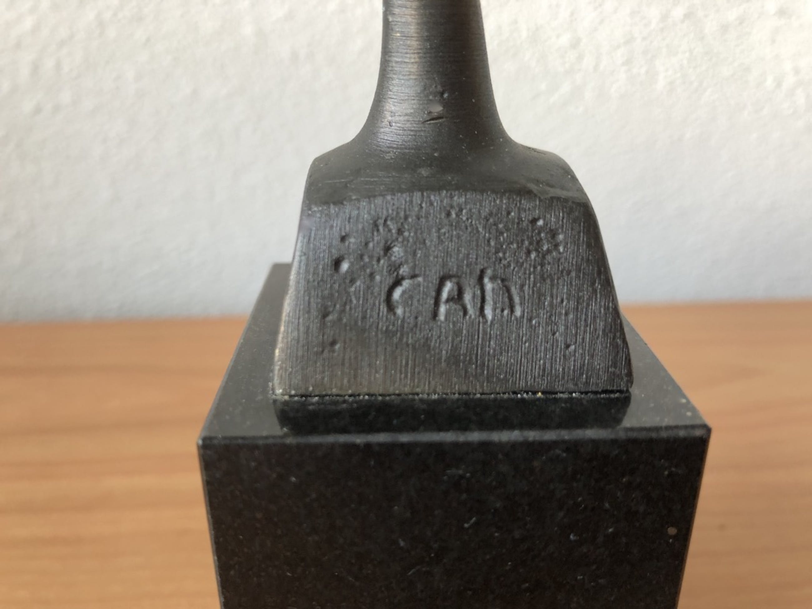 Van het zwart marmeren voetje is een klein stukje af aan de achterkant onderaan - zie foto.