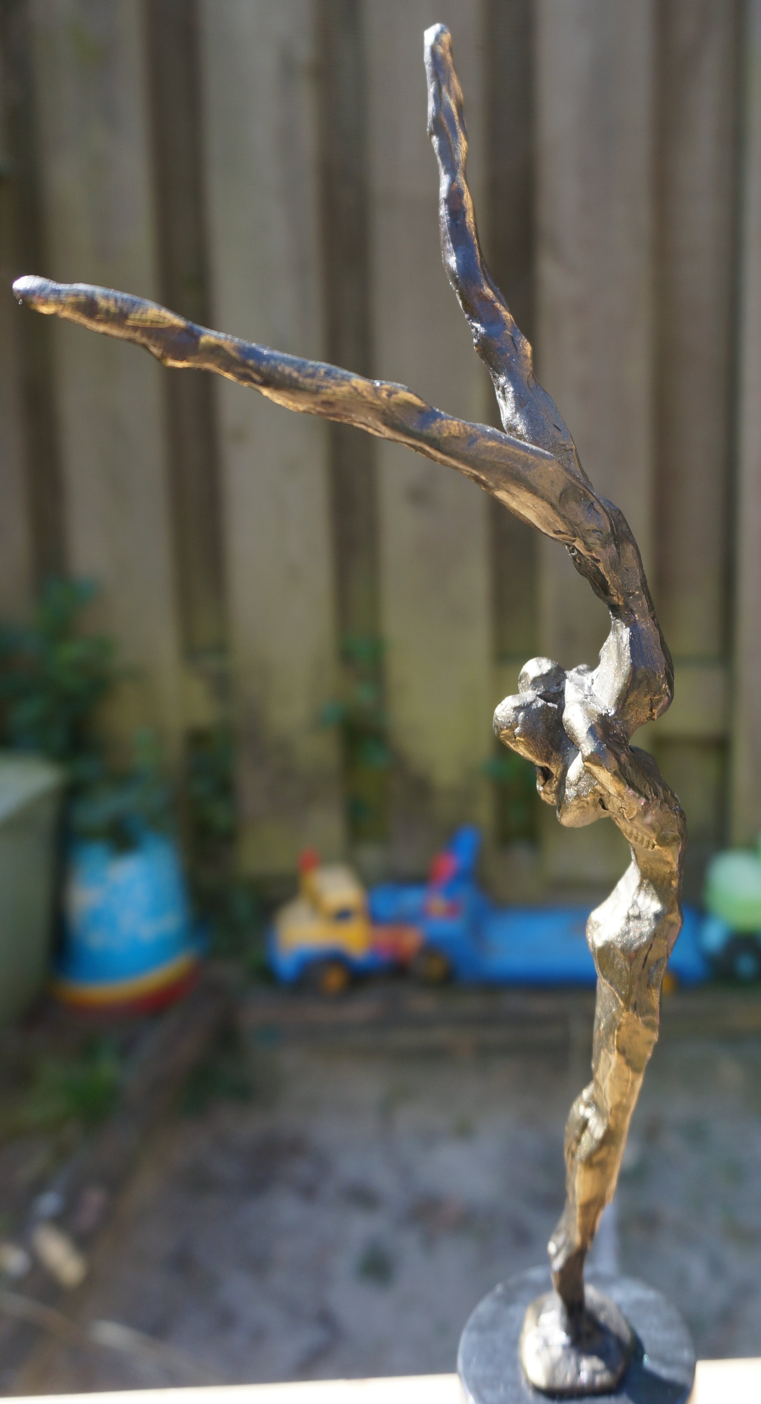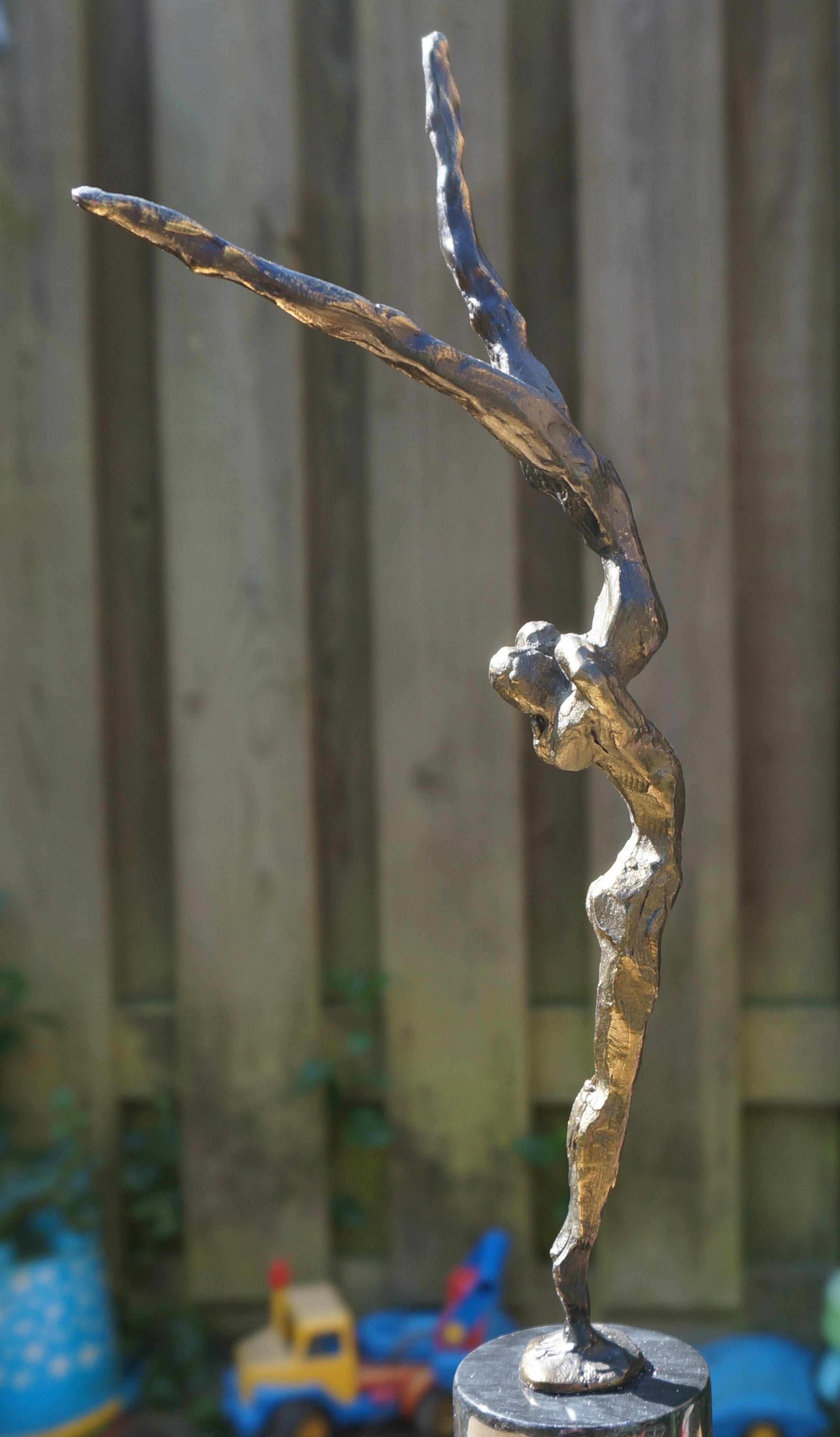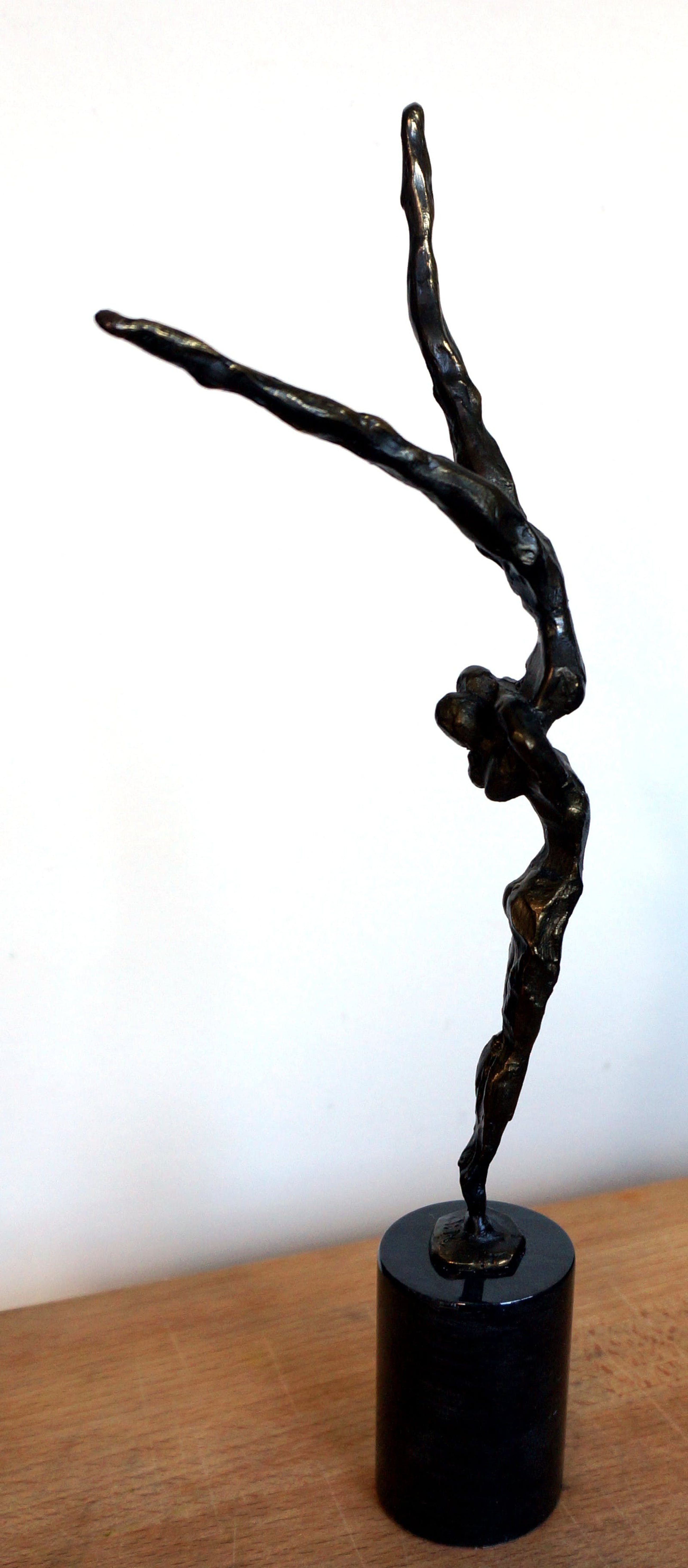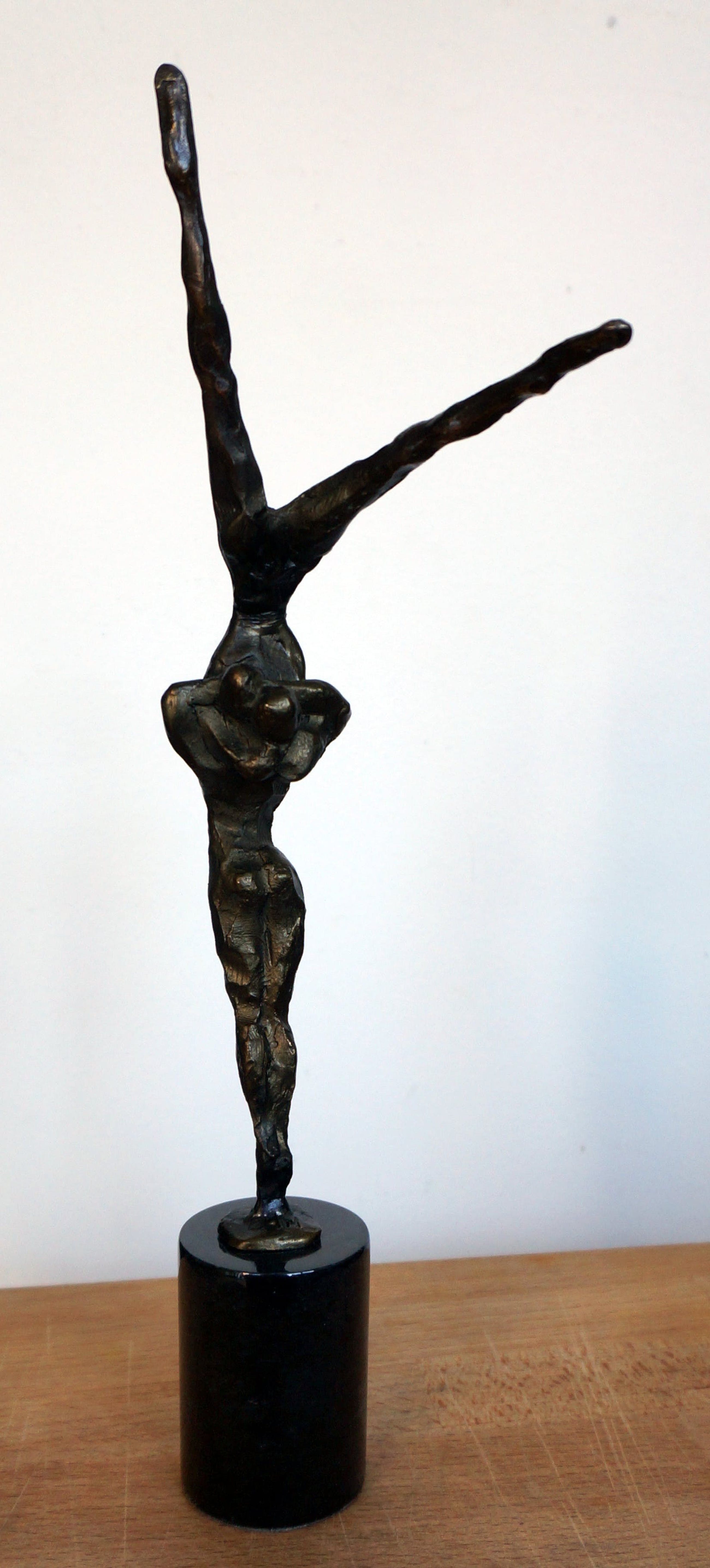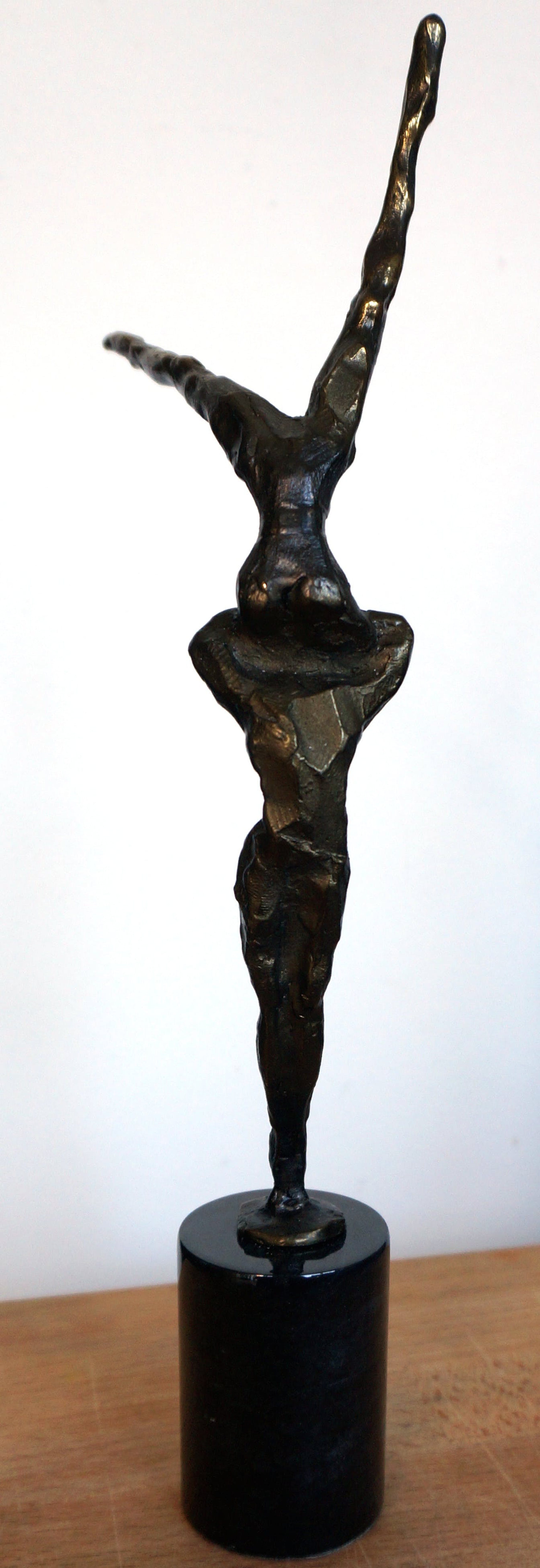 Een spannend beeld(verbronsd) van de hand van Corry Ammerlaan - van Niekerk, uitgevoerd door Artihove. Het beeld verkeert in uitstekende staat na een deskundige restauratie, uitgevoerd bij Artihove Inclusief de zwartmarmeren sokkel van 7 cm is het beeld 34,5 cm hoog. An de basis van het beeld staat de bekende signatuur "CAN" Onder op de sokkel bevindt zich het merkteken van Artihove Zie voor meer bijzonderheden de foto's