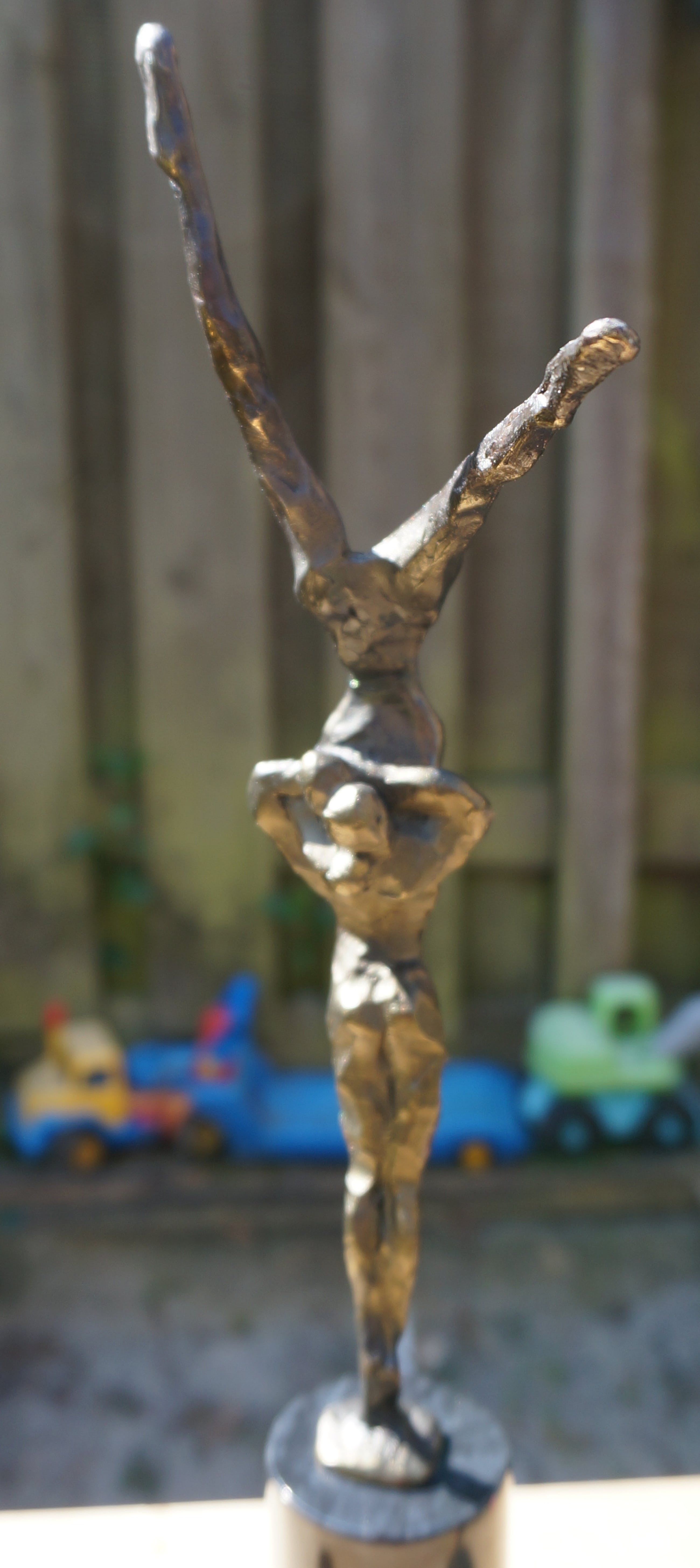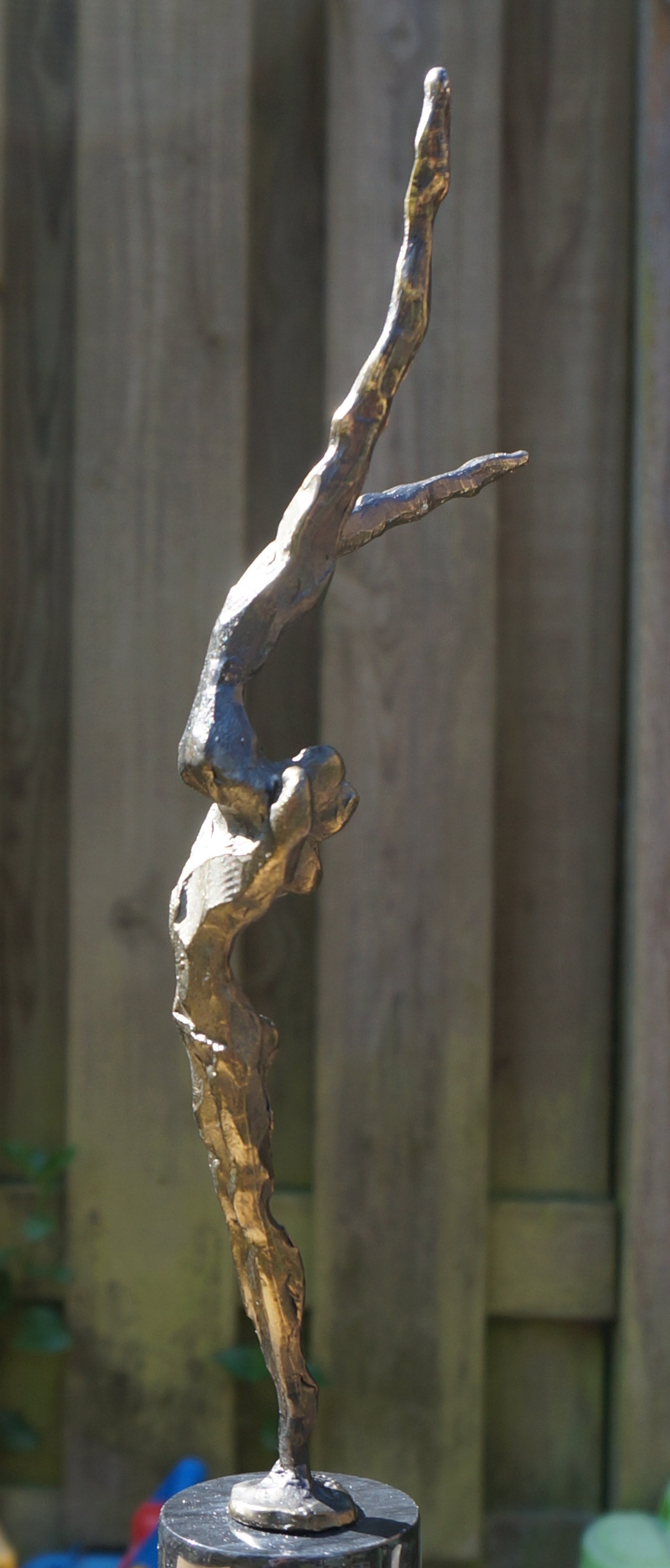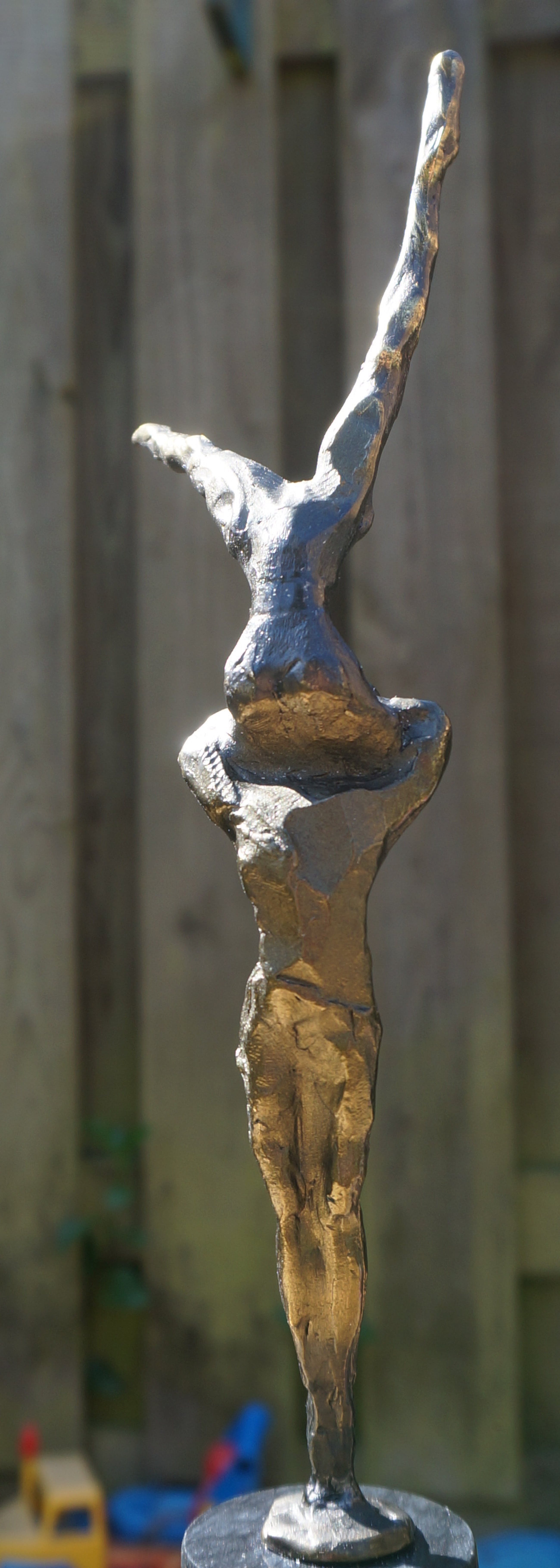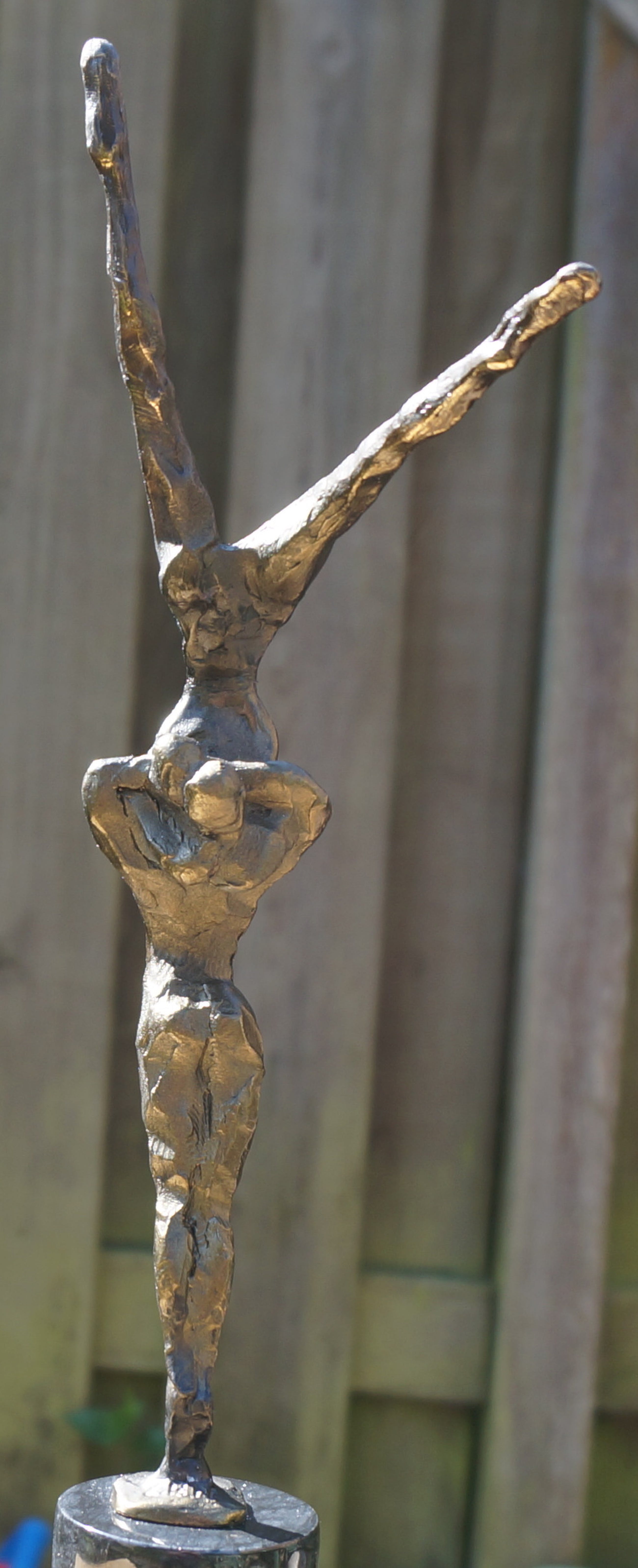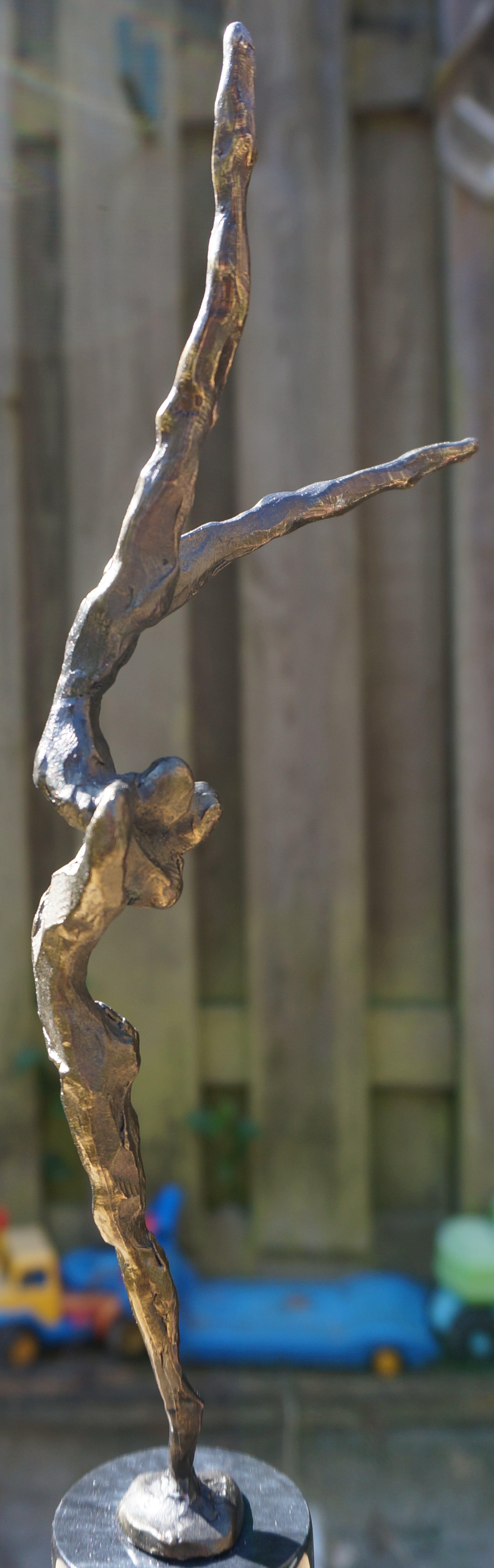 Een spannend beeld(verbronsd) van de hand van Corry Ammerlaan - van Niekerk, uitgevoerd door Artihove. Het beeld verkeert in uitstekende staat na een deskundige restauratie, uitgevoerd bij Artihove Inclusief de zwartmarmeren sokkel van 7 cm is het beeld 34,5 cm hoog. An de basis van het beeld staat de bekende signatuur "CAN" Onder op de sokkel bevindt zich het merkteken van Artihove Zie voor meer bijzonderheden de foto's