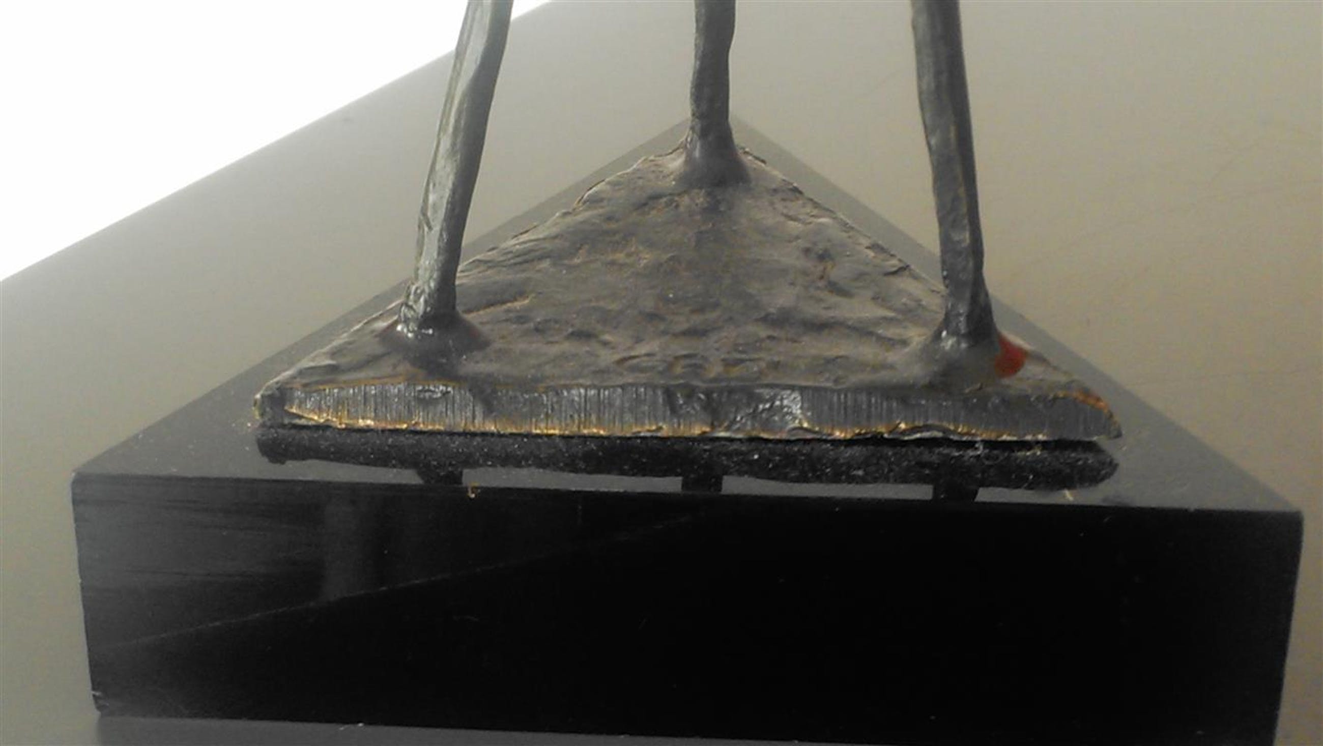 Gesigneerd Can Corry Ammerlaan van Niekerk op driehoekig plateau drie staande personen jubelend met de handen omhoog. Zwarte driehoekig plexiglas sokkel