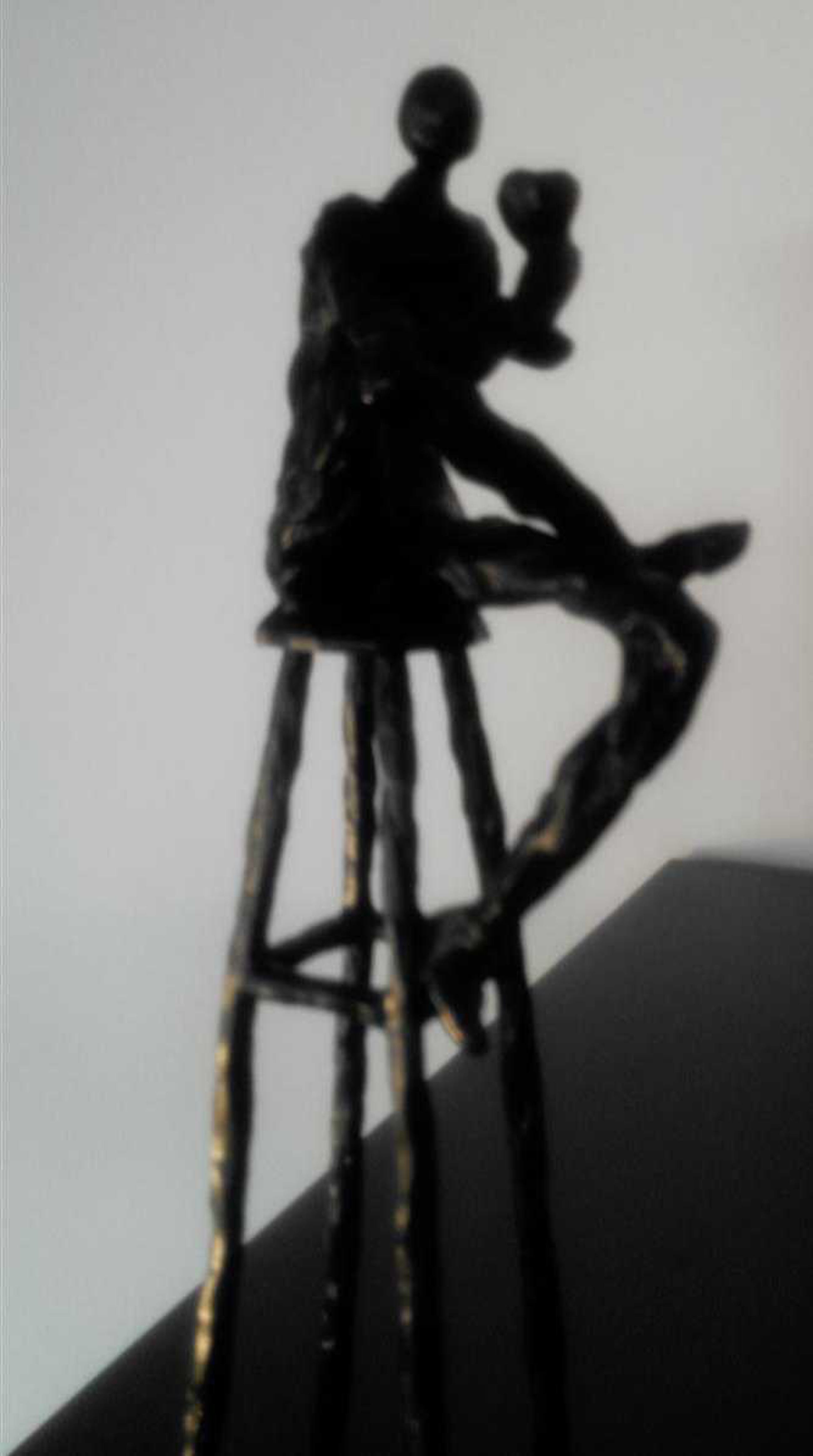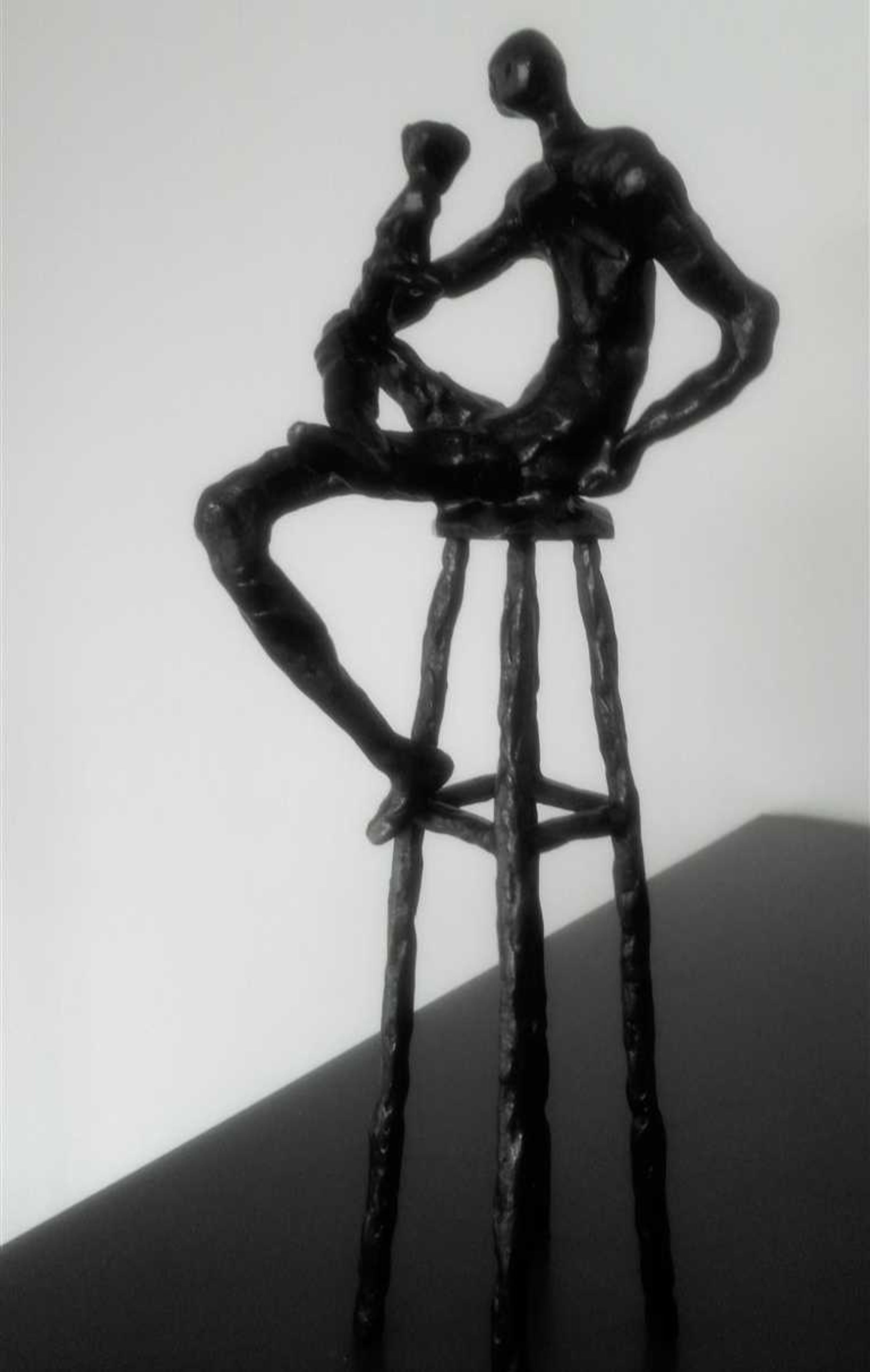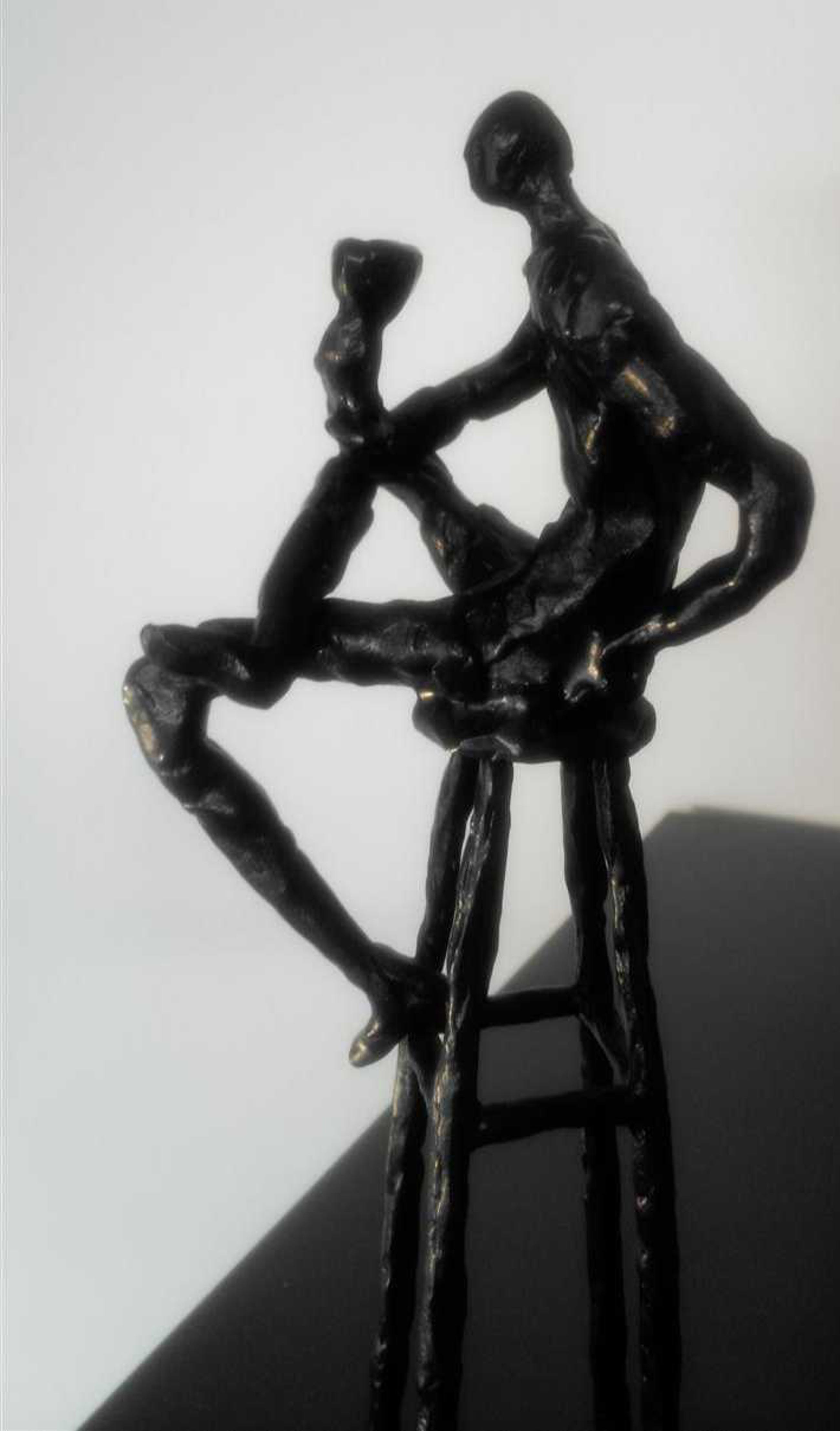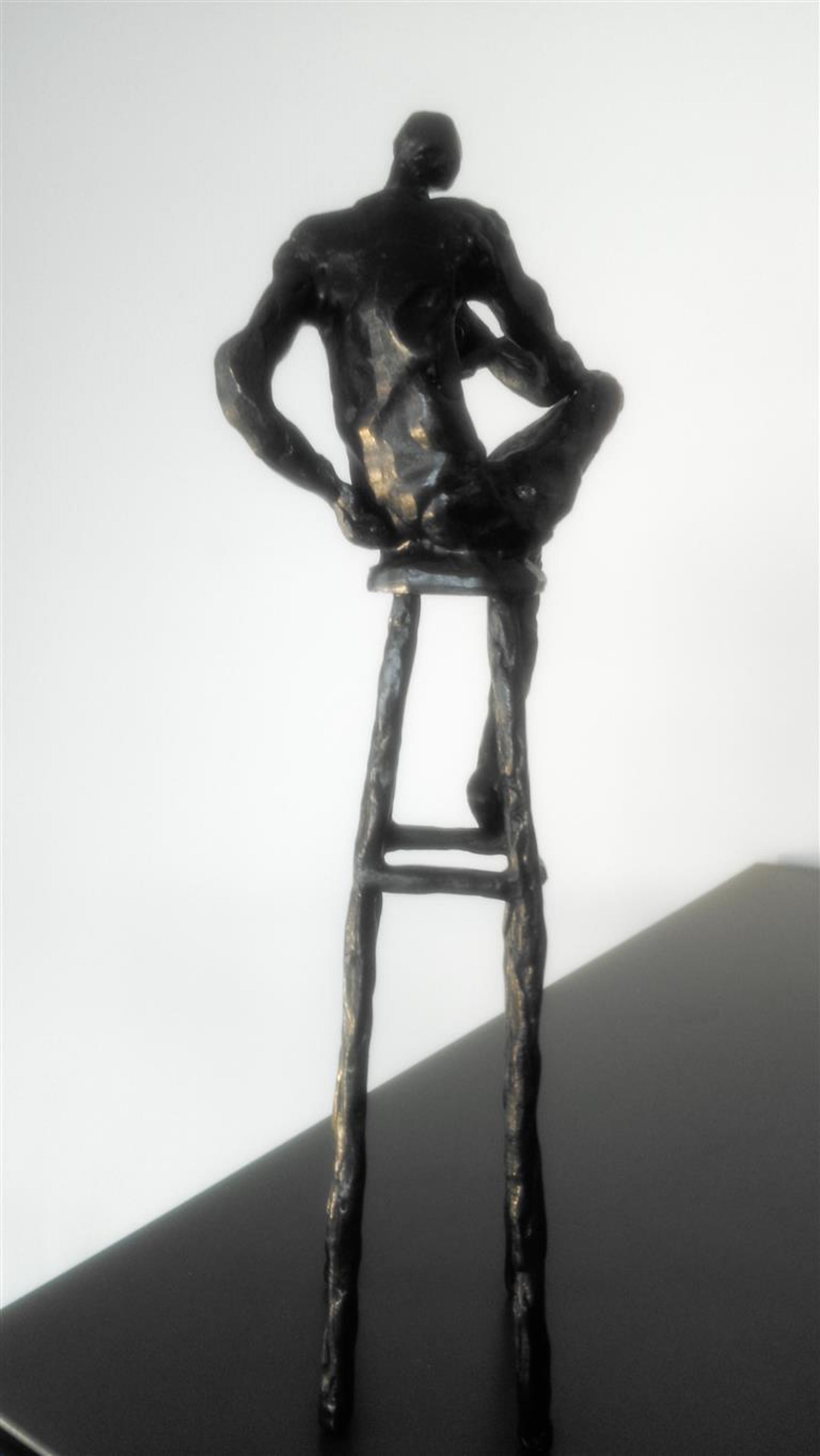 Op een hoge barkruk zit een man ontspannen met een goed glas wijn in de hand Gesigneerd CAN Corry Ammerlaan van Niekerk
